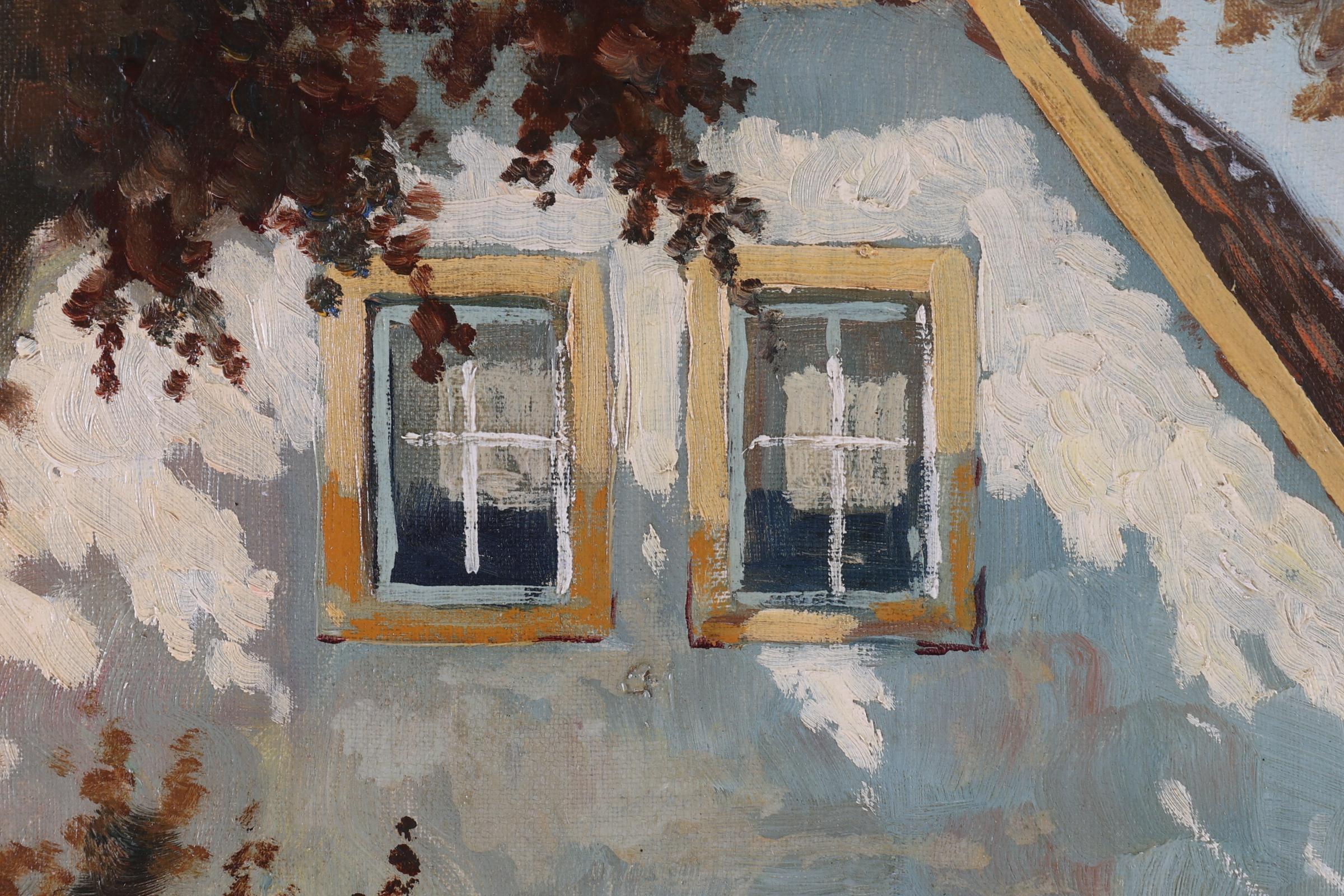 Onb. meester, Zicht op een boerderij, olieverf op doek, 70 x 50 cm. (niet ingelijst)