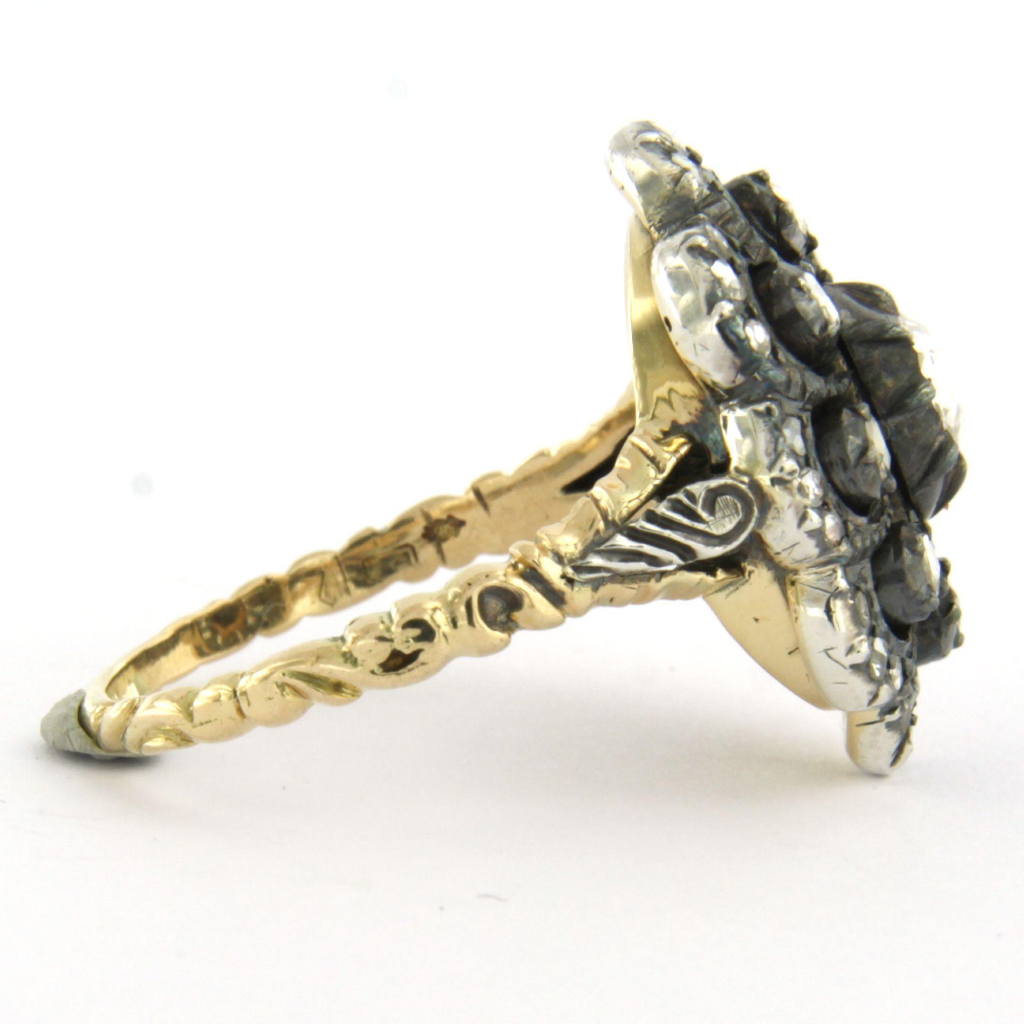 14 Kt. geelgouden met zilveren ring bezet met roos diamant tot. 0.50ct - ringmaat 19(59)