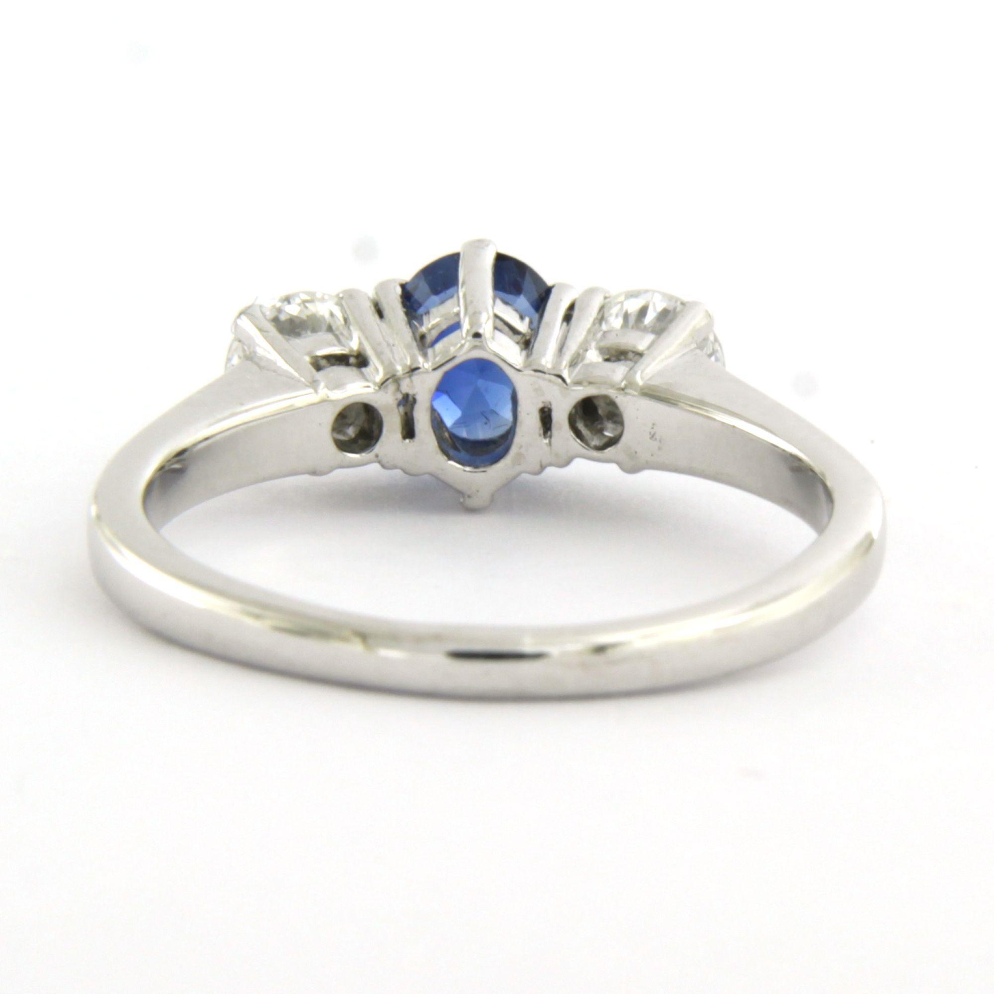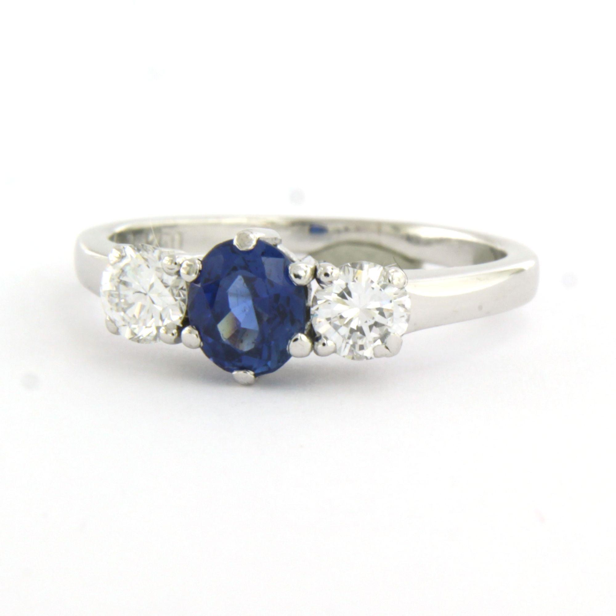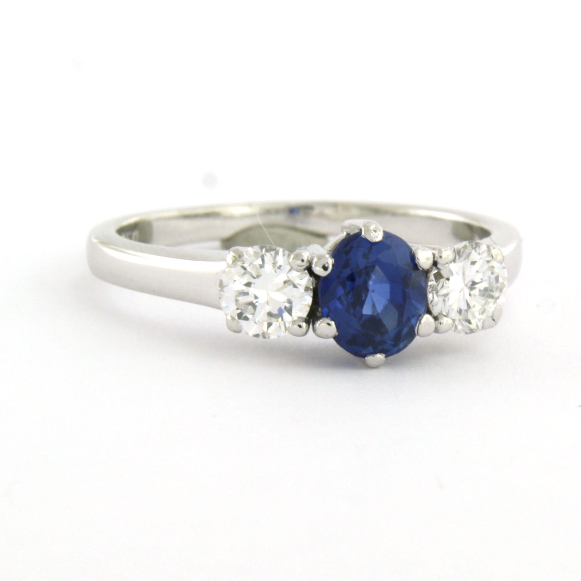 18 Kt. witgouden ring bezet met saffier tot. 0.60ct en briljant geslepen diamant tot. 0.60ct - ringmaat 17.25(54)
