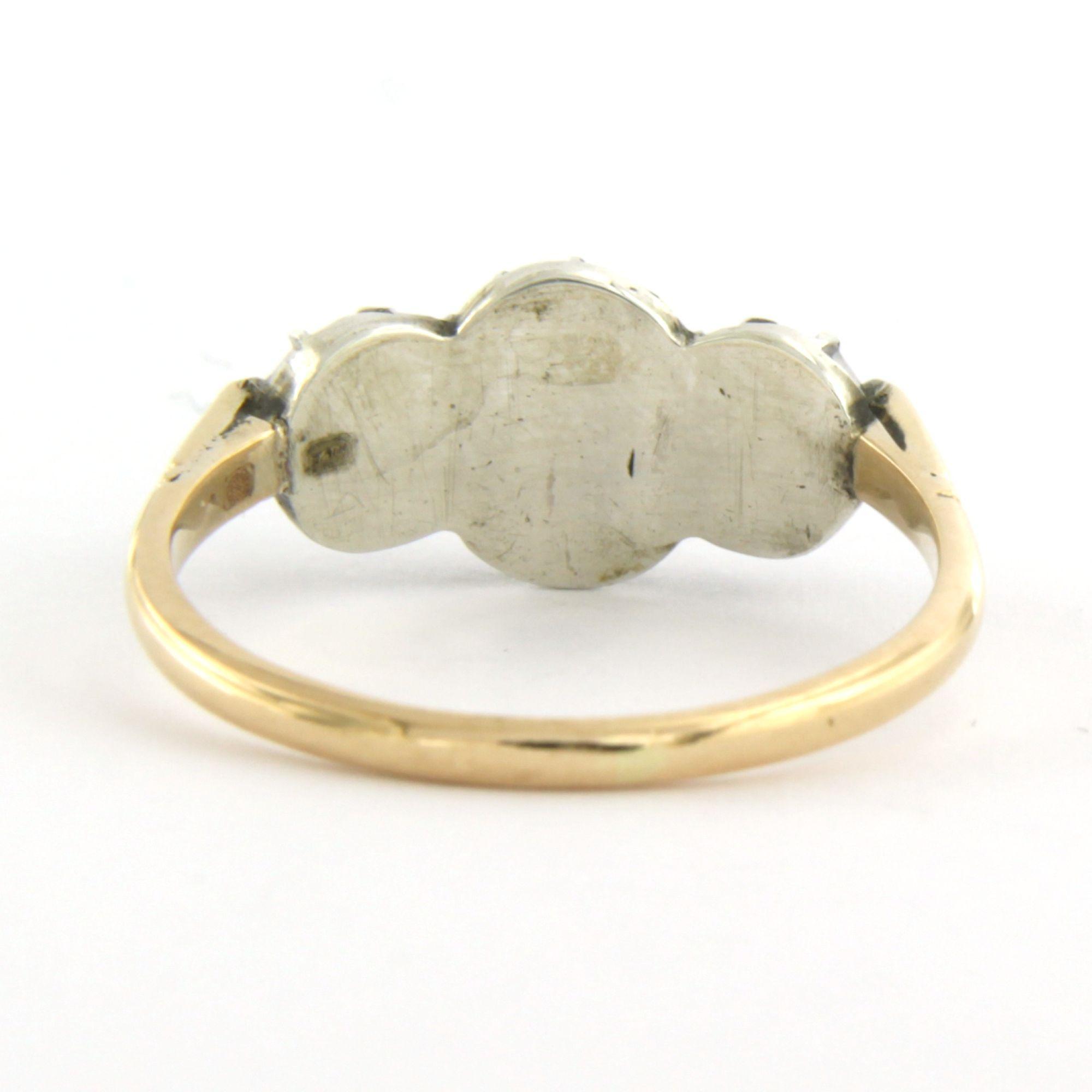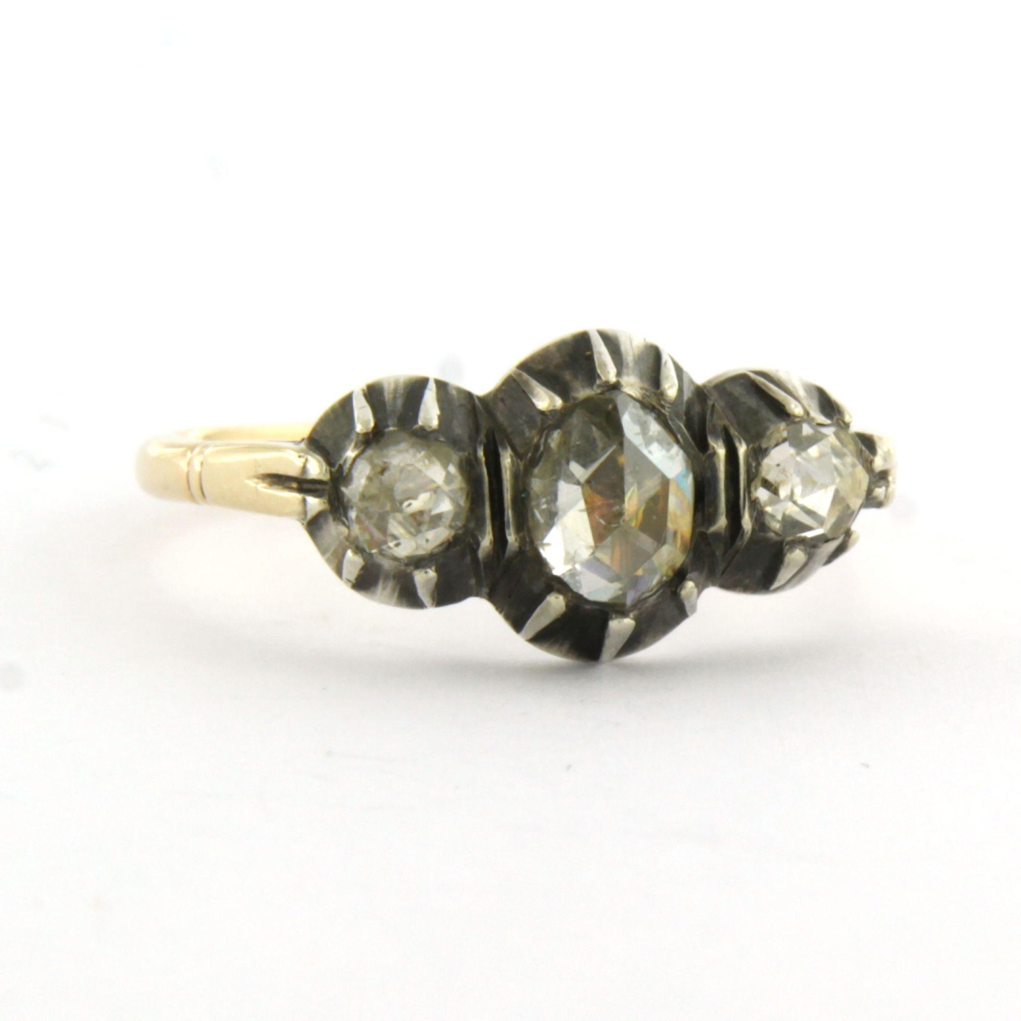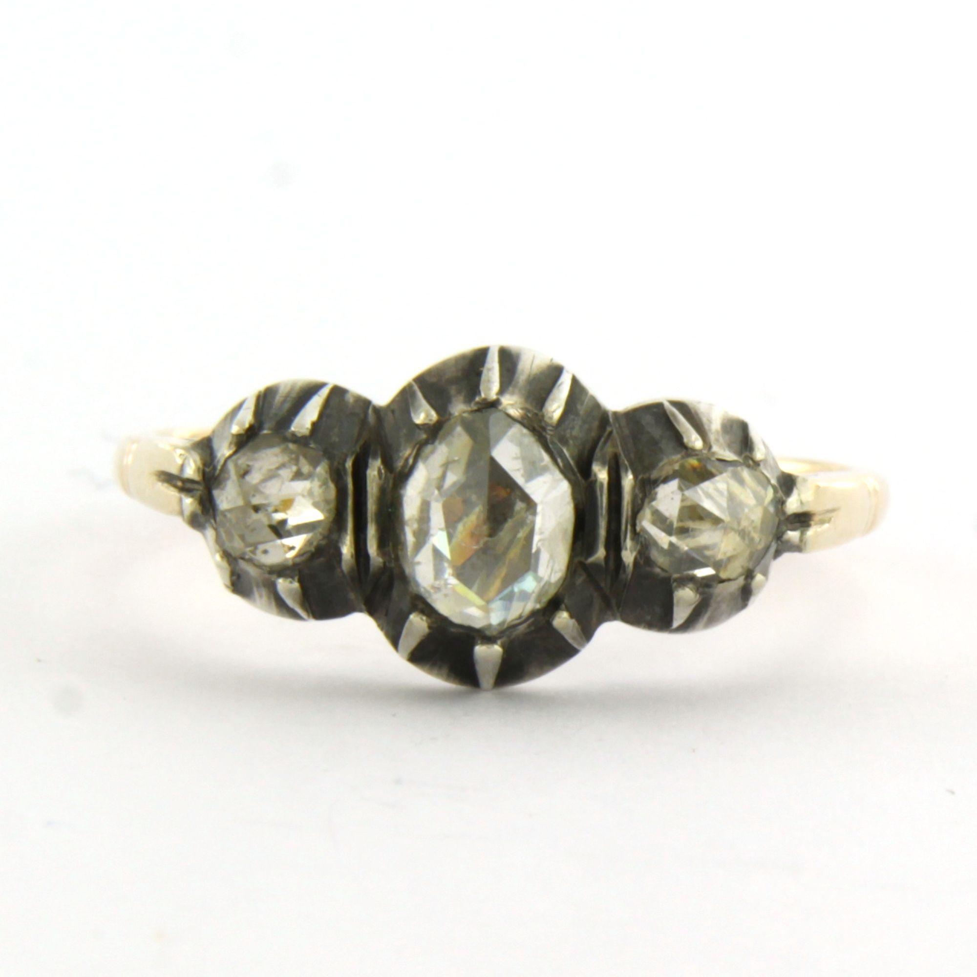 14 Kt. geelgouden met zilveren ring bezet met roos diamanten tot. 0.50ct