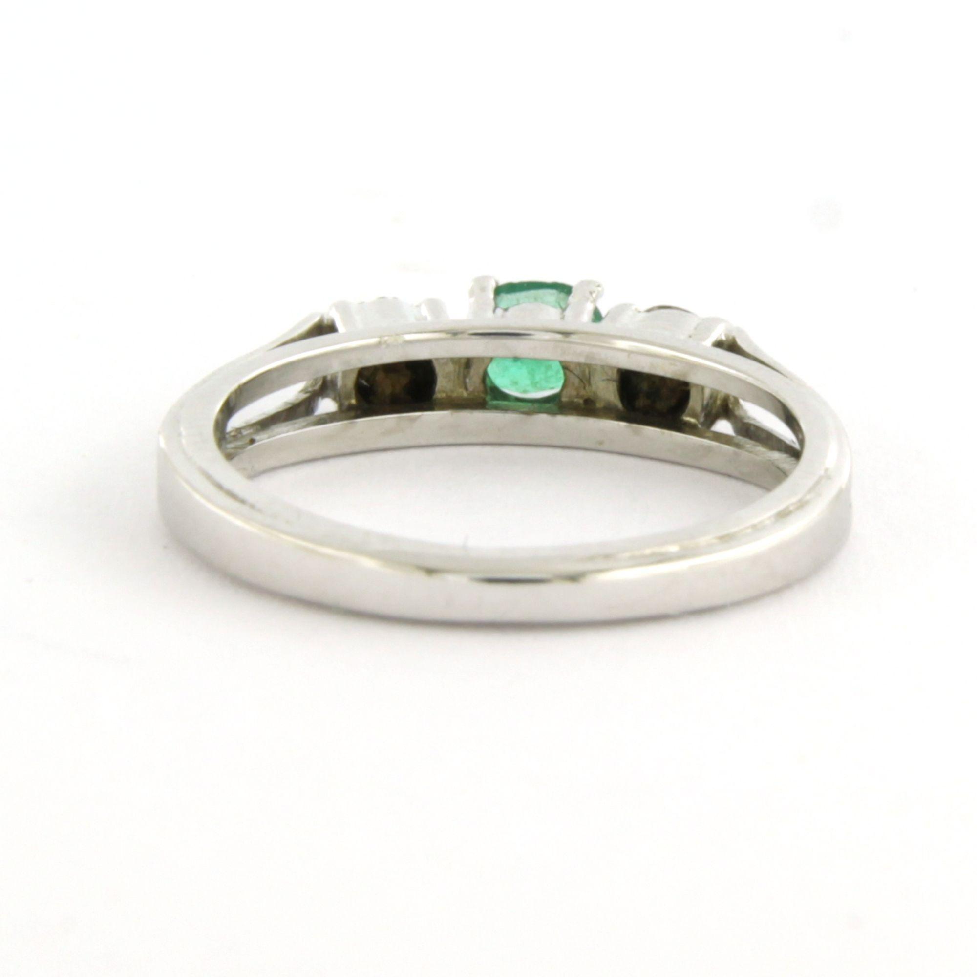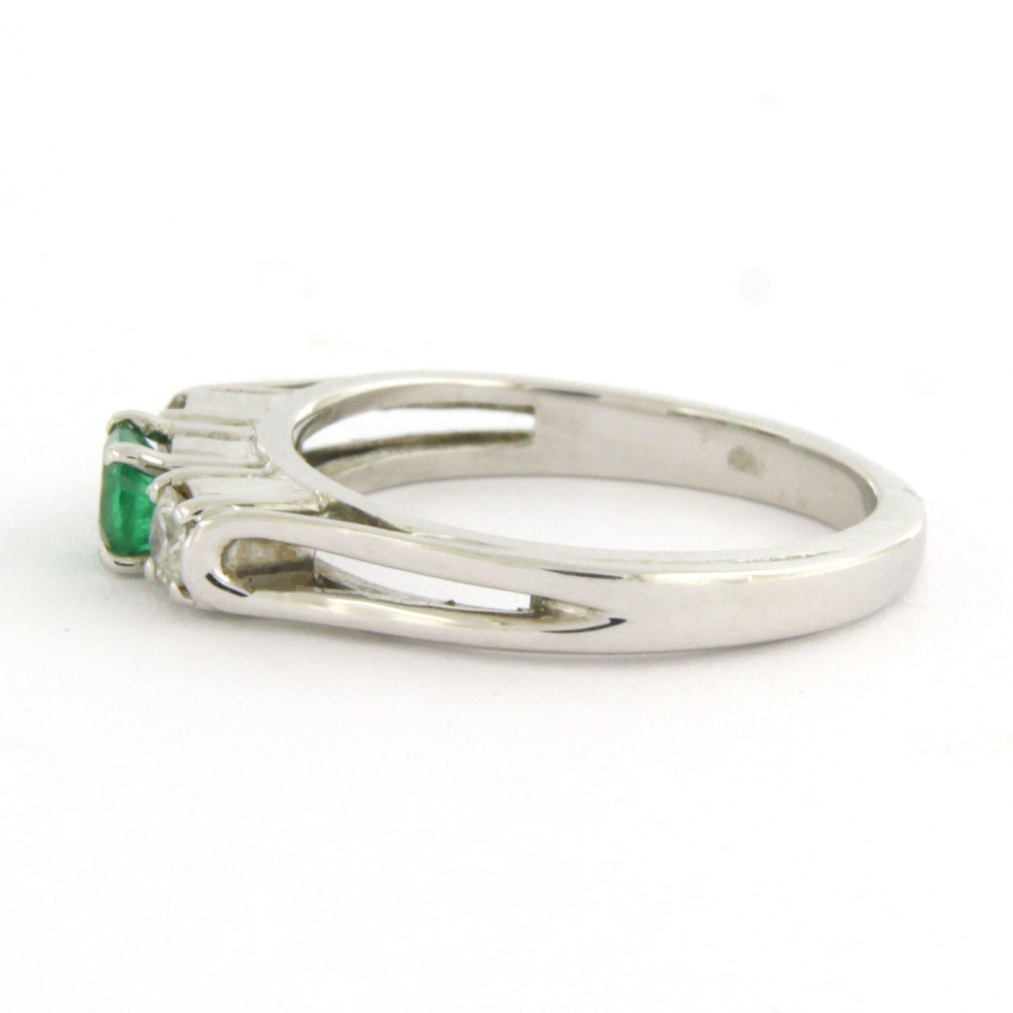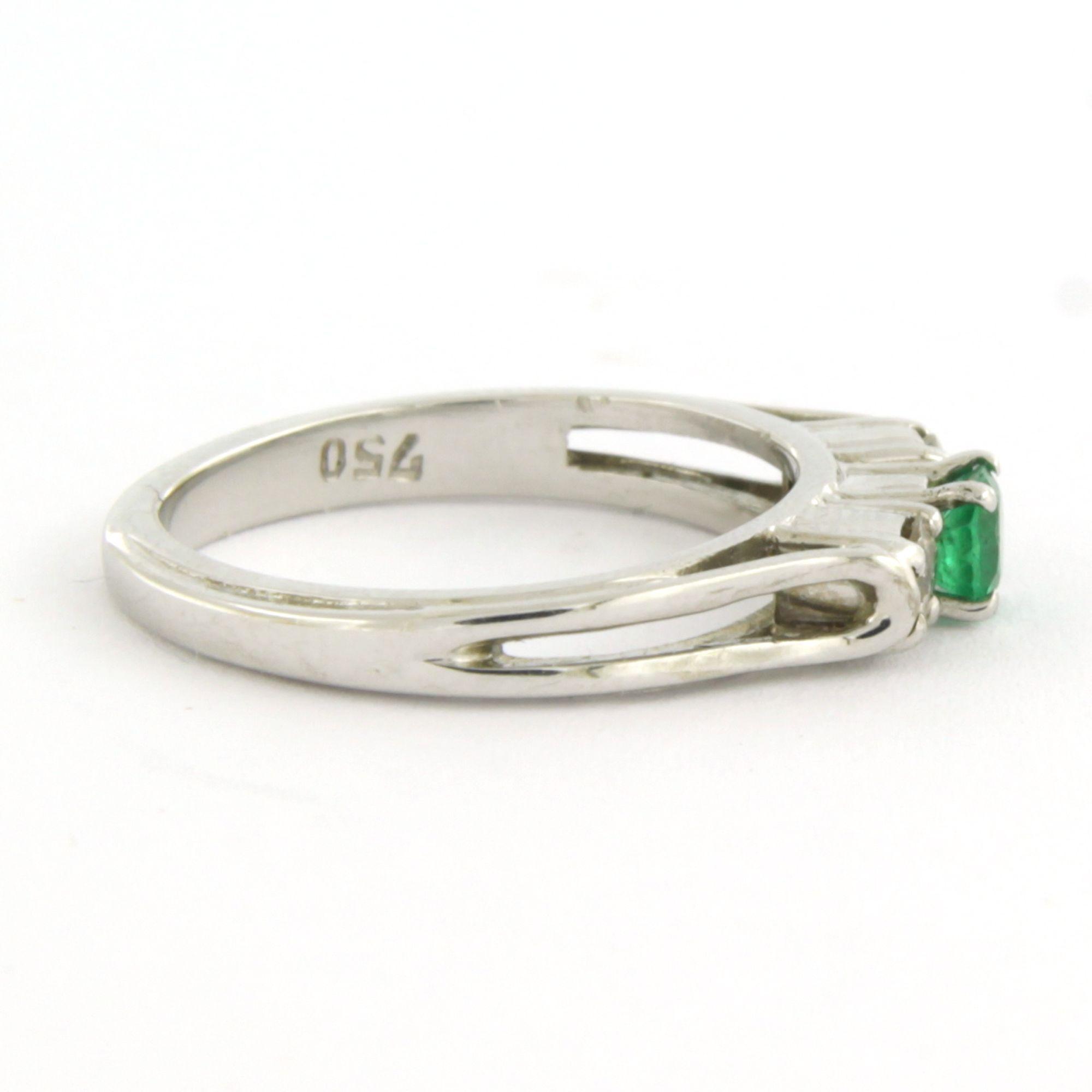 18 Kt. witgouden ring bezet met smaragd en old mine cut geslepen diamanten tot. 0.20ct - ringmaat 14.25(45)