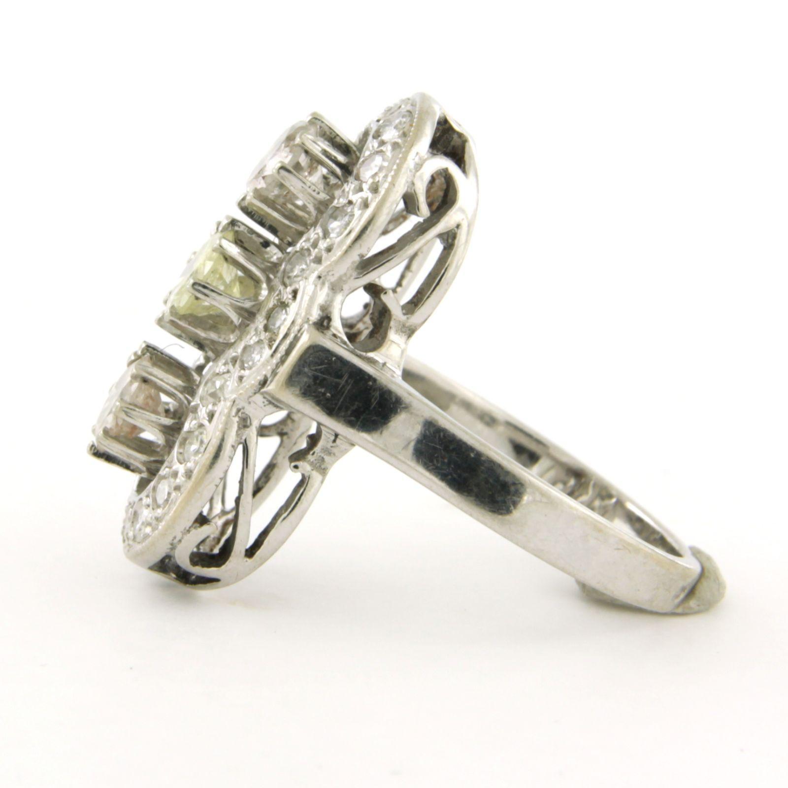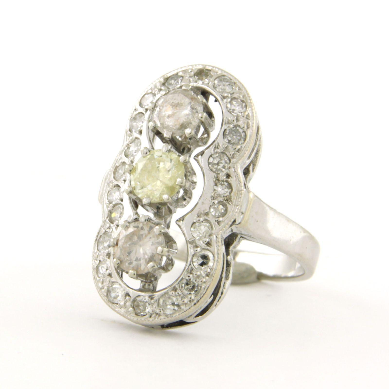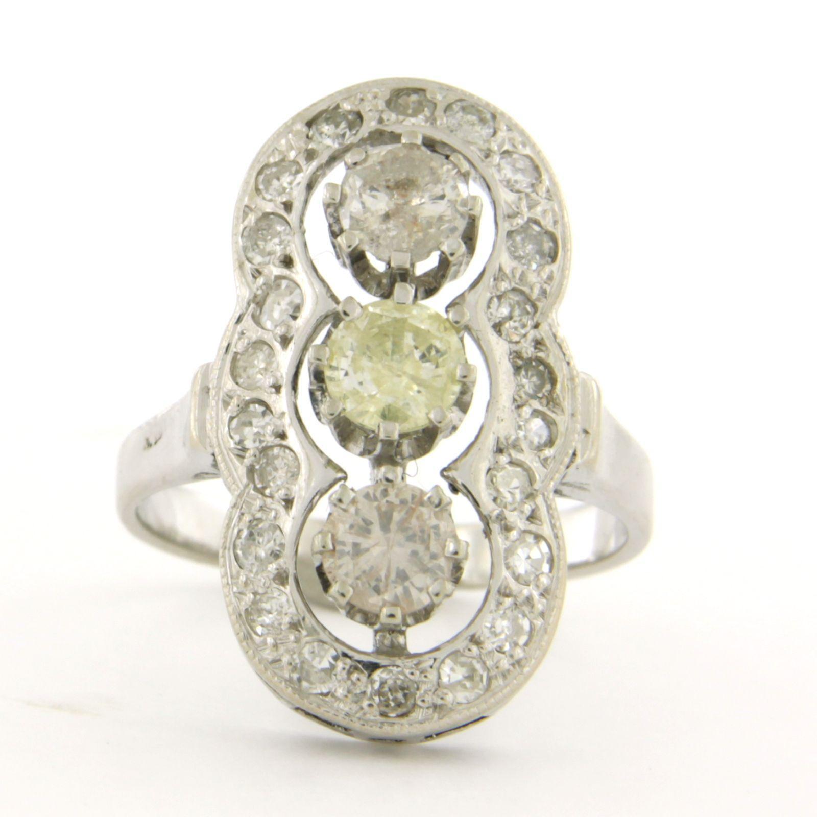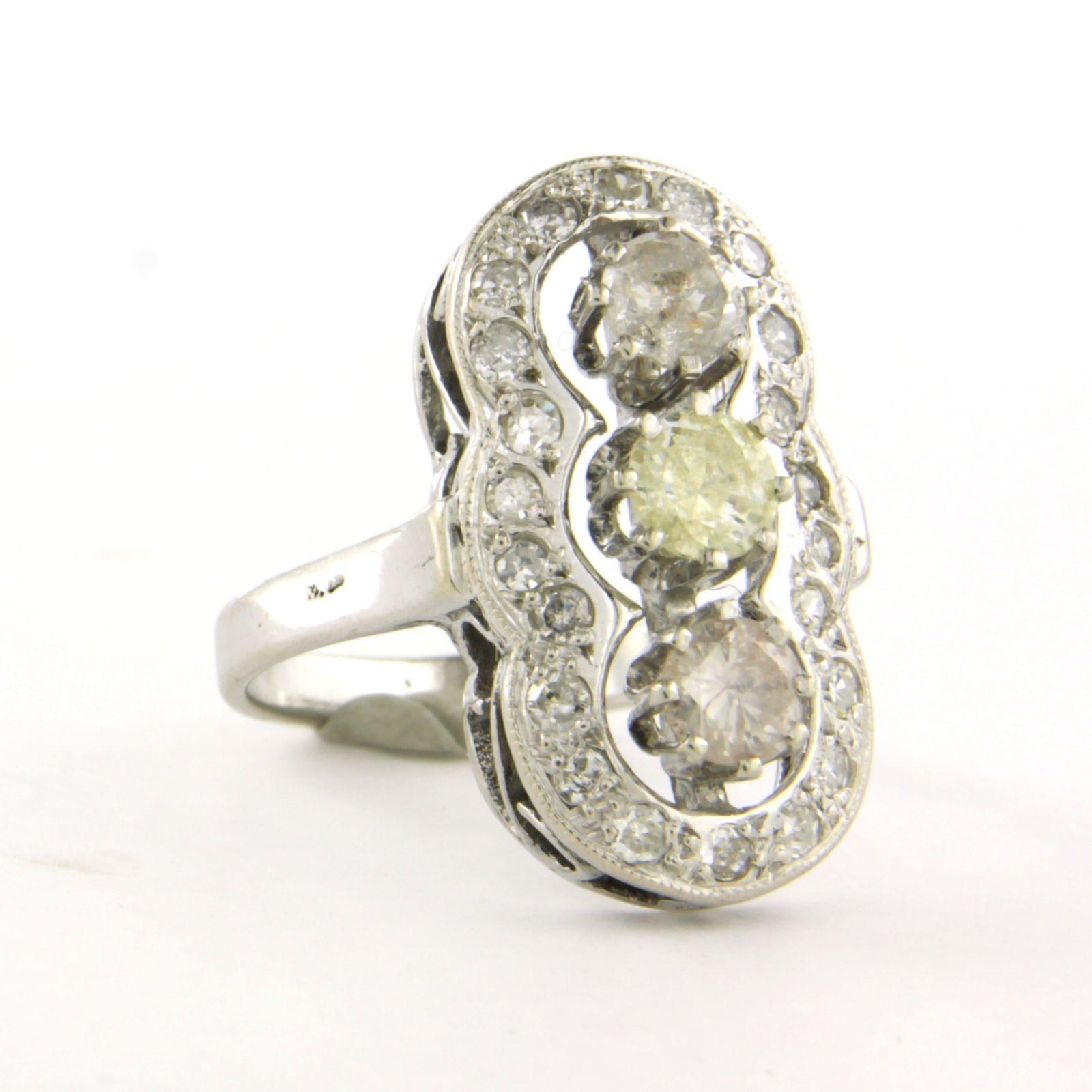 14 Kt. witgouden ring bezet met briljant en single cut geslepen diamanten tot. 1.50ct - ringmaat 17.25(54)