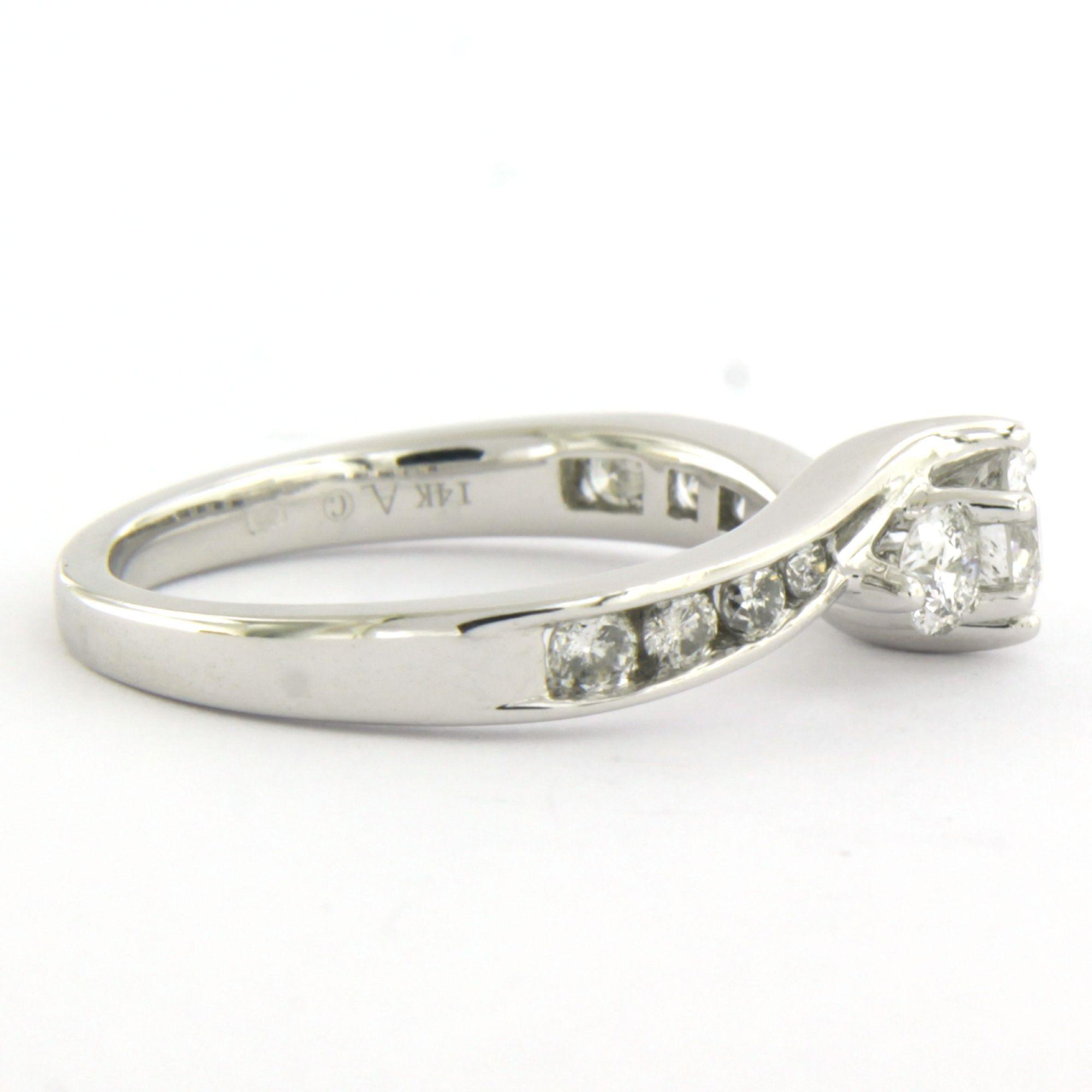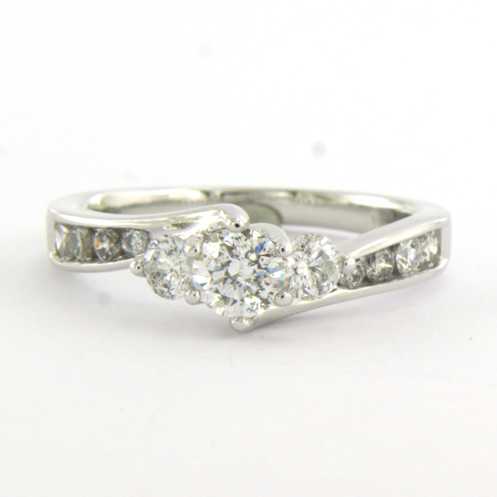 14 Kt. witgouden ring bezet met briljant geslepen diamant tot. 1.00ct - ringmaat 17.25(54)