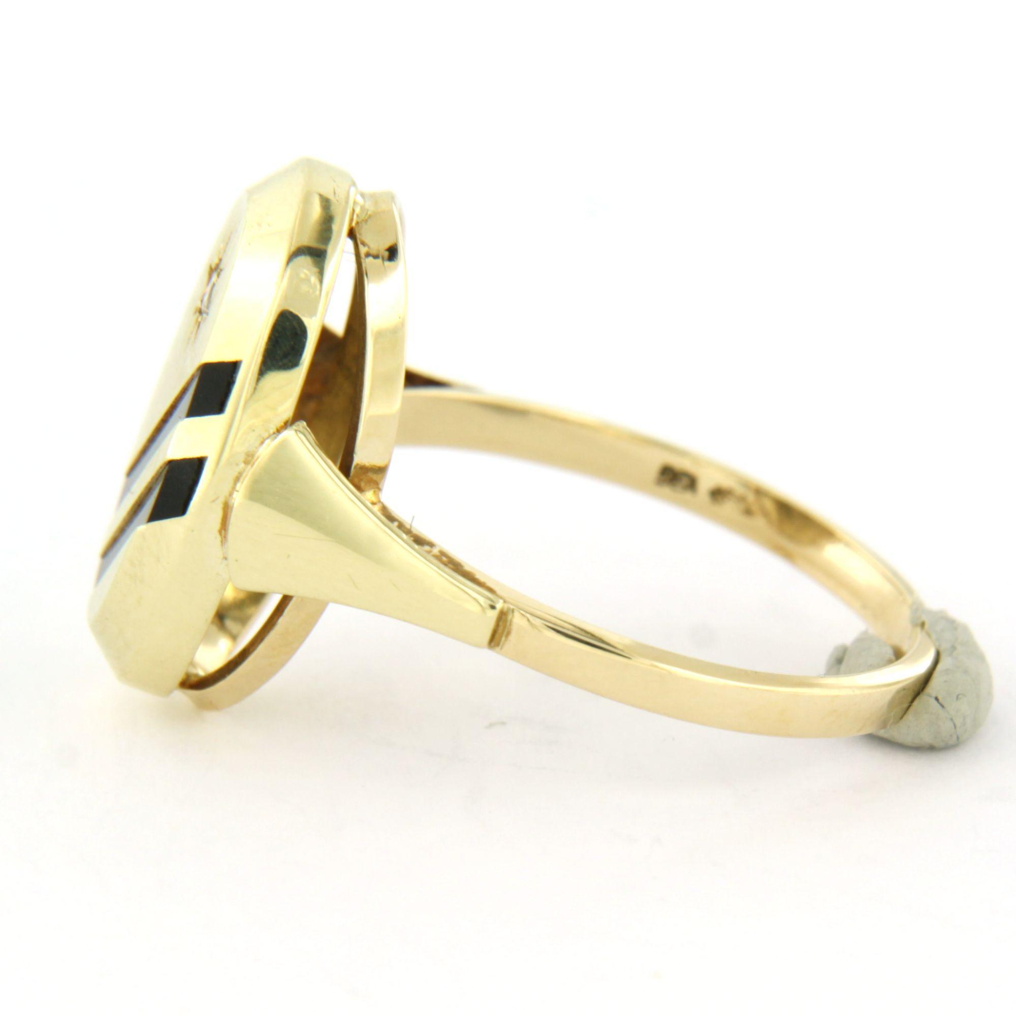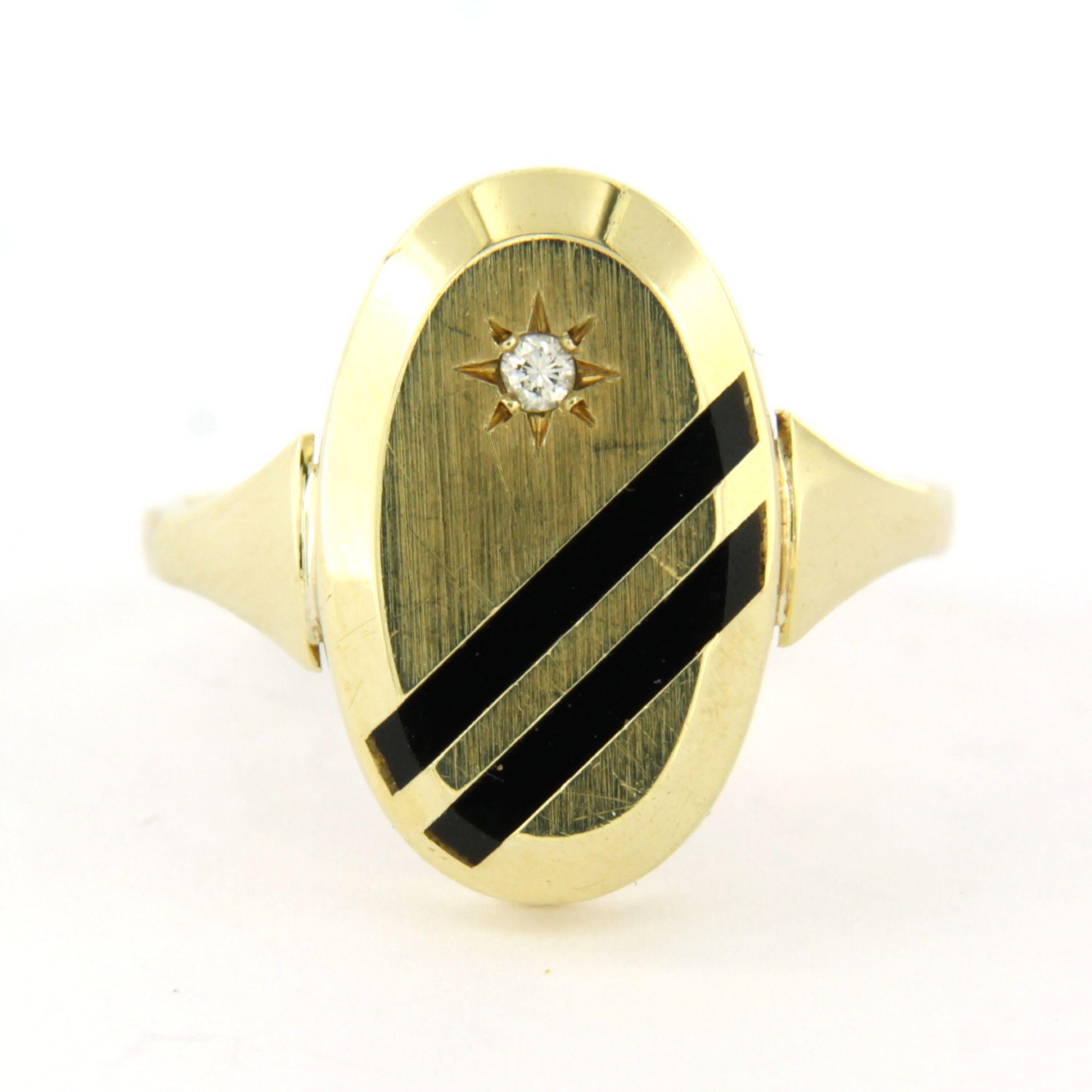 14 Kt. geelgouden ring bezet met onyx en briljant geslepen diamant tot. 0.02ct - ringmaat 17(53)