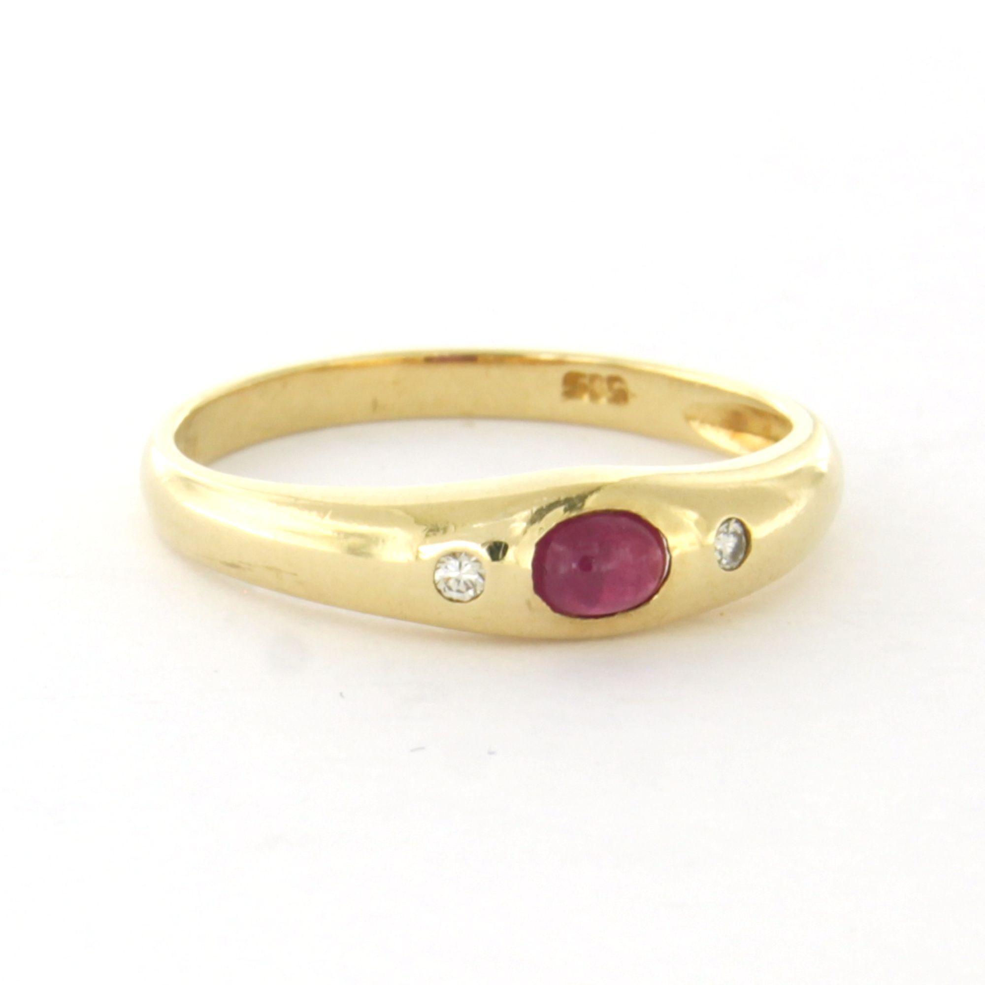 14 Kt. geelgouden ring bezet met robijn en briljant geslepen diamant tot.0.02ct - ringmaat 16.5(52)