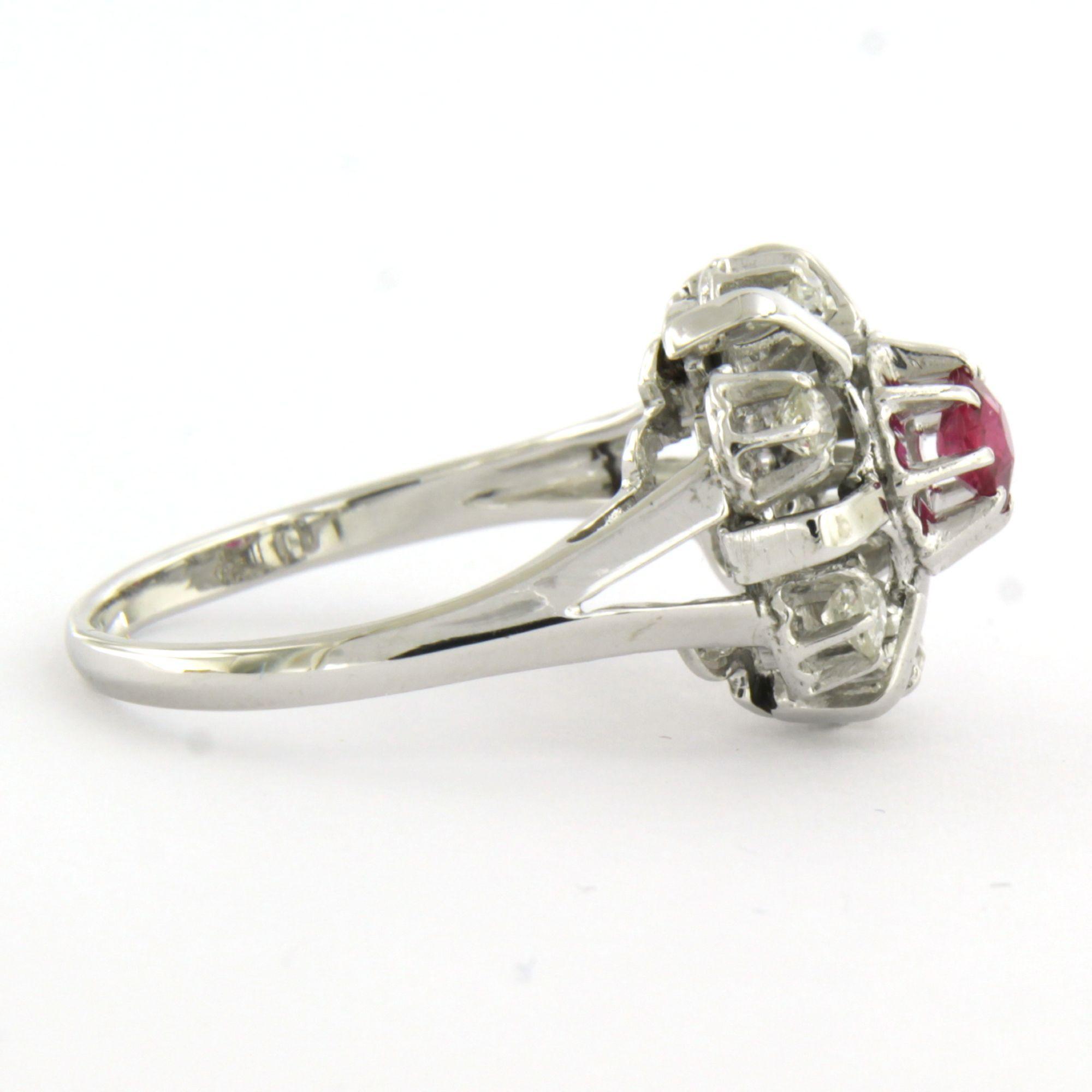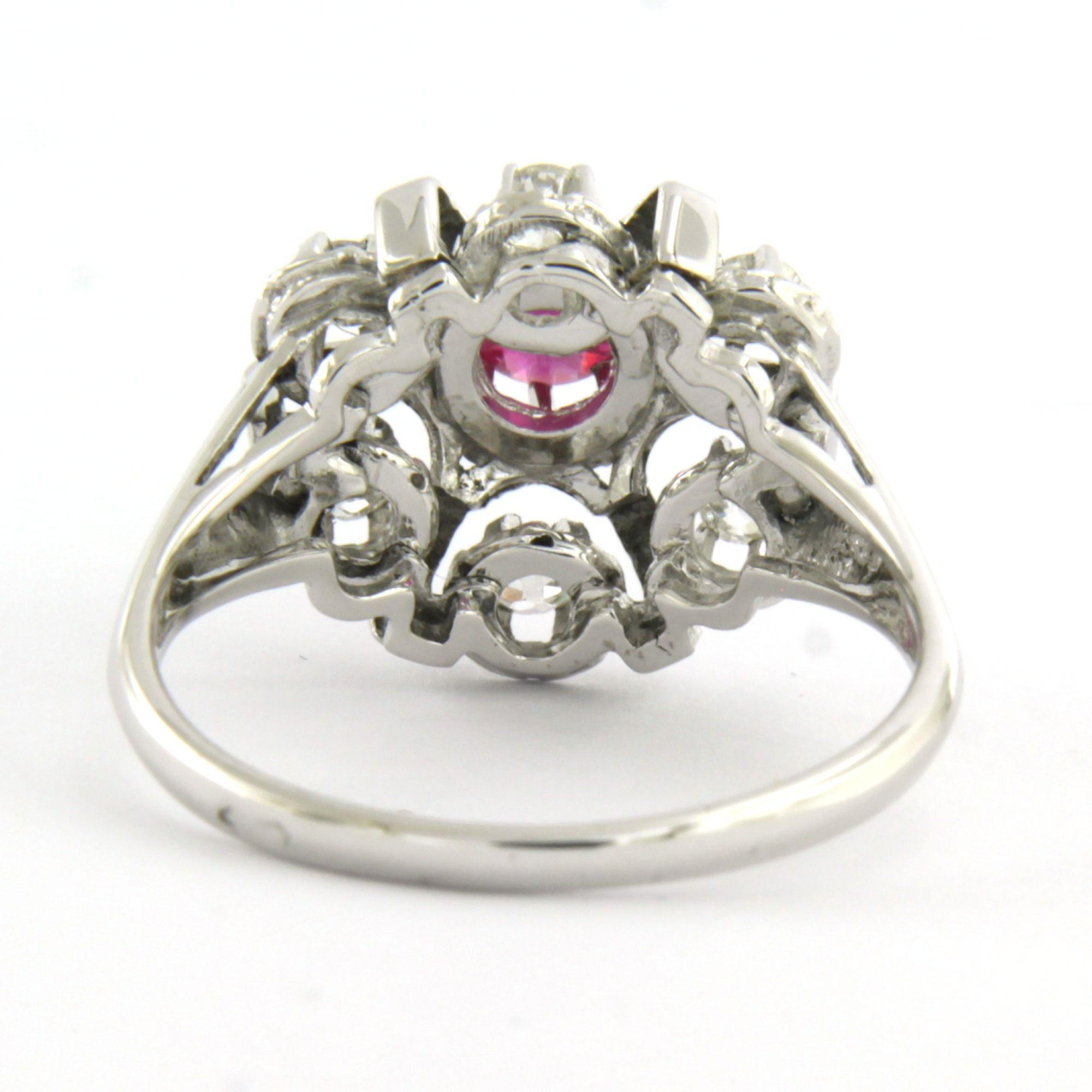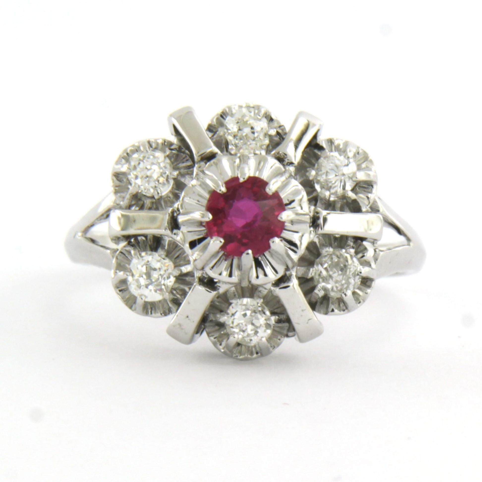 18 Kt. witgouden ring bezet met robijn en Bolsjewiek geslepen diamanten tot. 0.30ct - ringmaat 17.75(56)