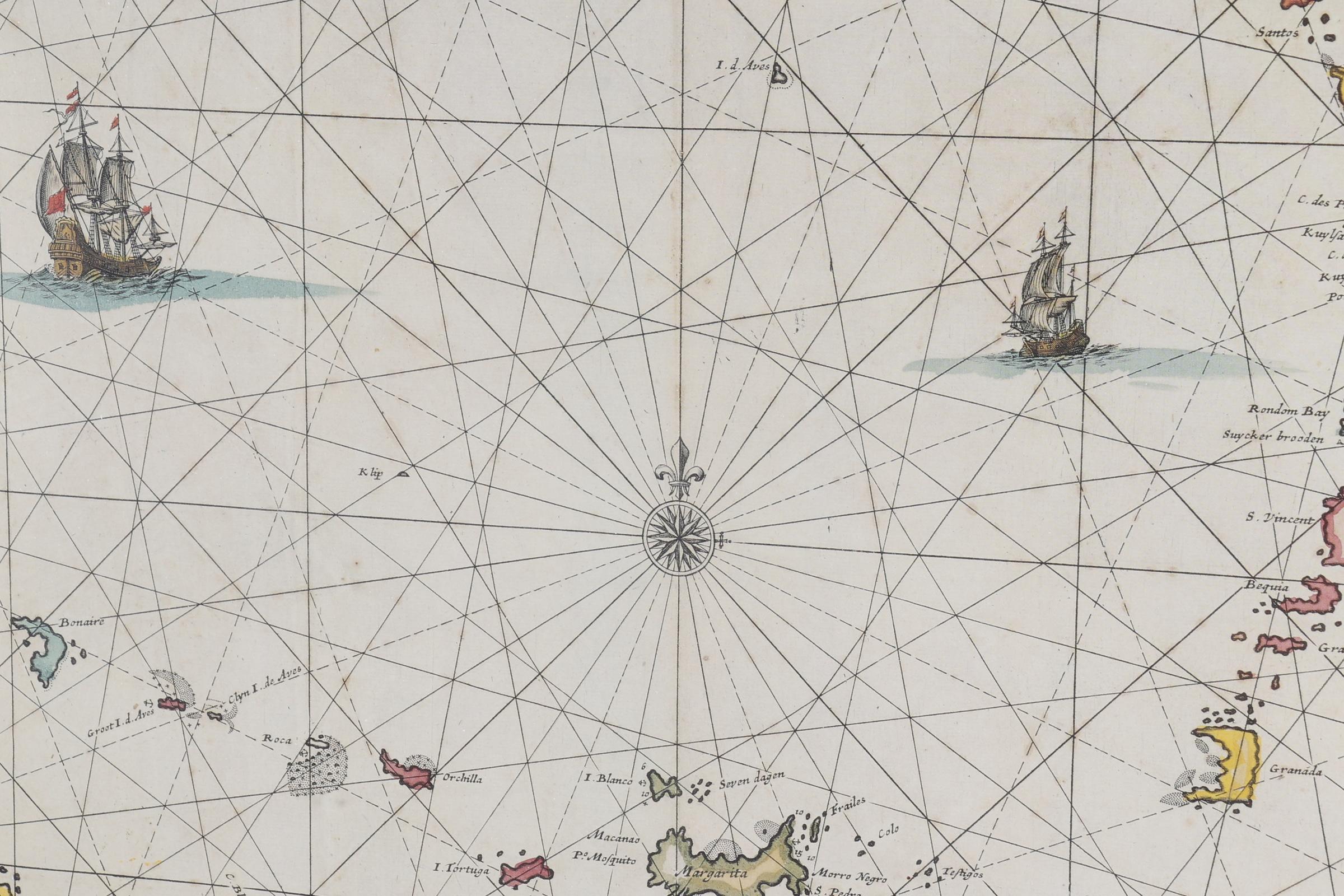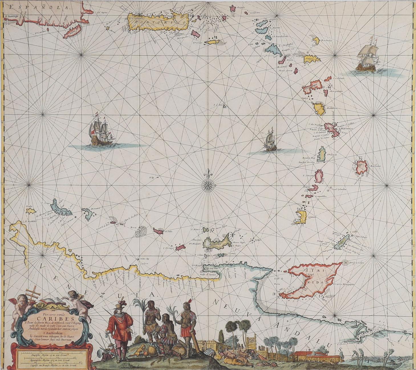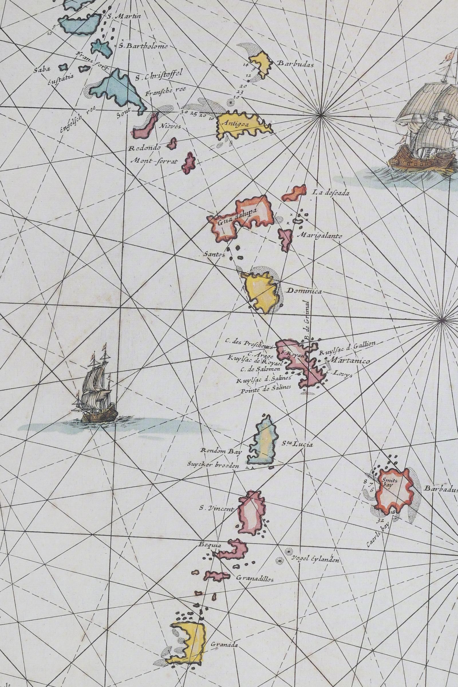 Kaart van de Caraïben, druk, 46 x 50 cm.