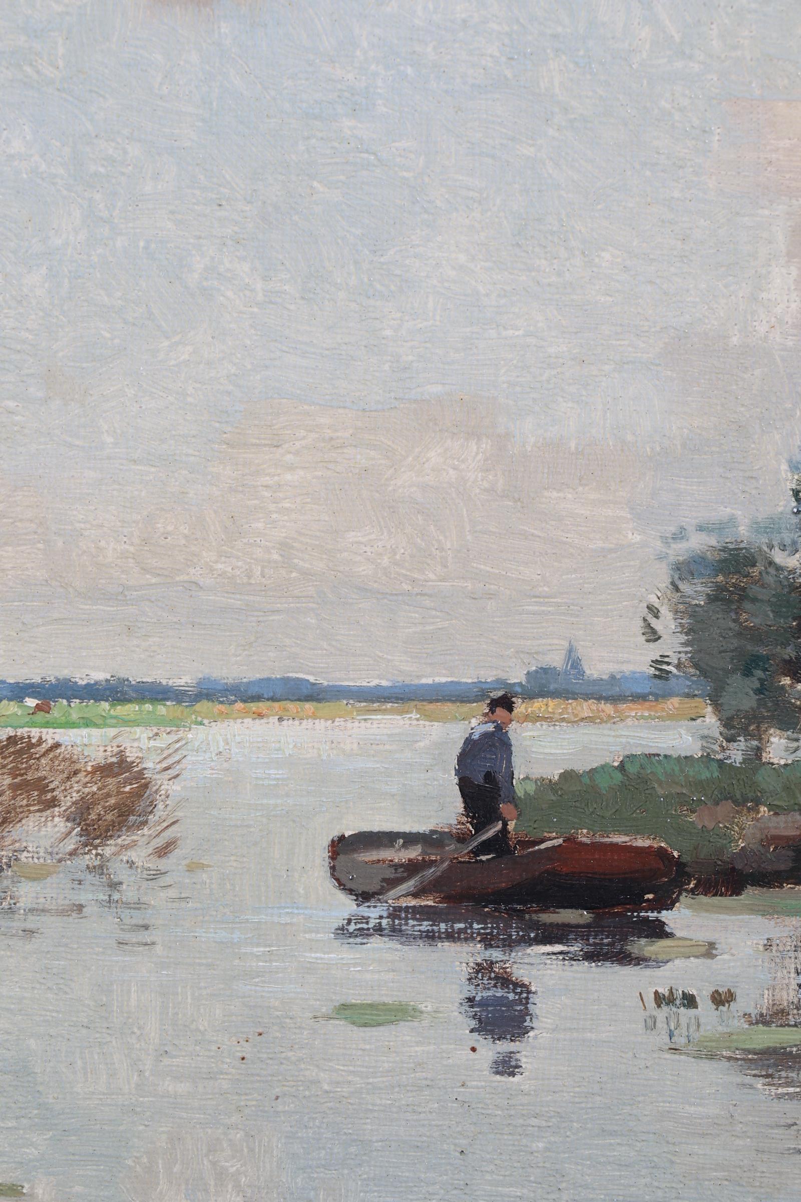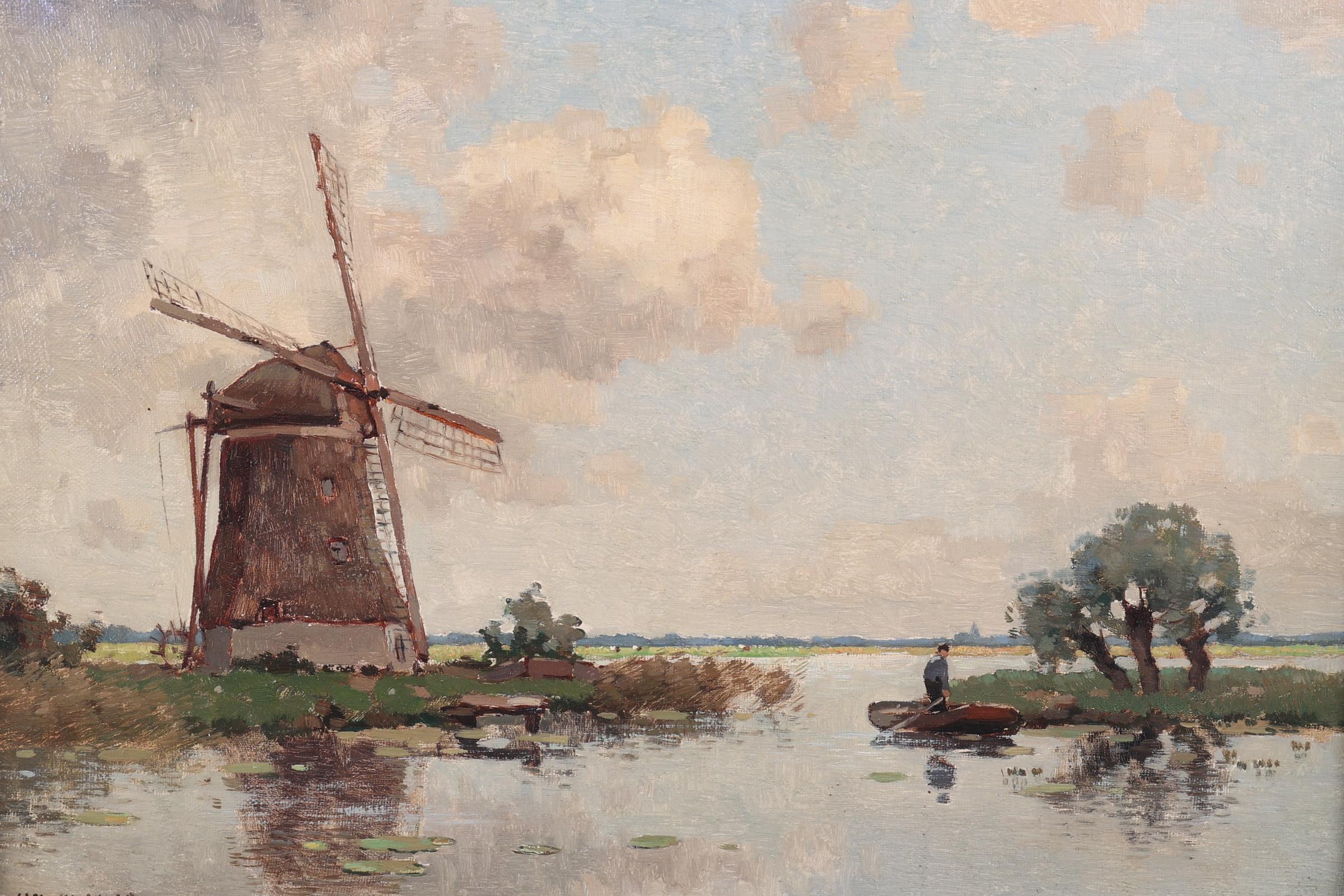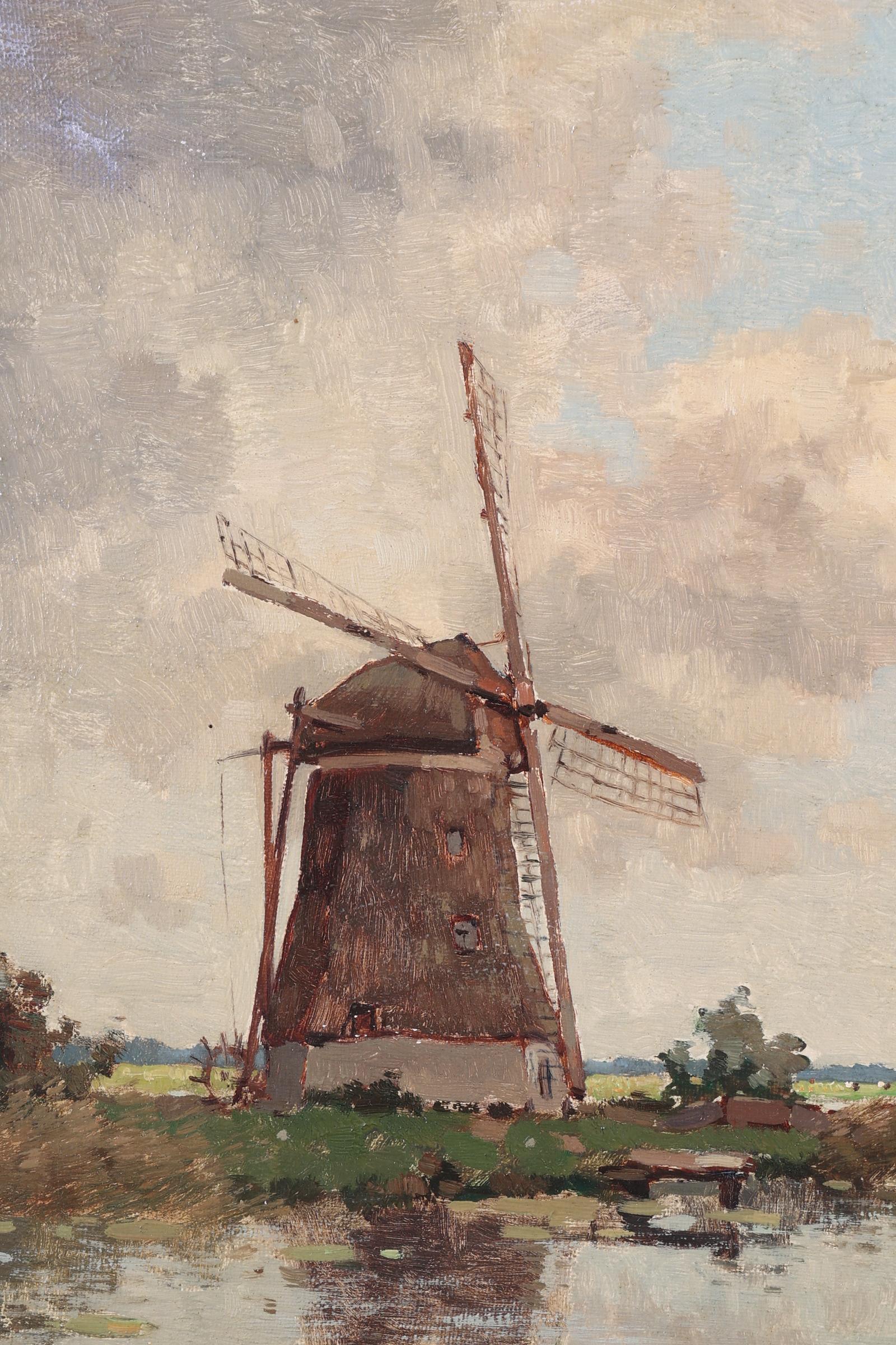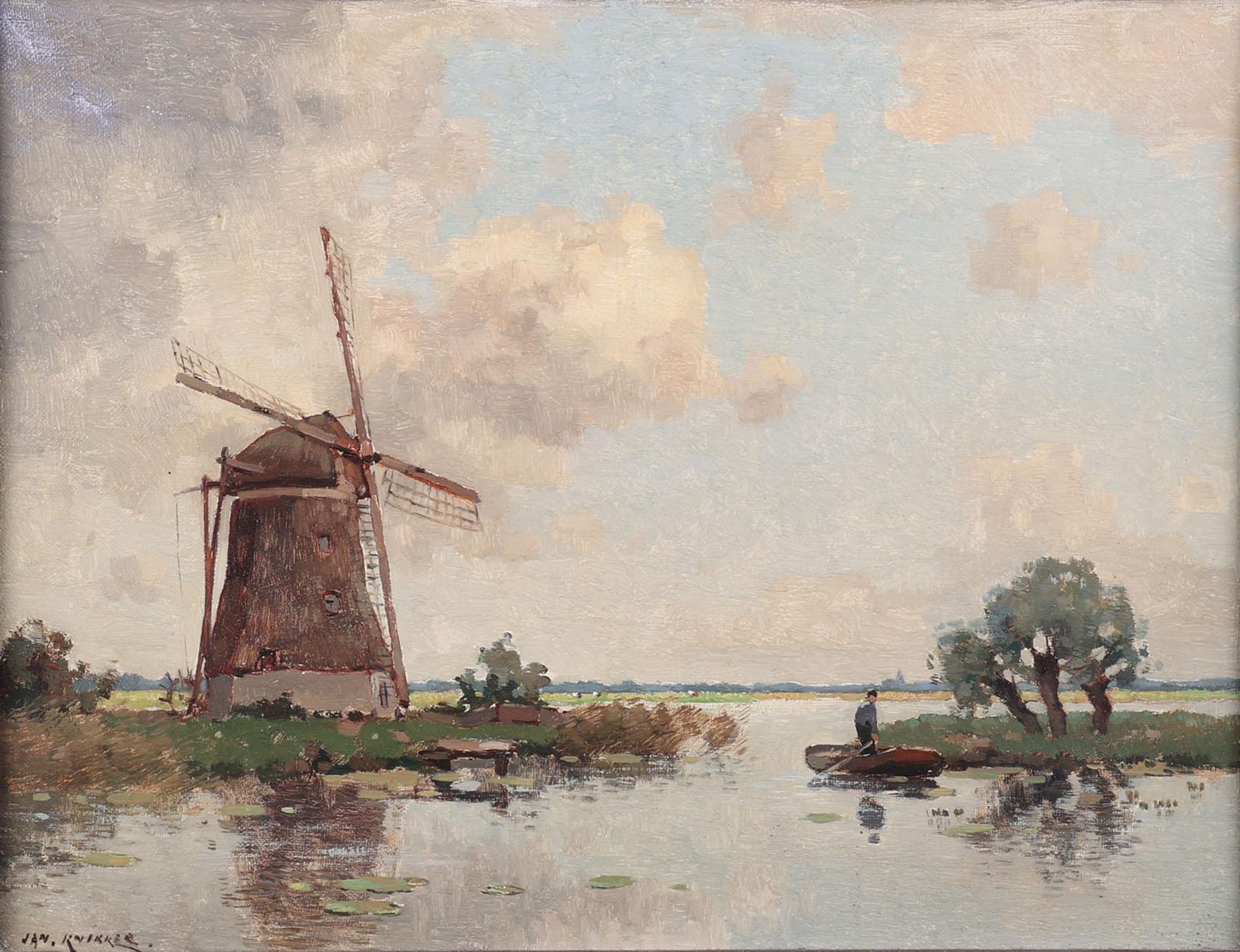 Jan Simon Knikker sr. (1889-1957), Rivierlandschap met molen, olieverf op doek, 30 x 40 cm.