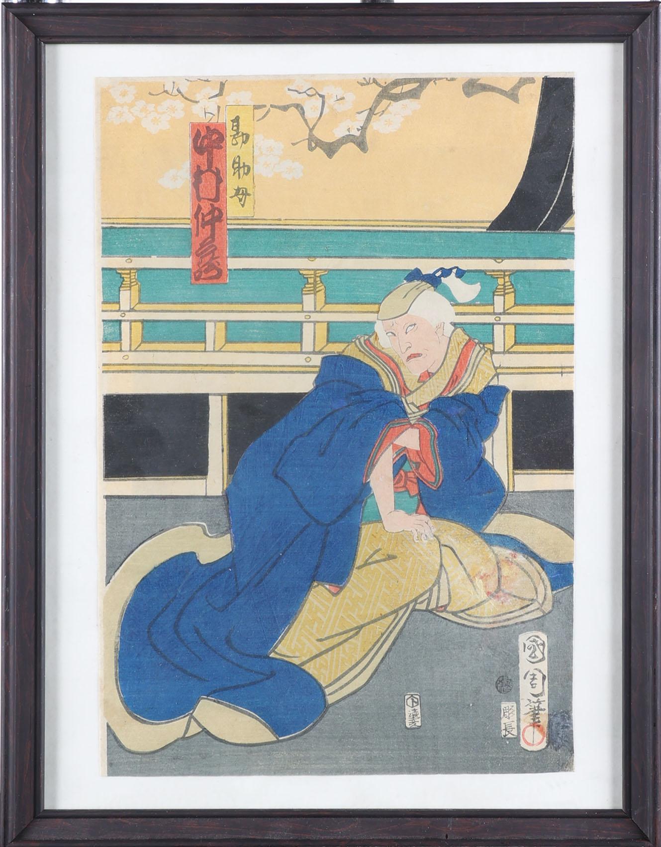 Toyohara Komachika (1835-1900), Vrouw in kimono, Japanse houtbloksnede, Meiji-periode, 24 x 36 cm.