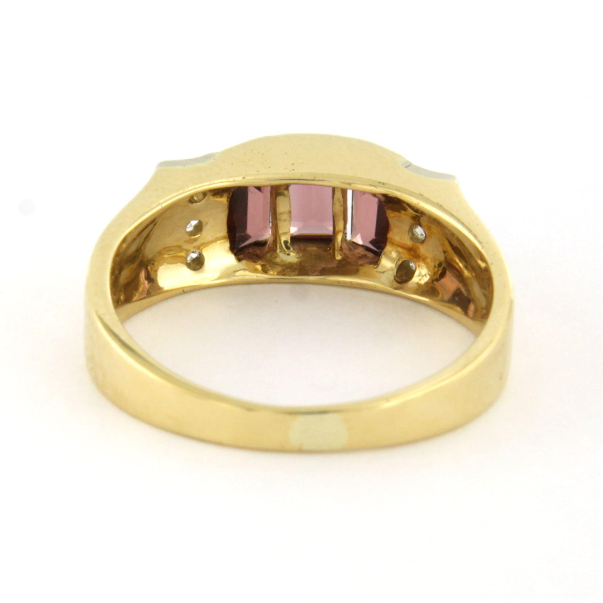 18 Kt. geelgouden ring bezet met granaat en briljant geslepen diamant tot. 0.06ct - ringmaat 17(53)