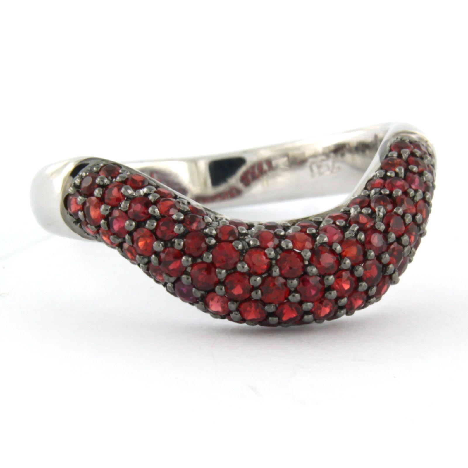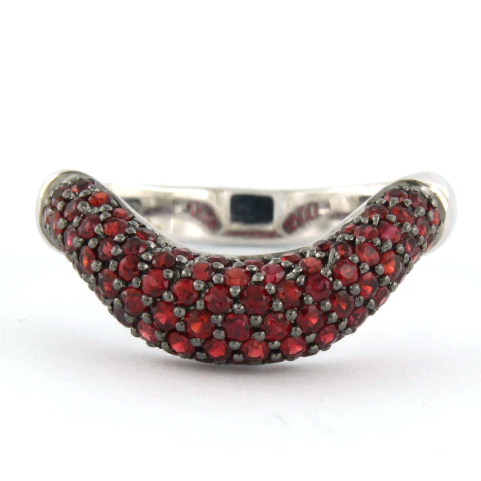 18 Kt. witgouden ring bezet met rode granaat - ringmaat 20.5(64)