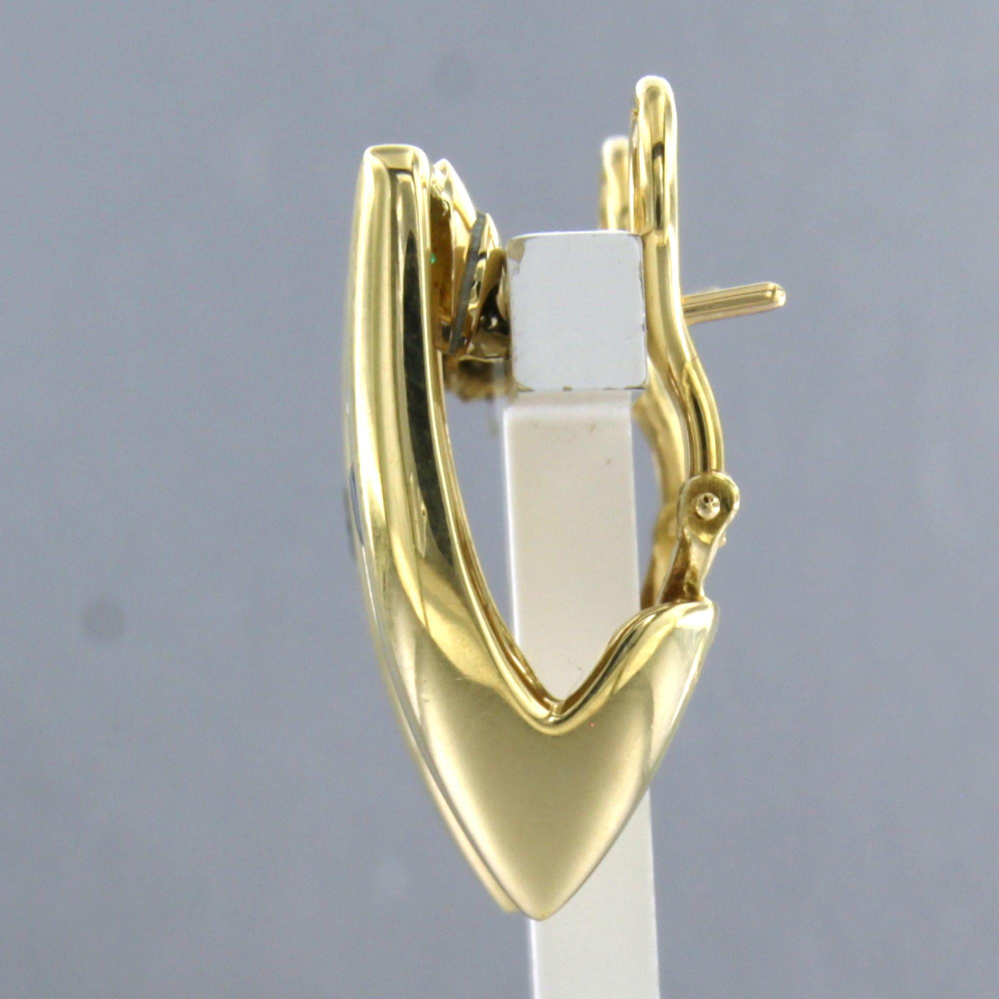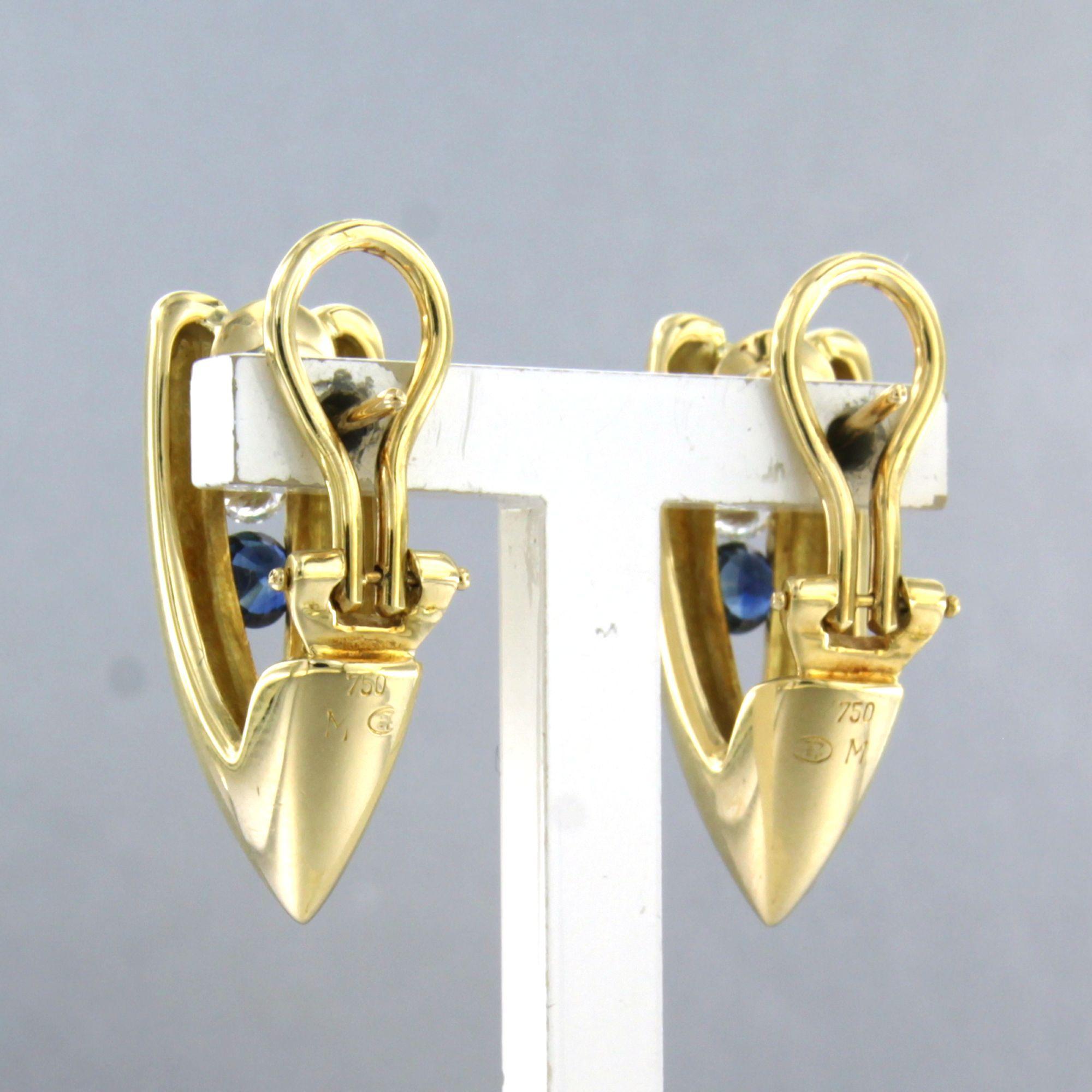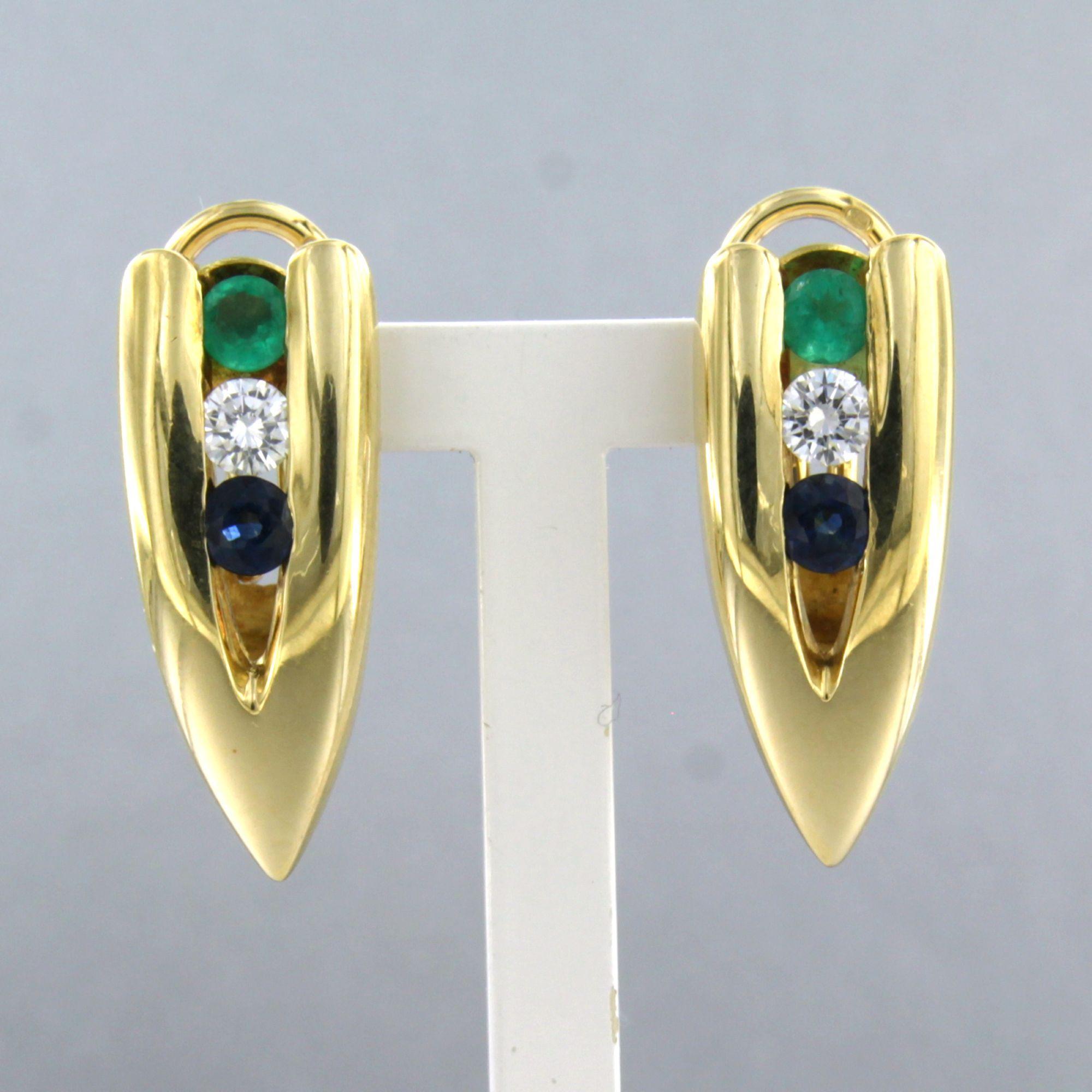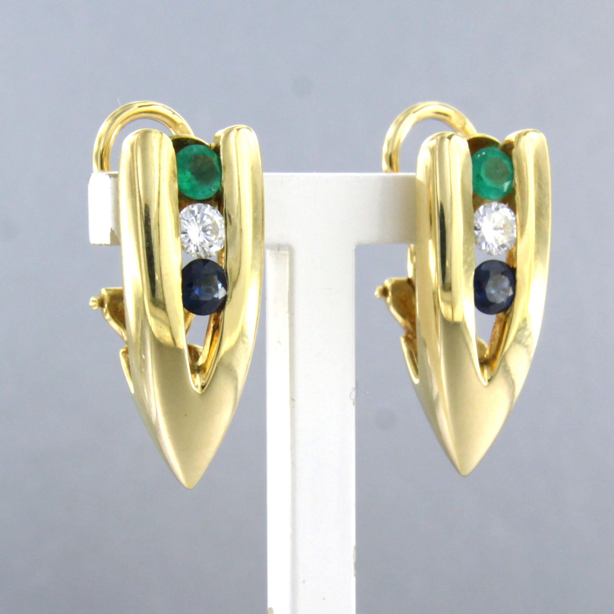 18 Kt. geelgouden oorclips bezet met smaragd, saffier en briljant geslepen diamant tot. 0.40ct