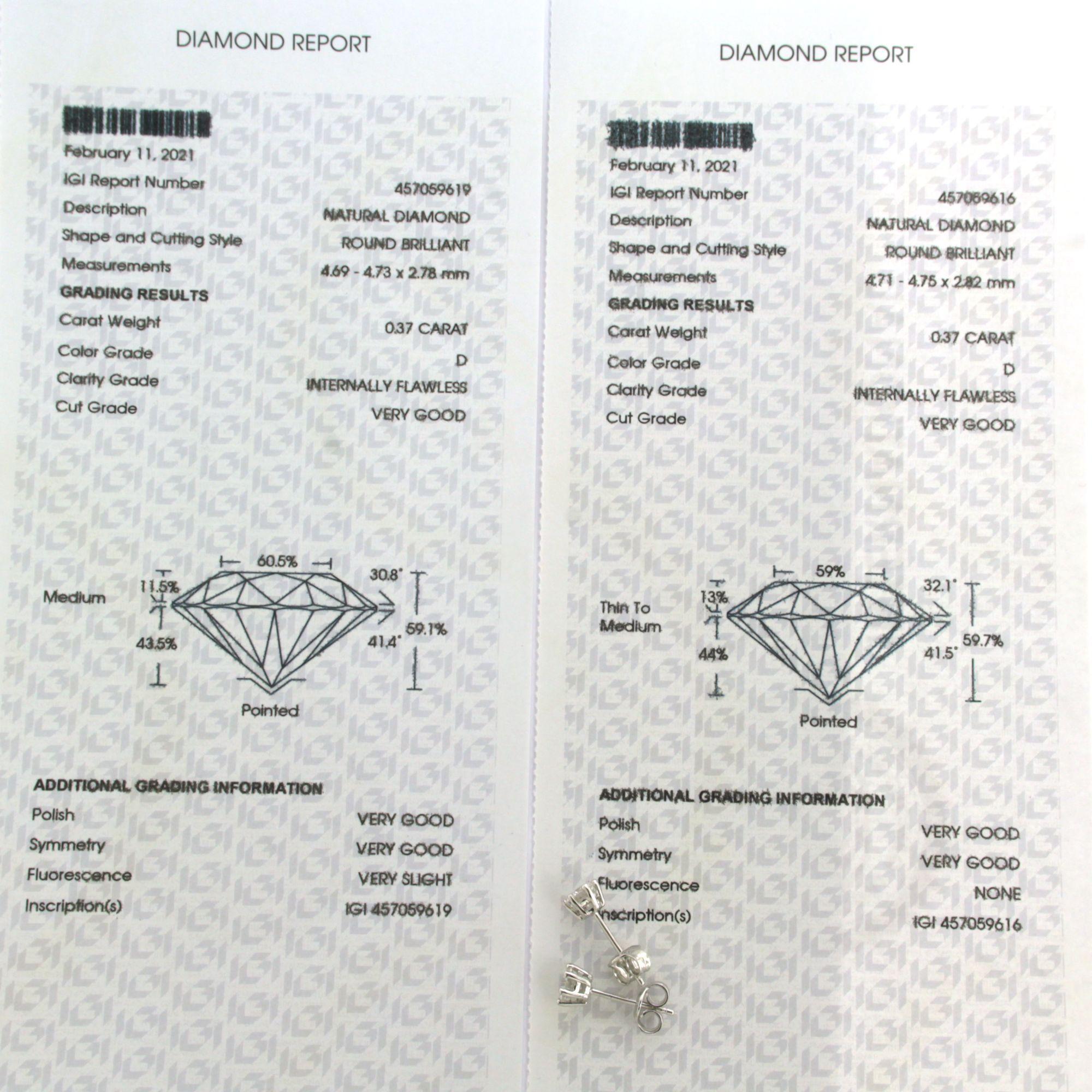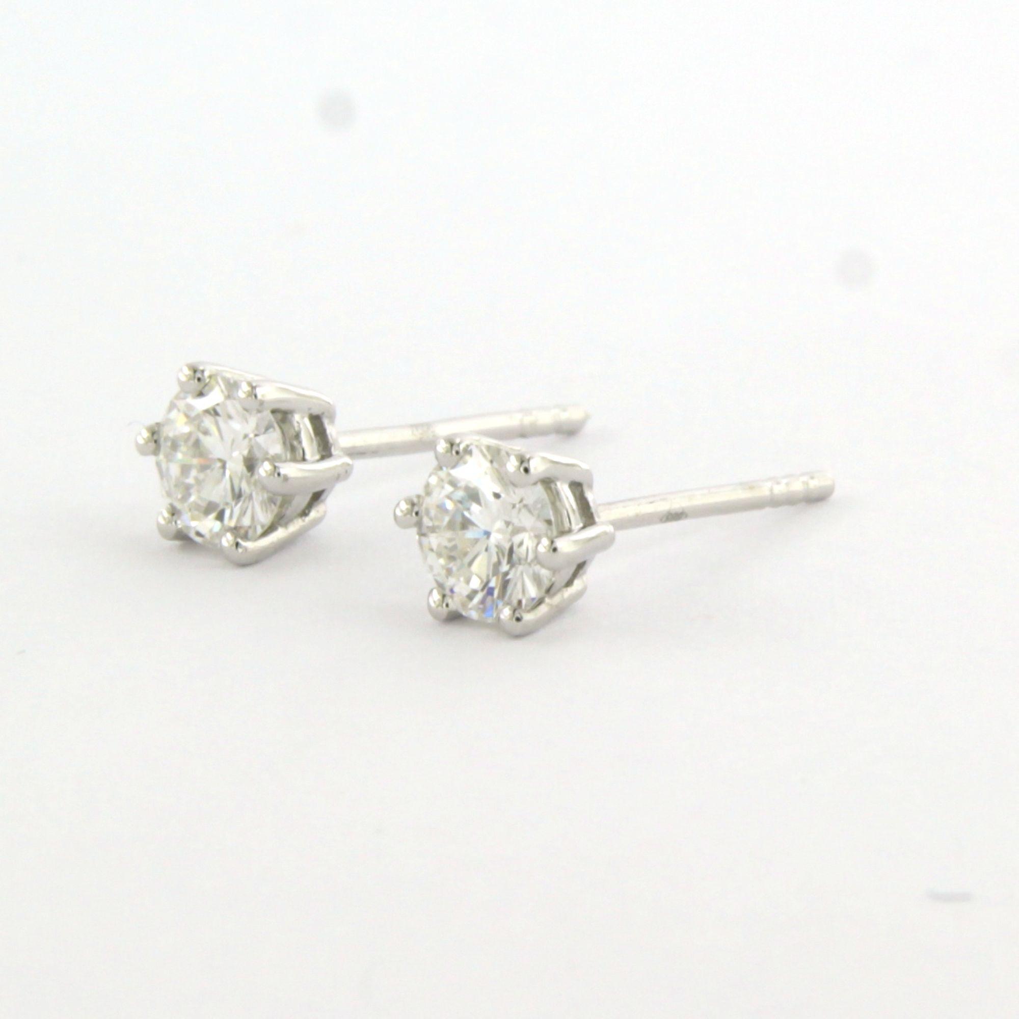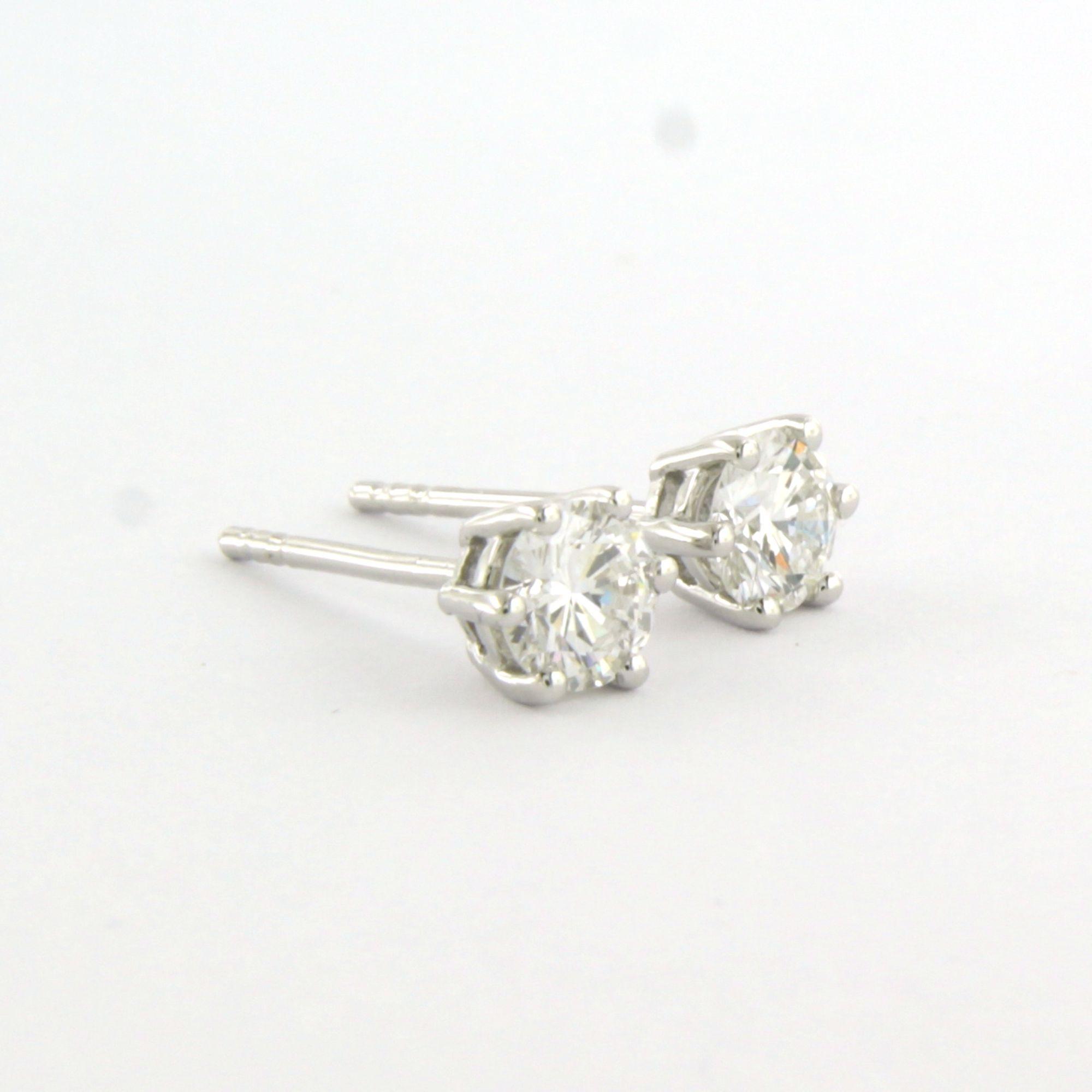 IDI diamant rapport 14 Kt. witgouden solitair oorknoppen bezet met briljant geslepen diamant tot. 0.74ct