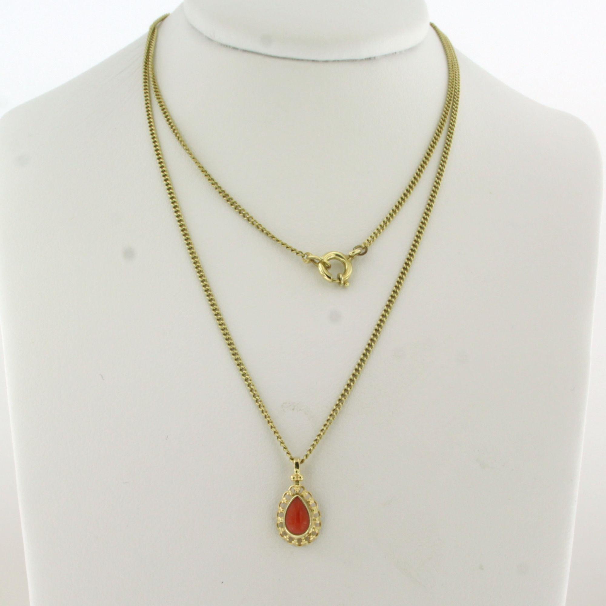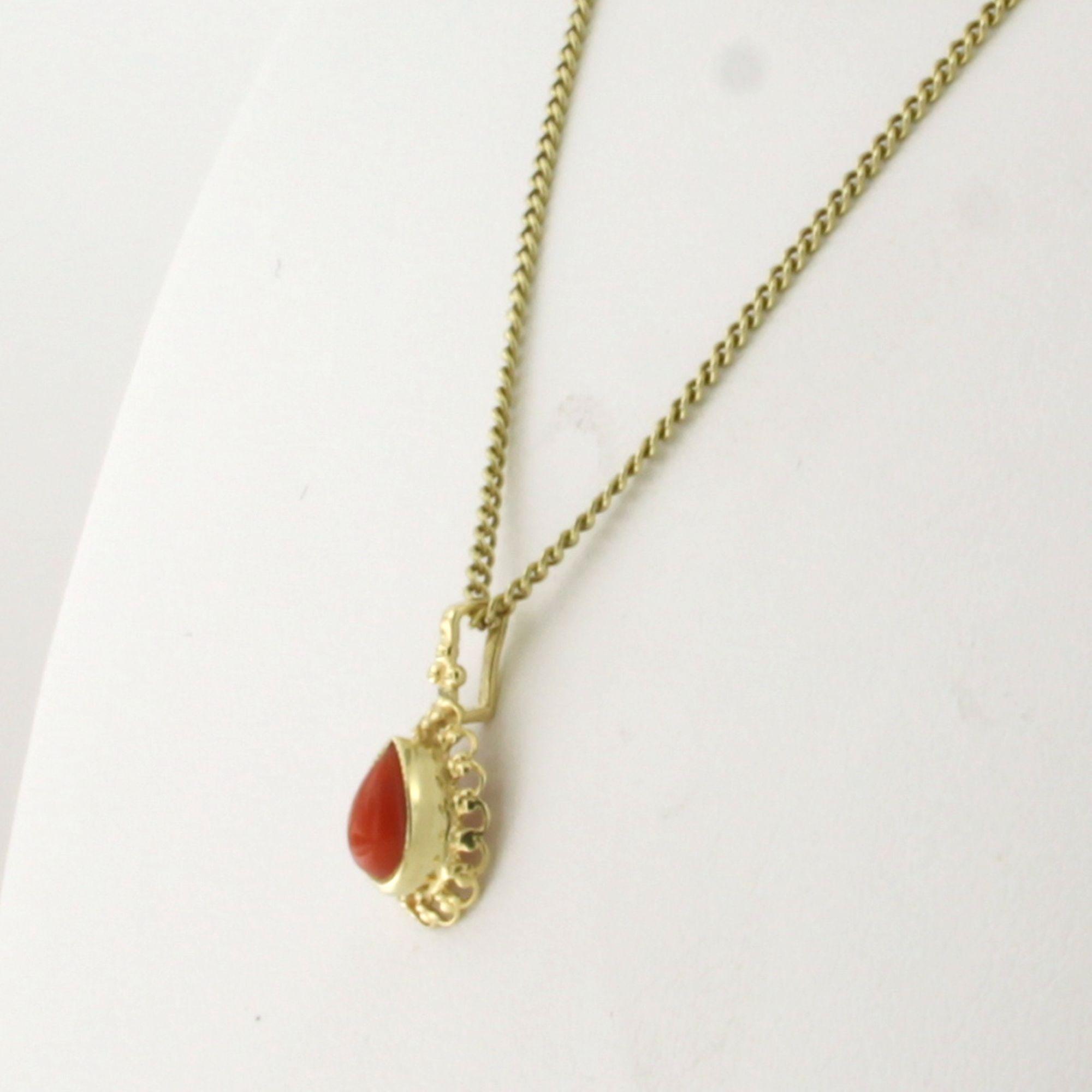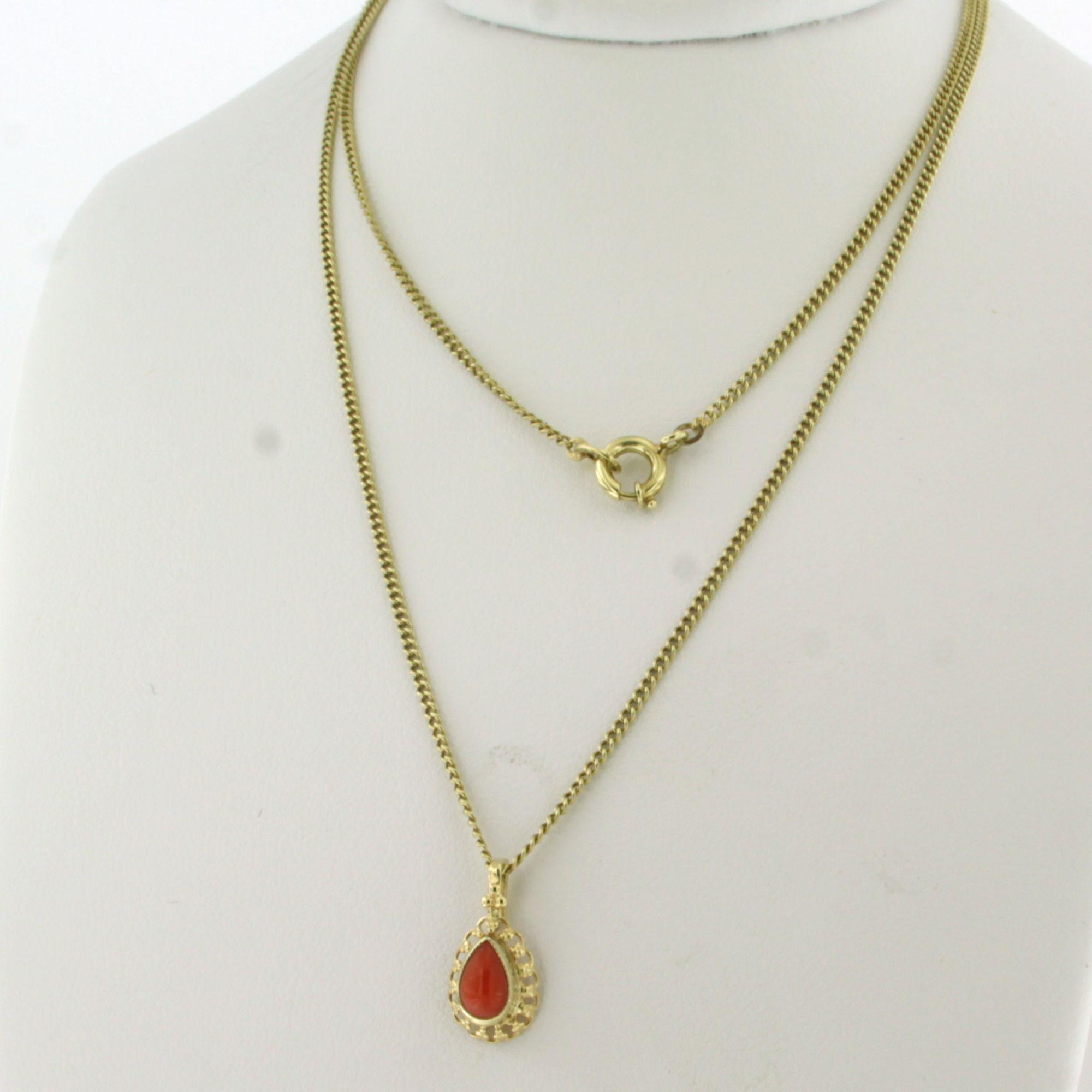 14 Kt. geelgouden collier en hanger bezet met koraal