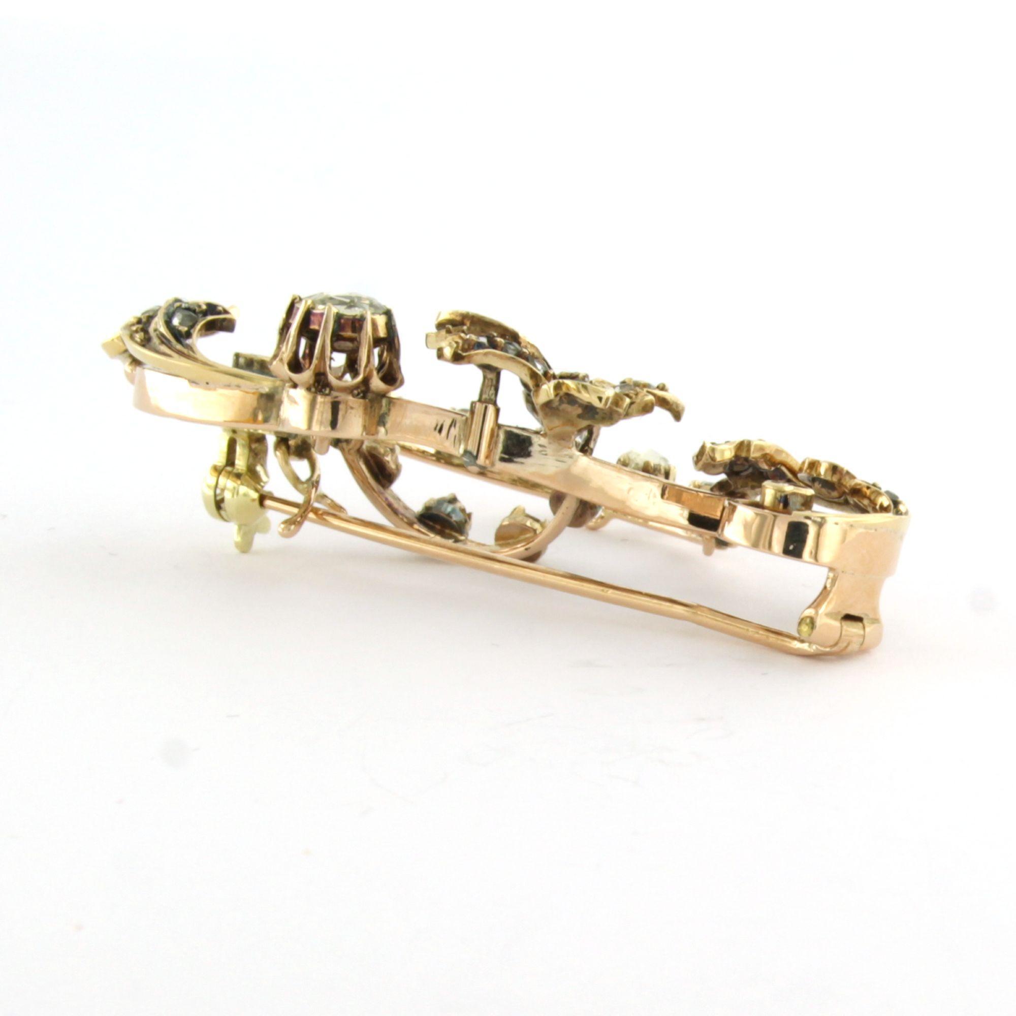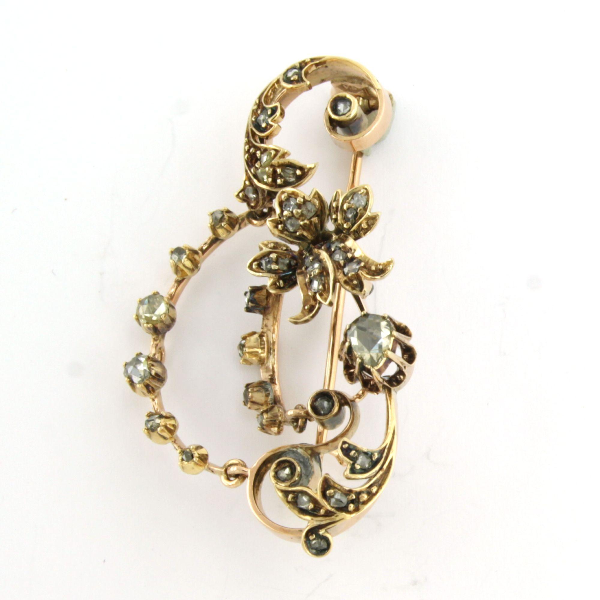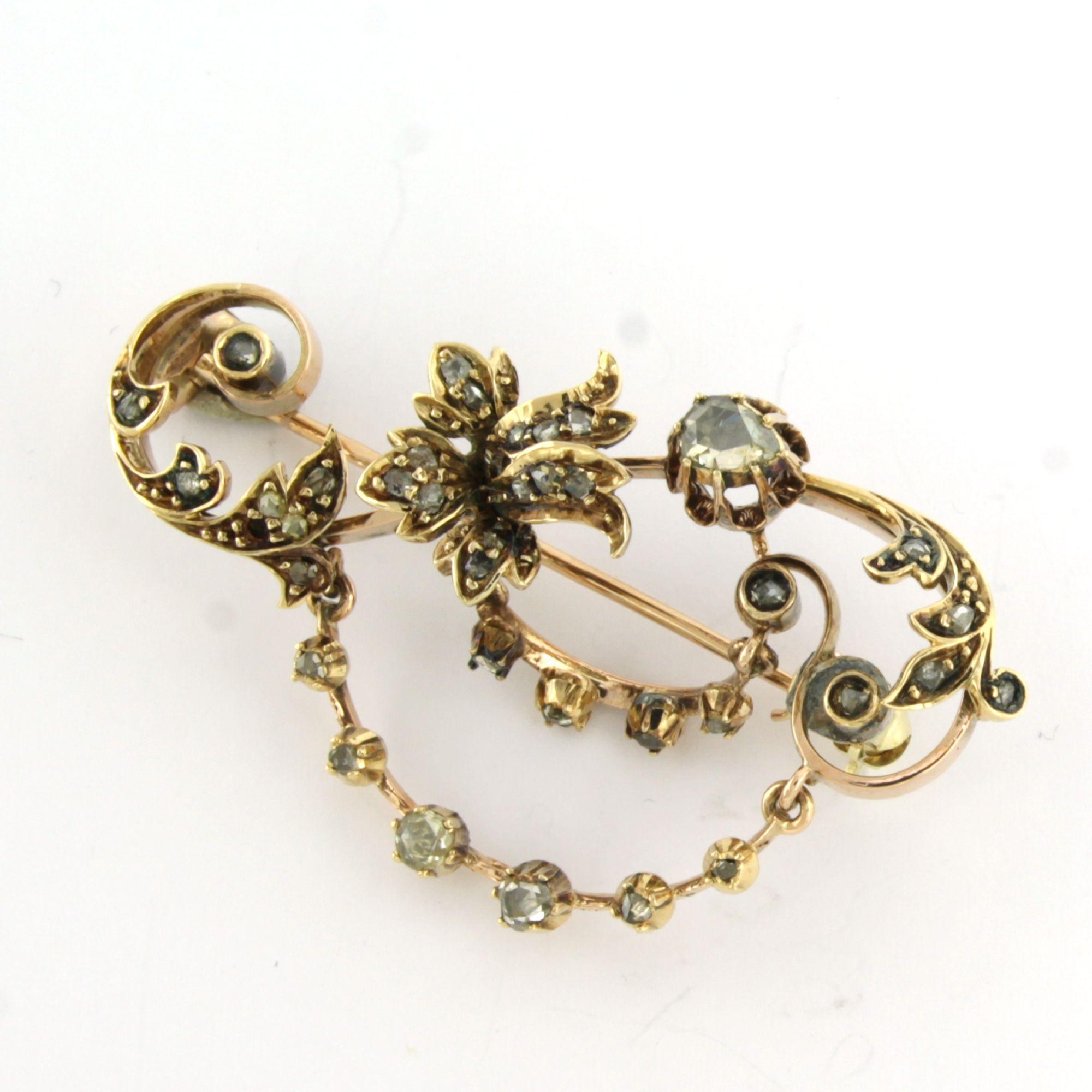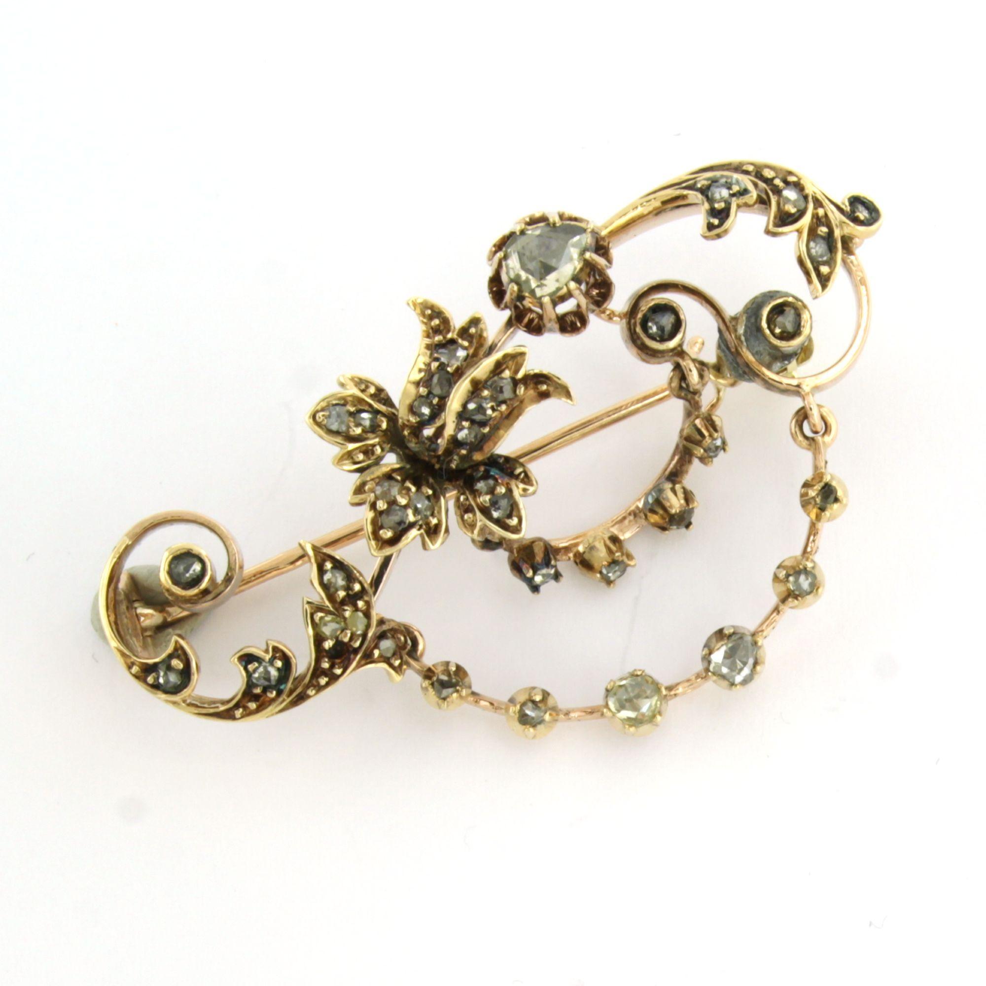 14 Kt. geelgouden broche bezet met roos diamanten tot. 0.50ct