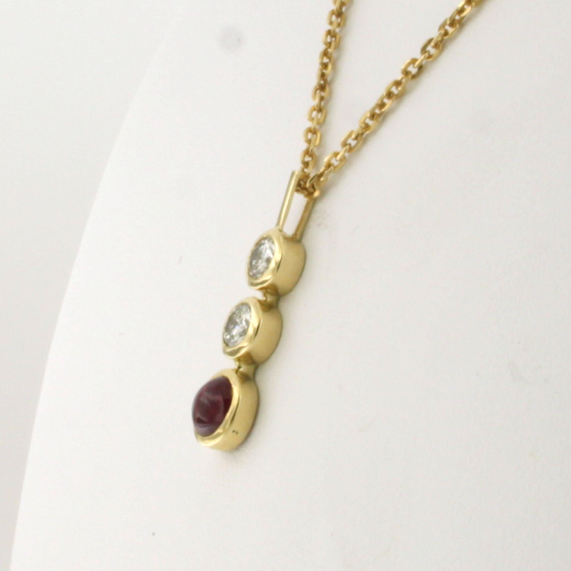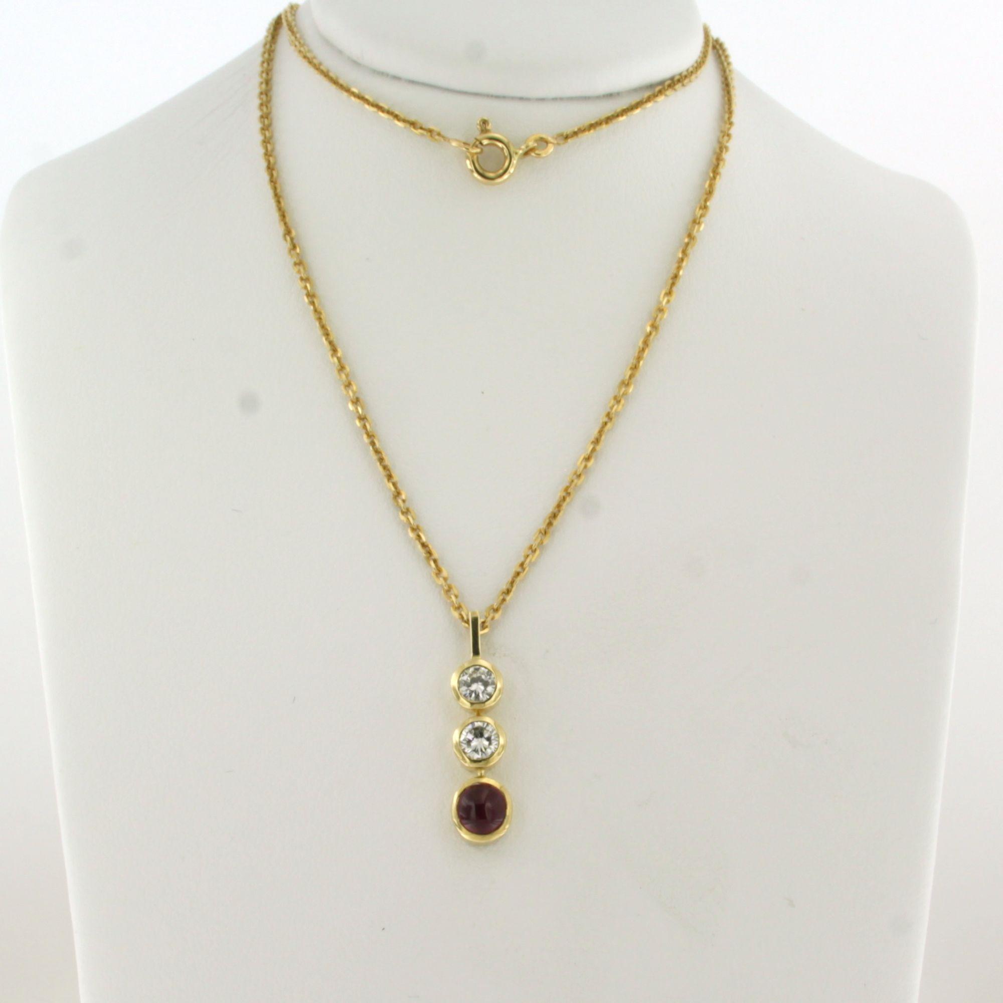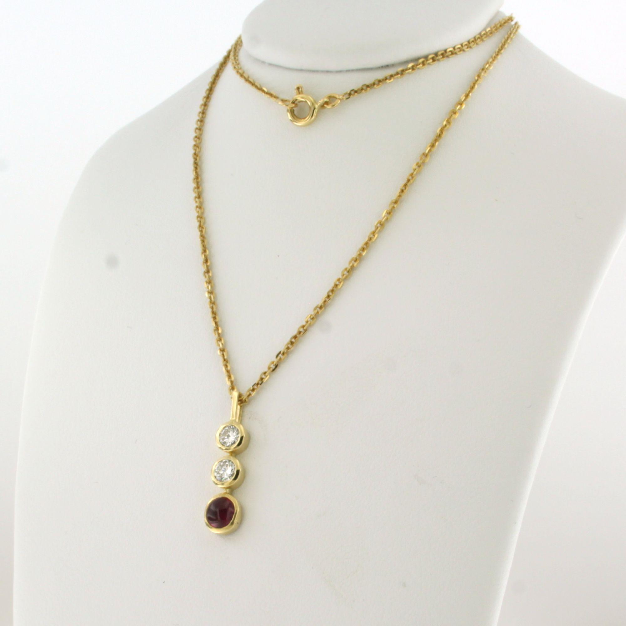 18 Kt. geelgouden collier en hanger bezet met robijn en briljant geslepen diamanten tot. 0.36ct