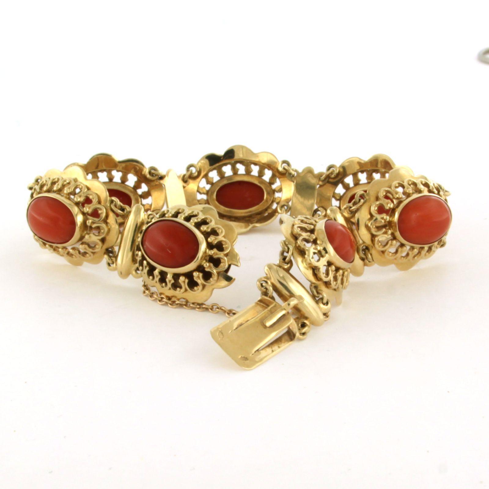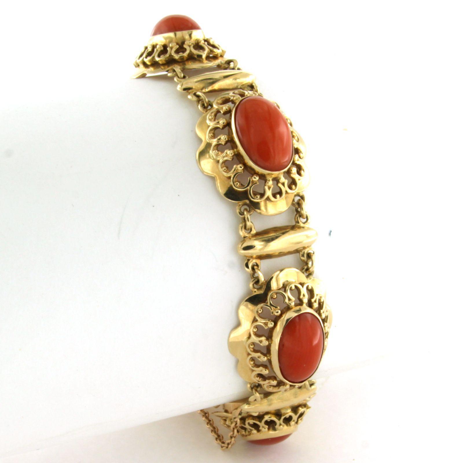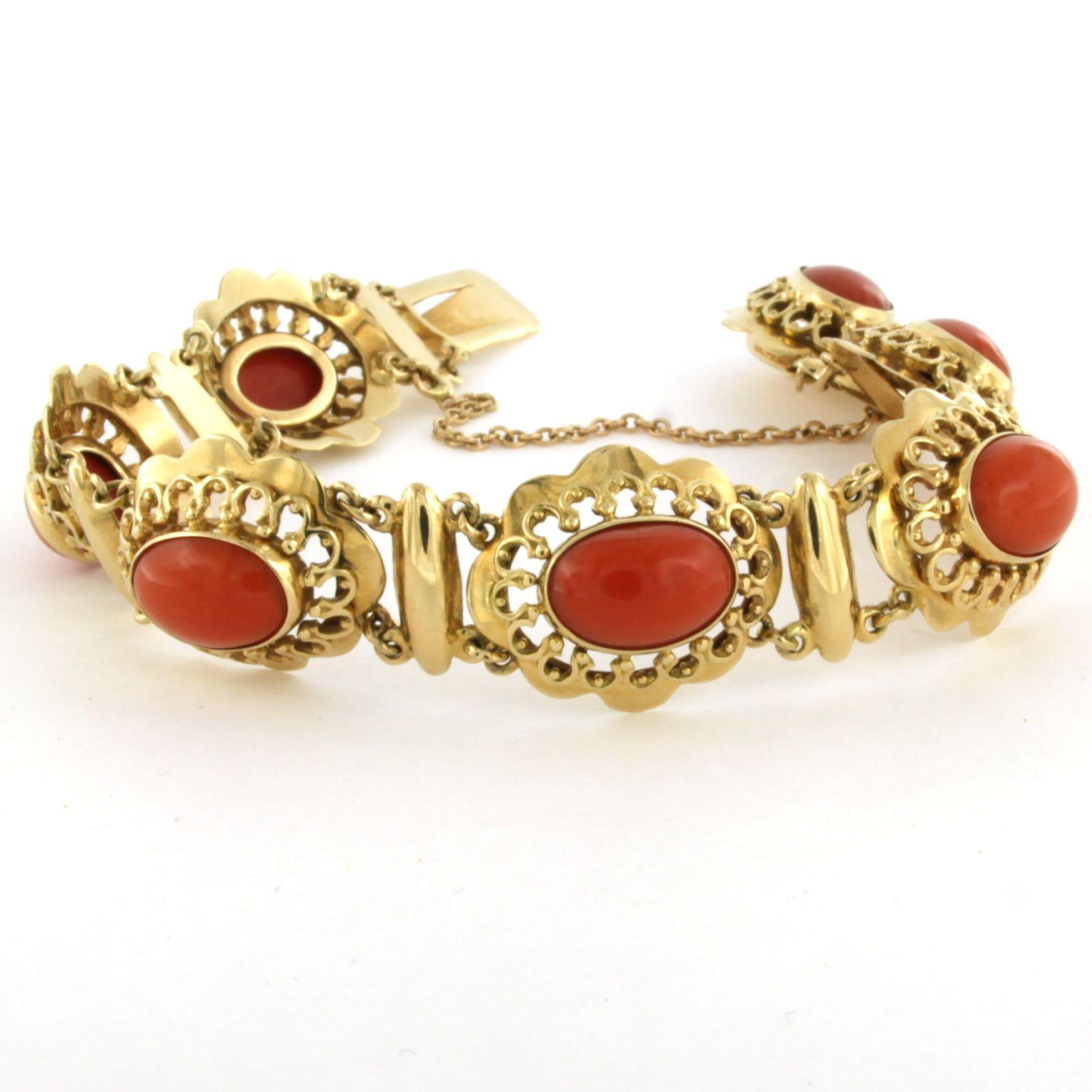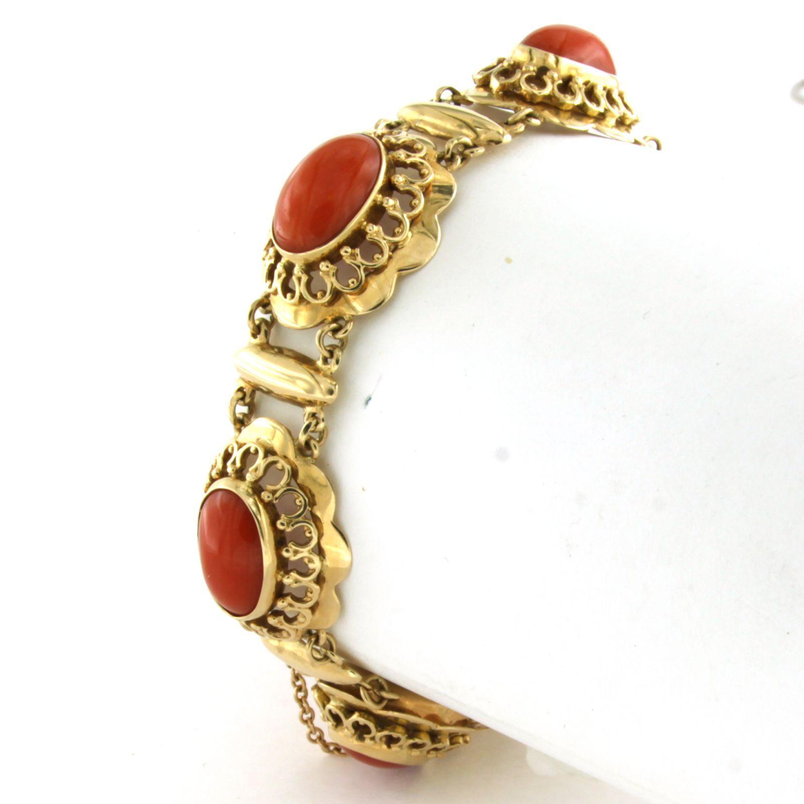 14 Kt. geelgouden schakel armband bezet met koraal