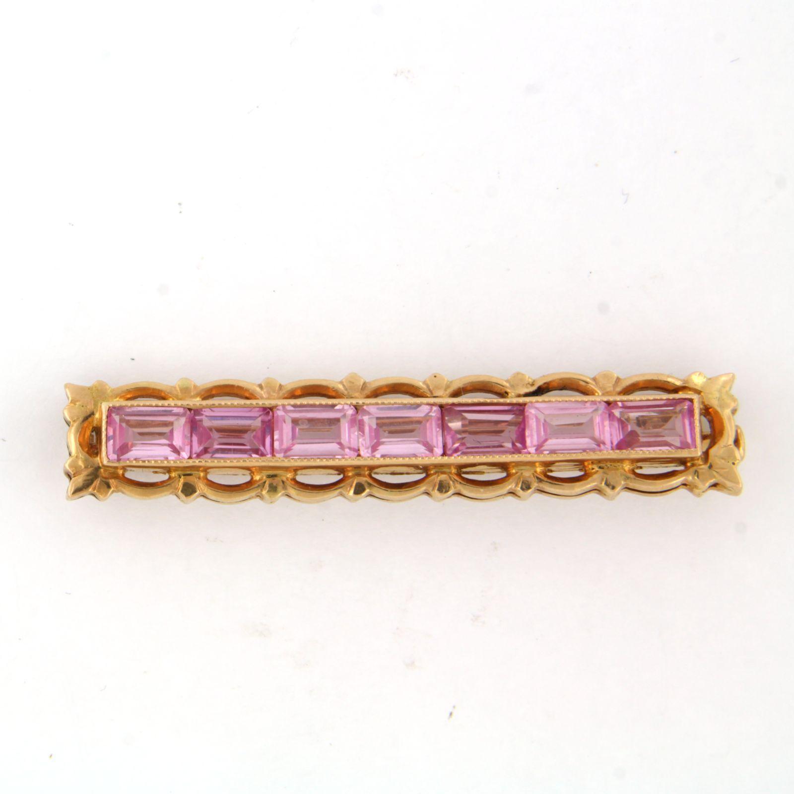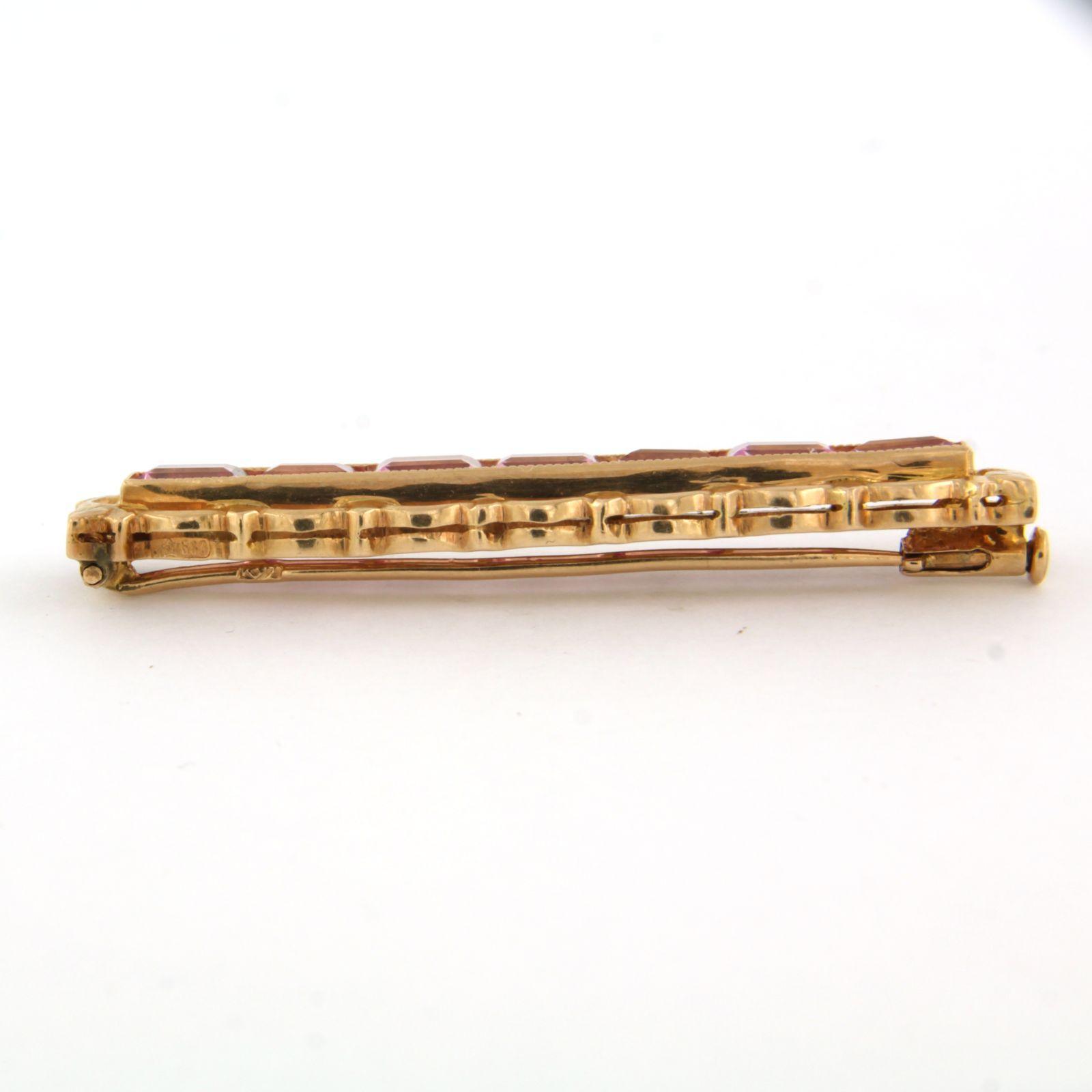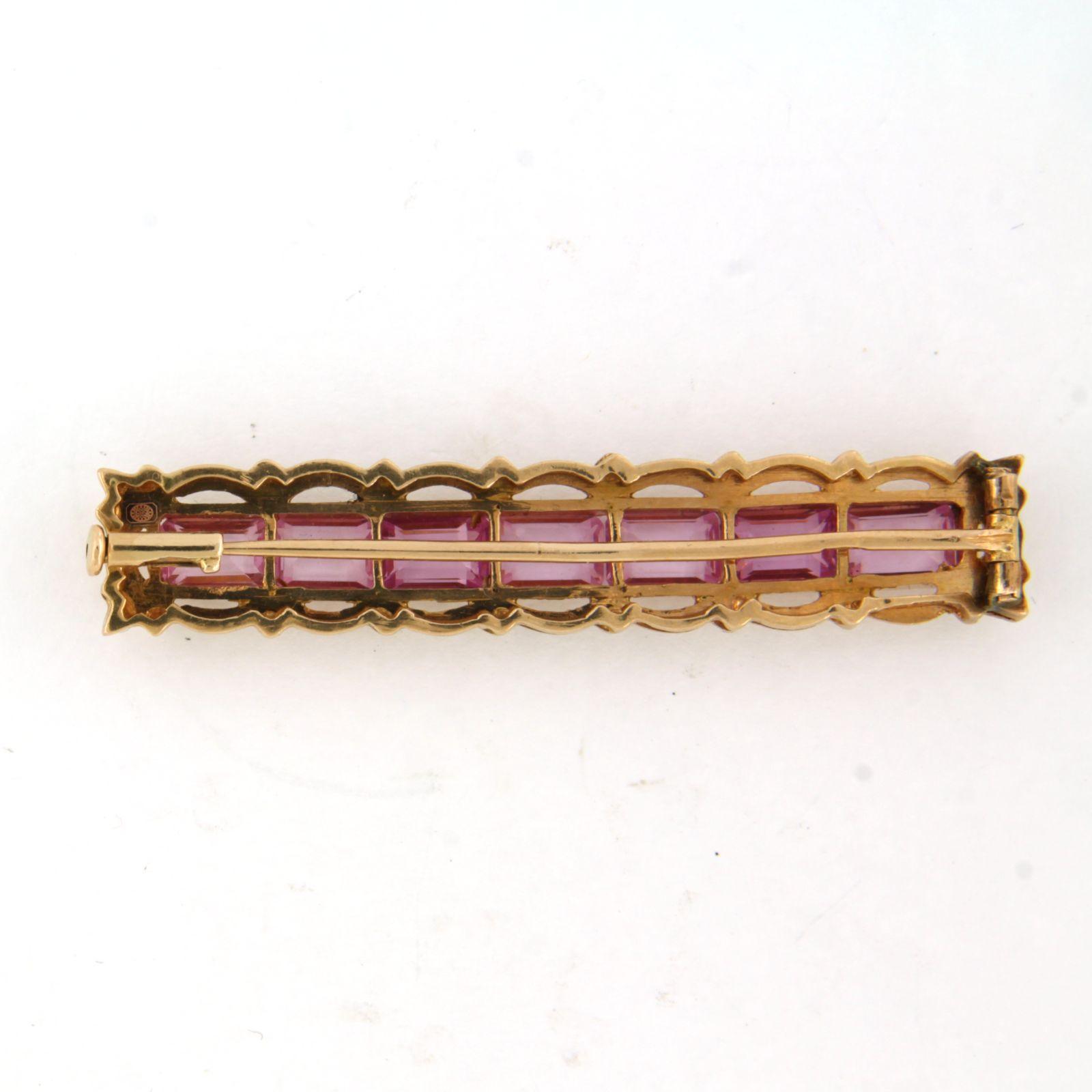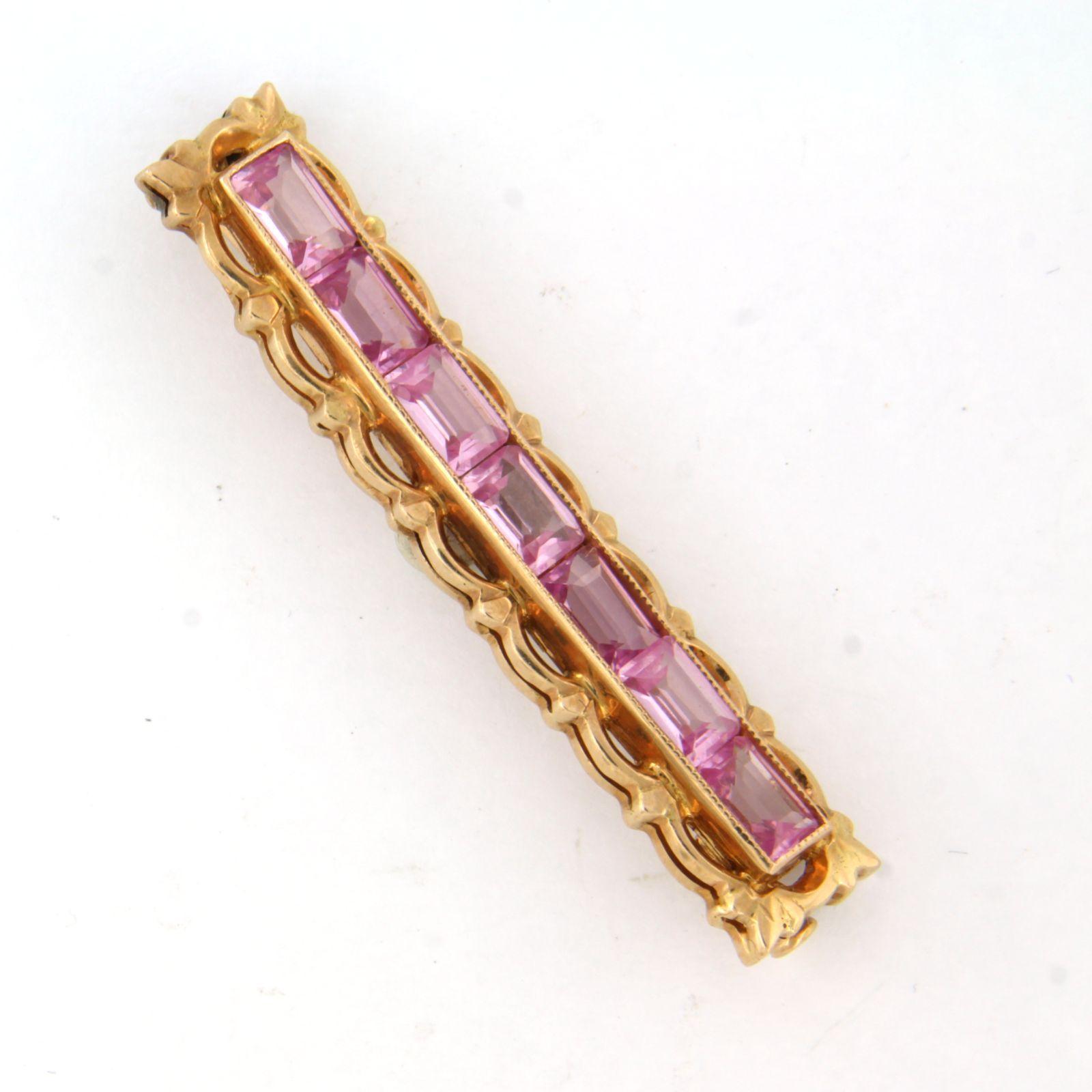 14 Kt. roségouden broche bezet met roze saffier