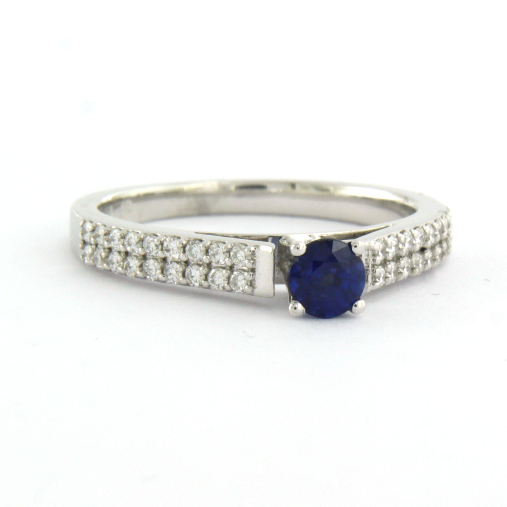 18 Kt. witgouden ring bezet met saffier en briljant geslepen diamant tot. 0.26ct - ringmaat 17.5(55)