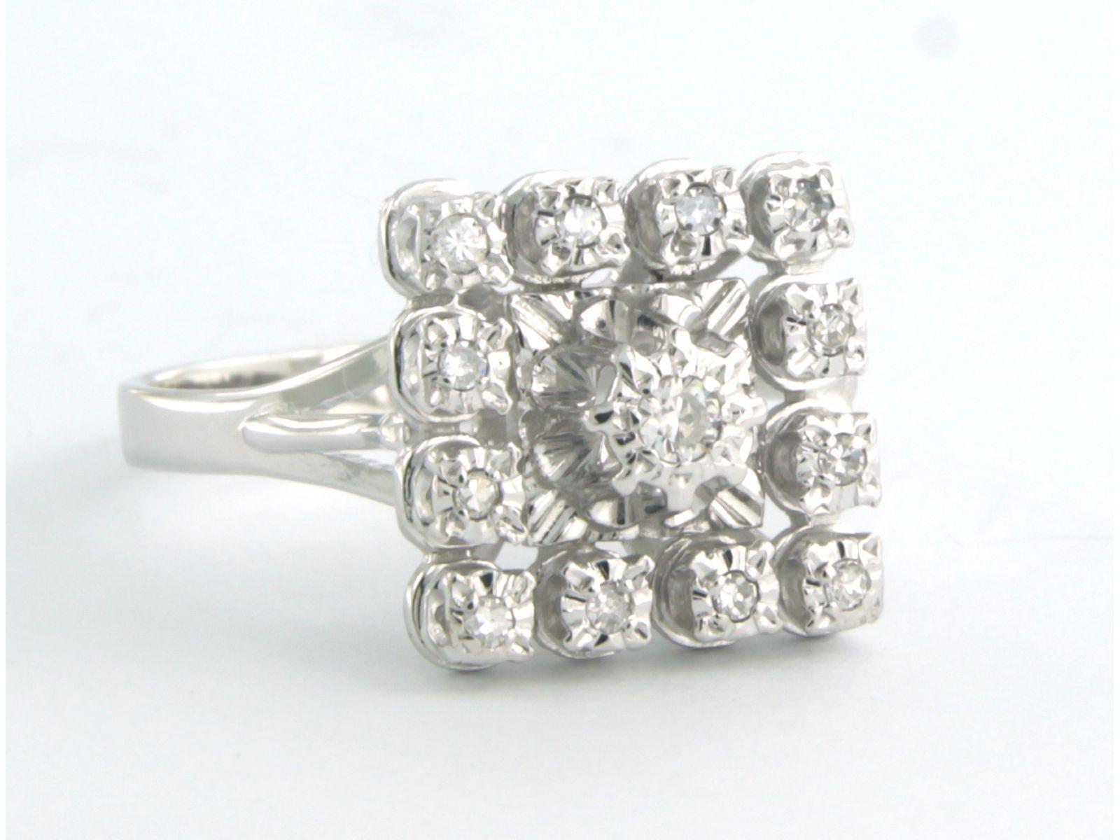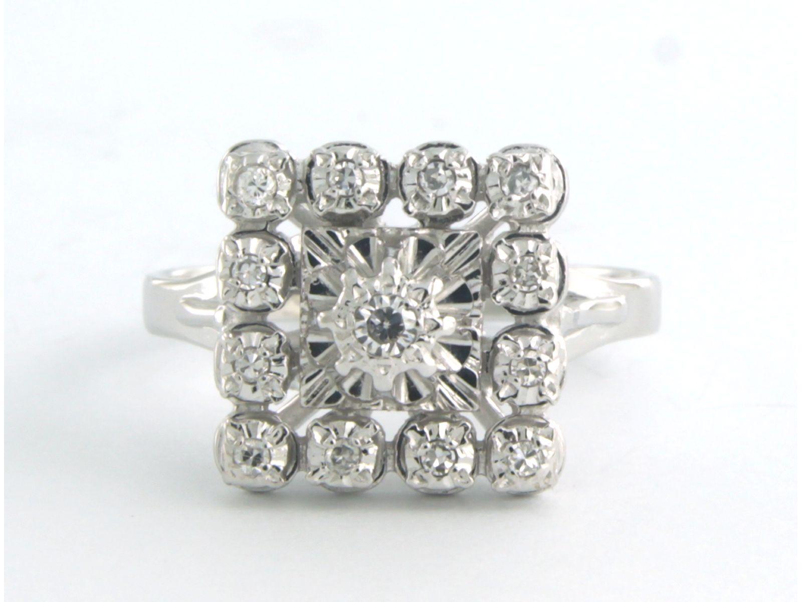 18 Kt. witgouden ring bezet met 8 kant geslepen diamant tot. 0.18ct- ringmaat 18.5(58)