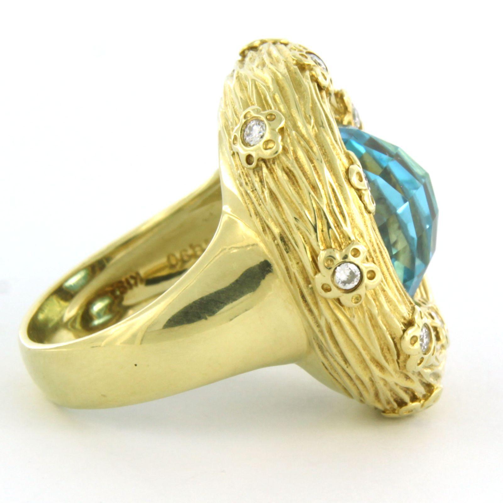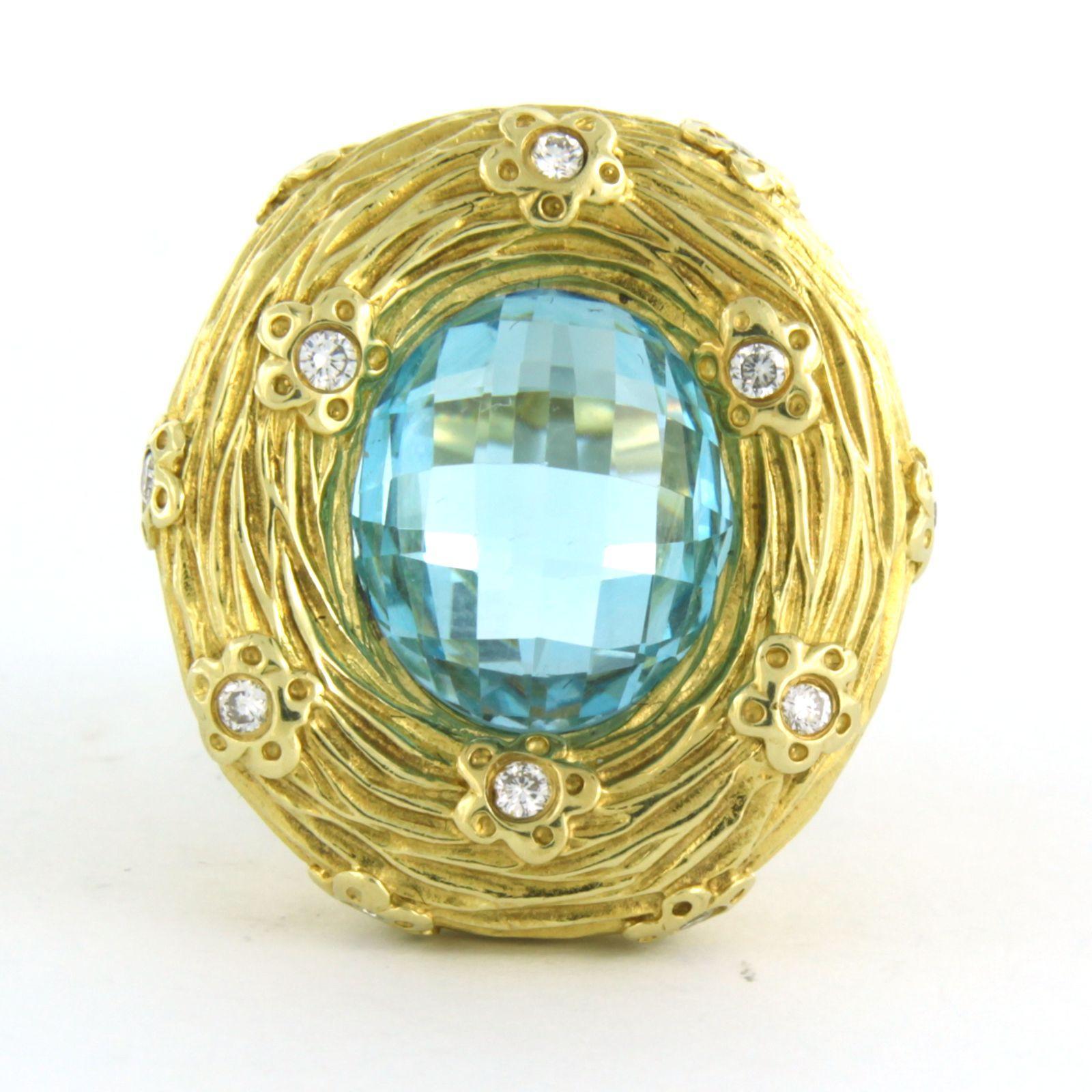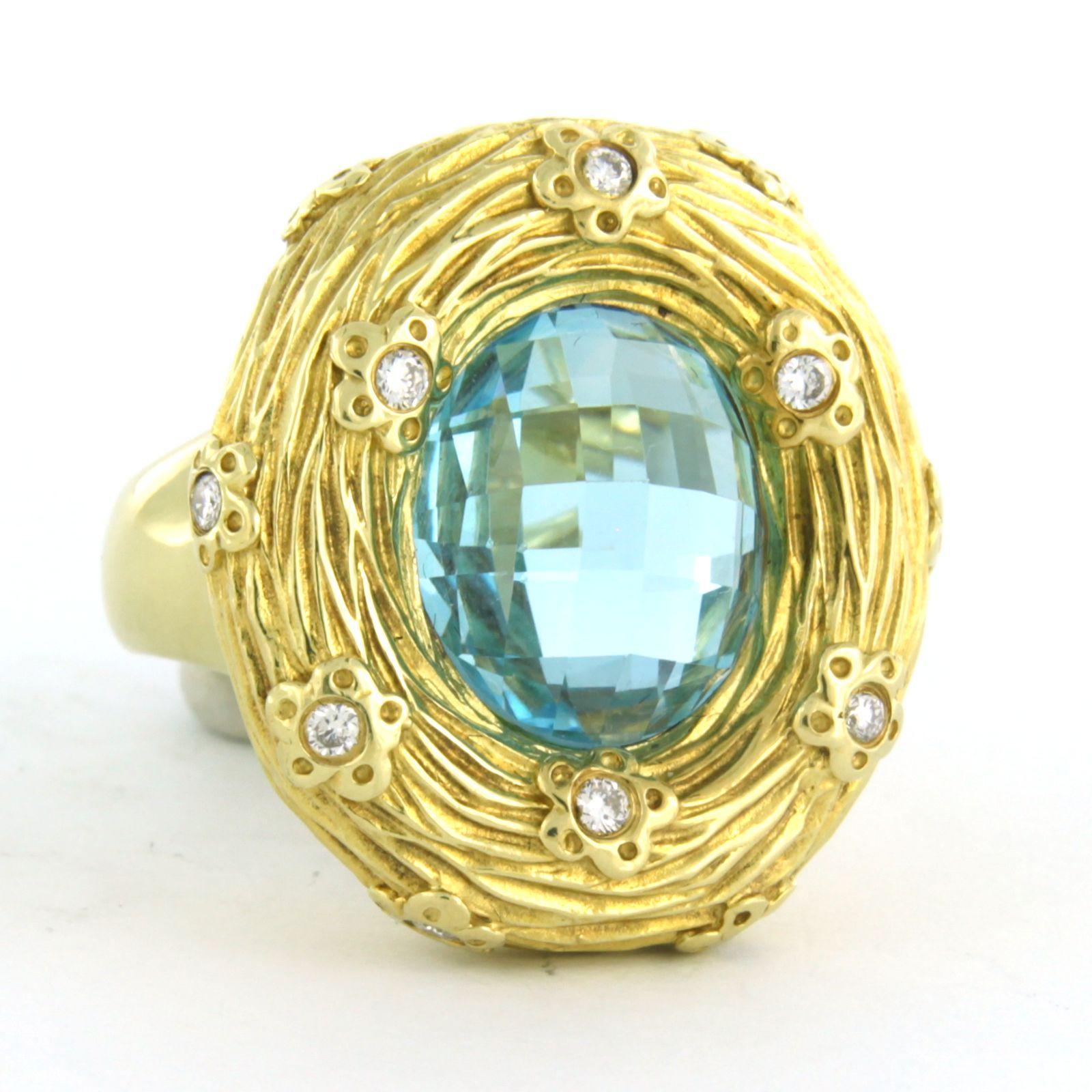 18 Kt. geelgouden ring bezet met topaas 8,90 ct en briljant geslepen diamant 0.22ct - ringmaat 16,5 (52)