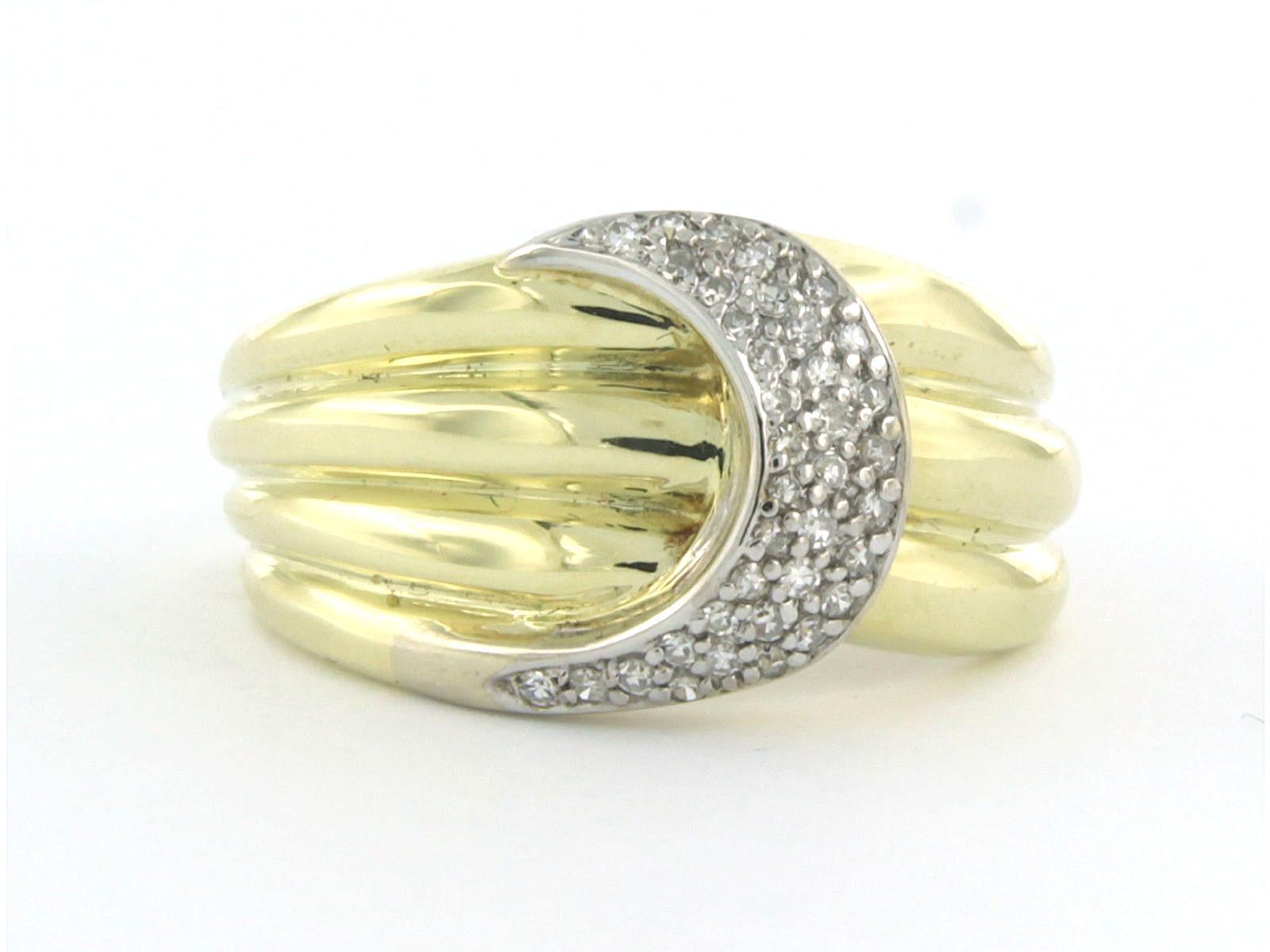 14 Kt. bicolor gouden ring bezet met single cut geslepen diamanten tot. 0,25ct - ringmaat 18(57)