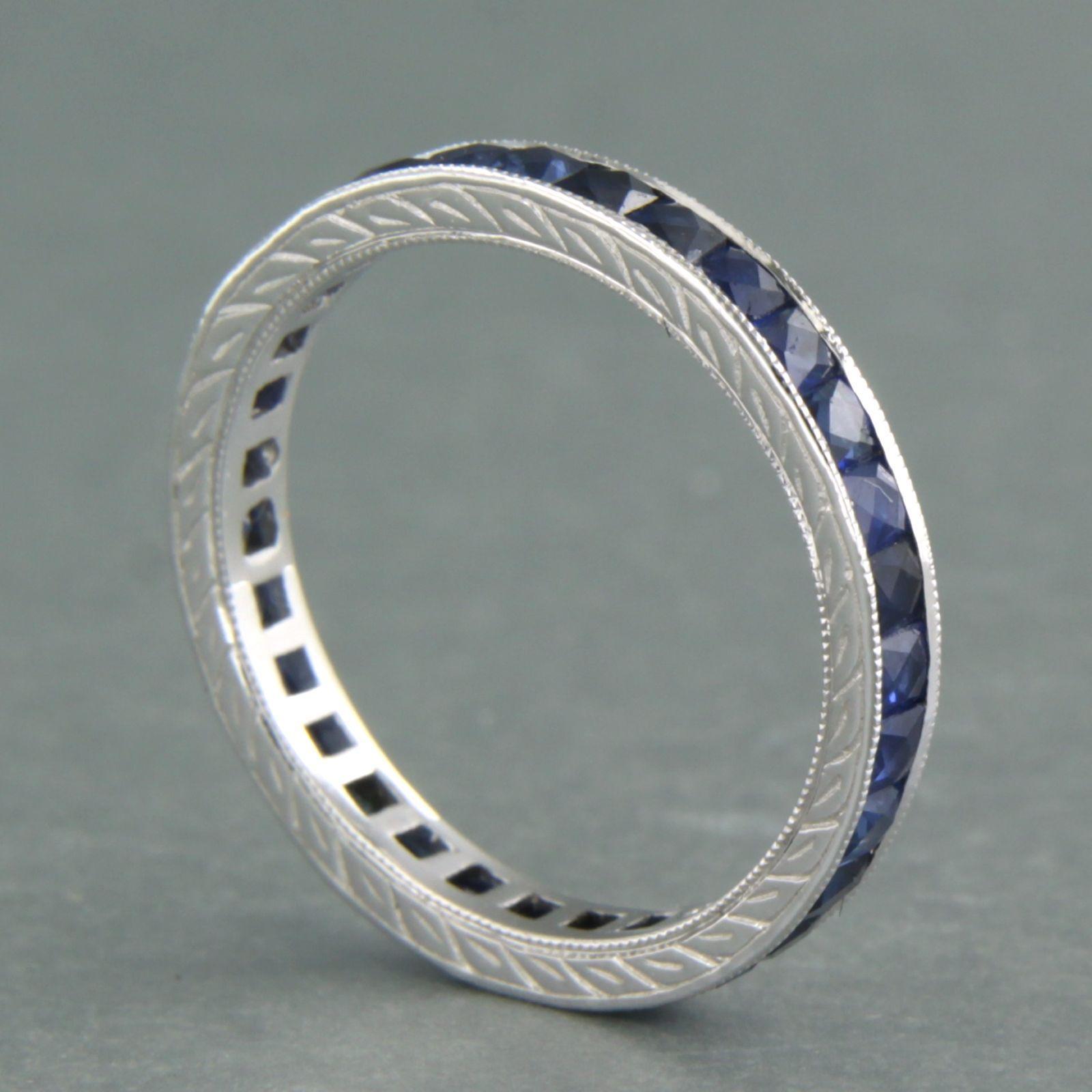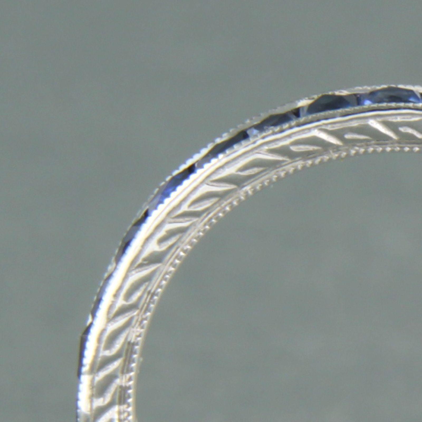 14 Kt. witgouden band ring bezet met saffier tot. 1.65ct - ringmaat 17.75(56)