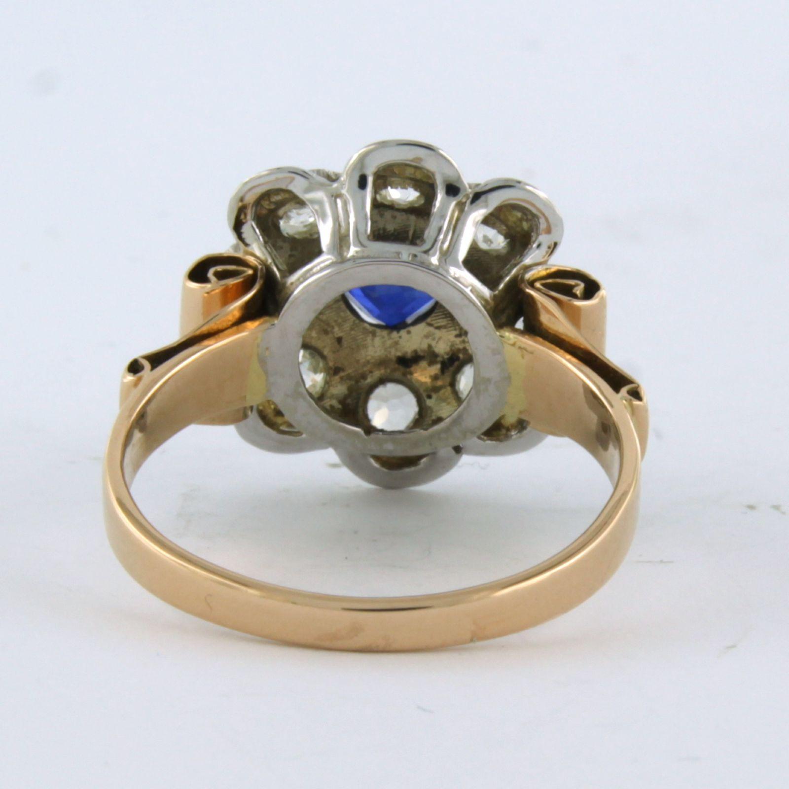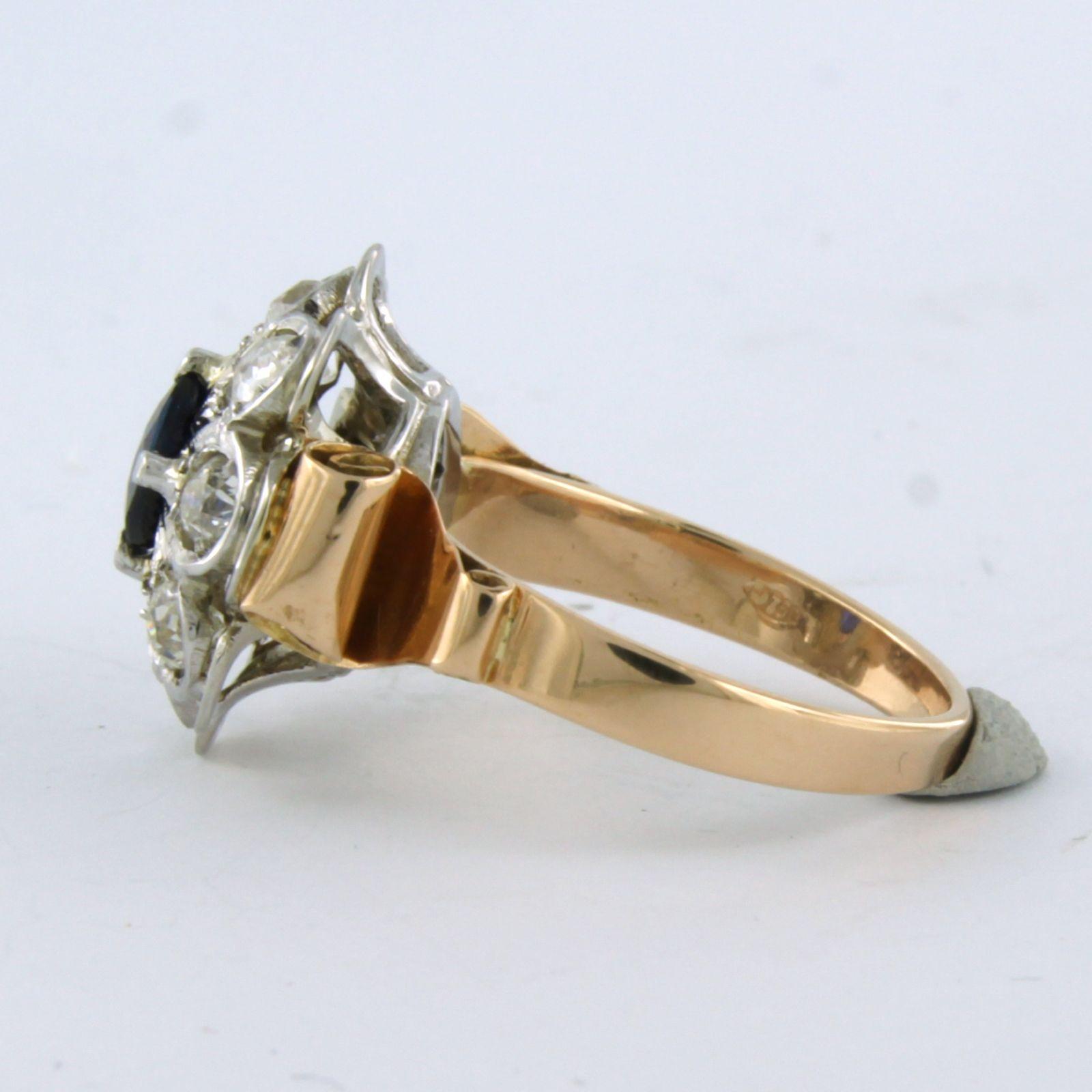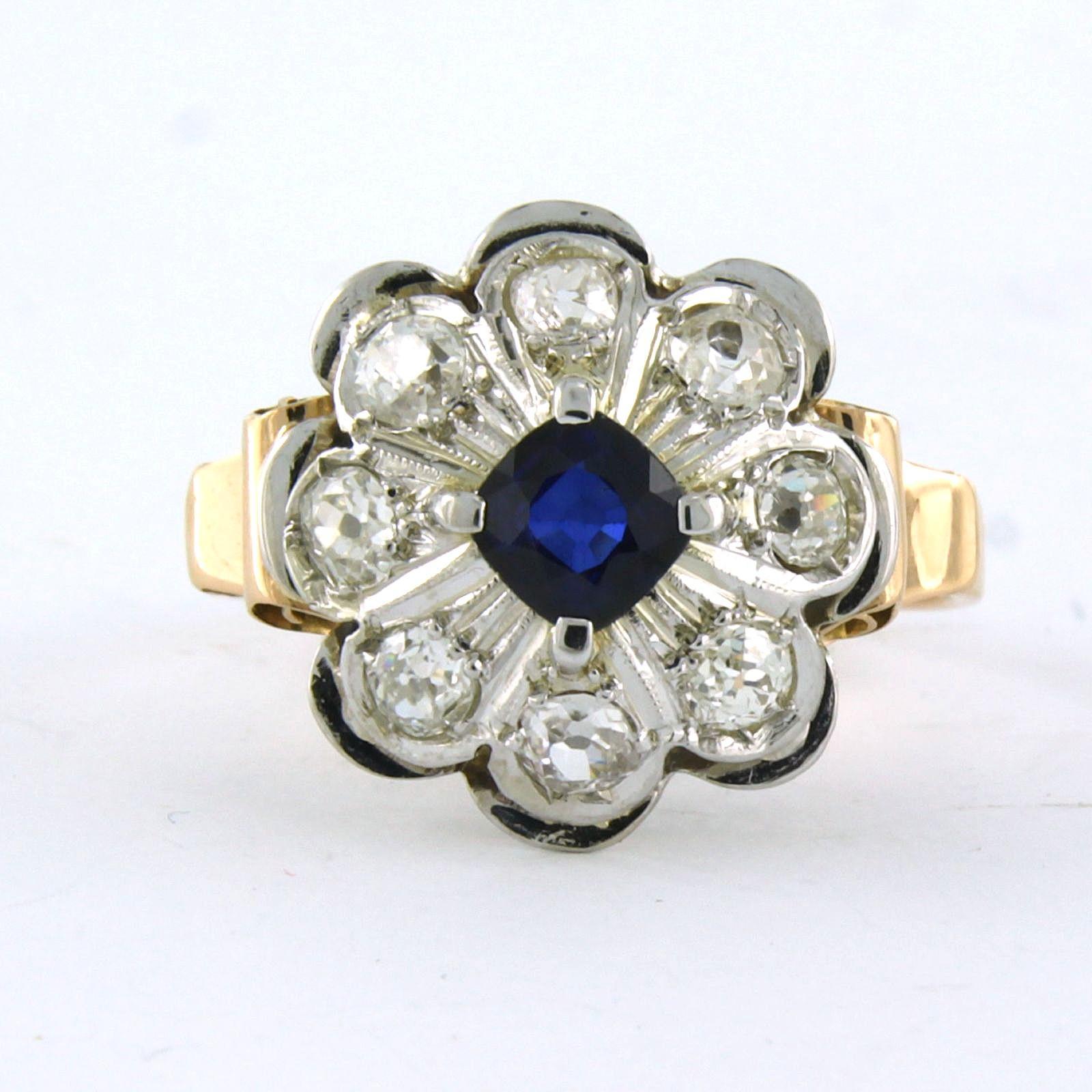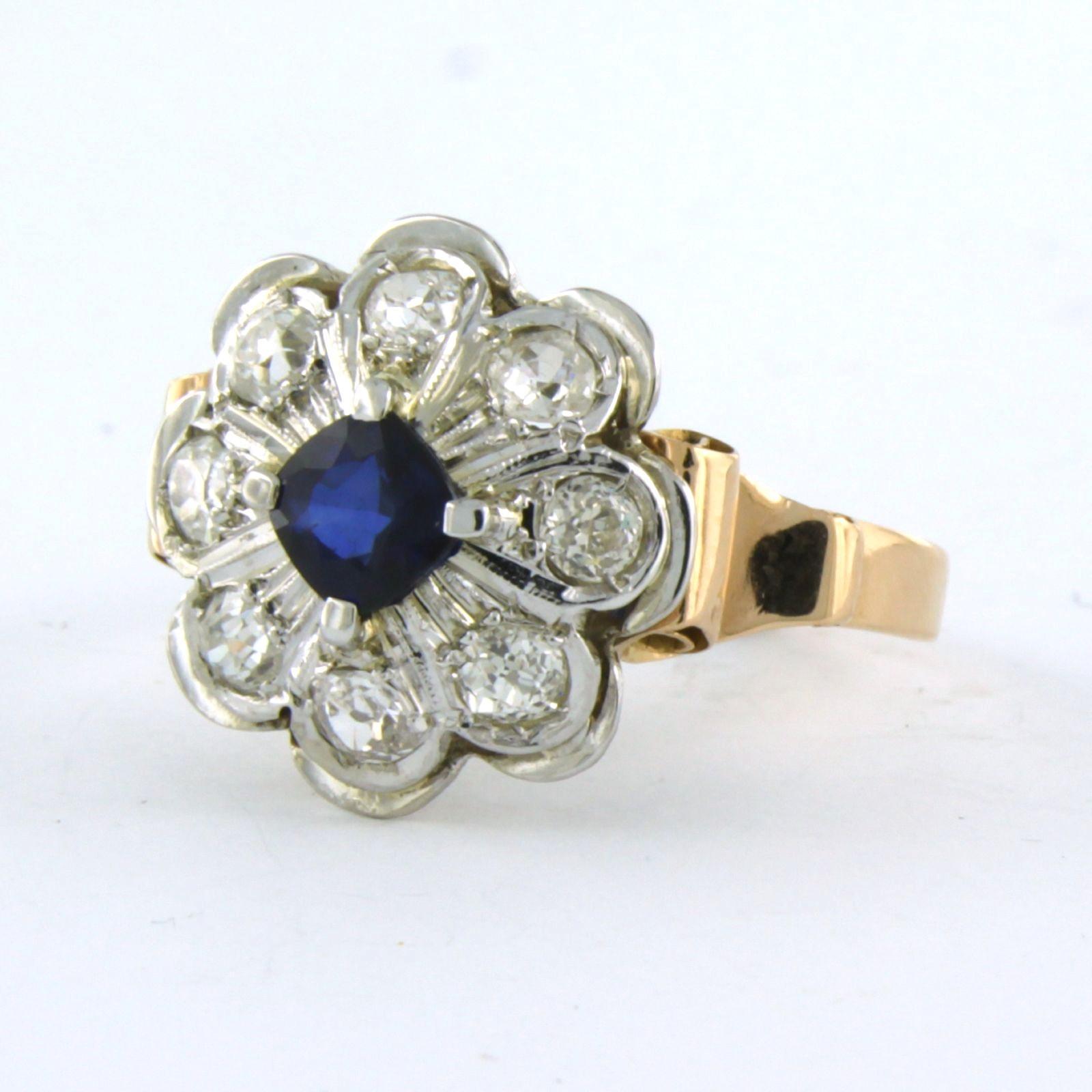 18 Kt. bicolour gouden ring bezet met saffier 0.75ct en Bolsjewiek geslepen diamant 1,45ct - ringmaat 18,5 (58)