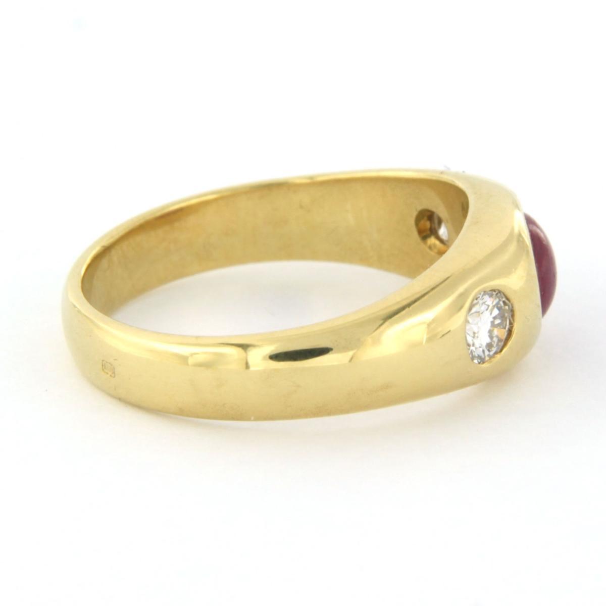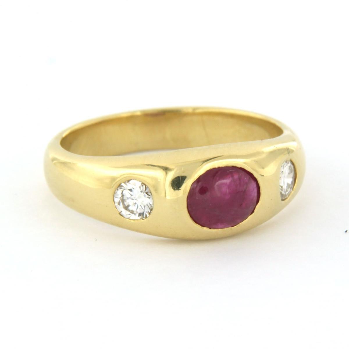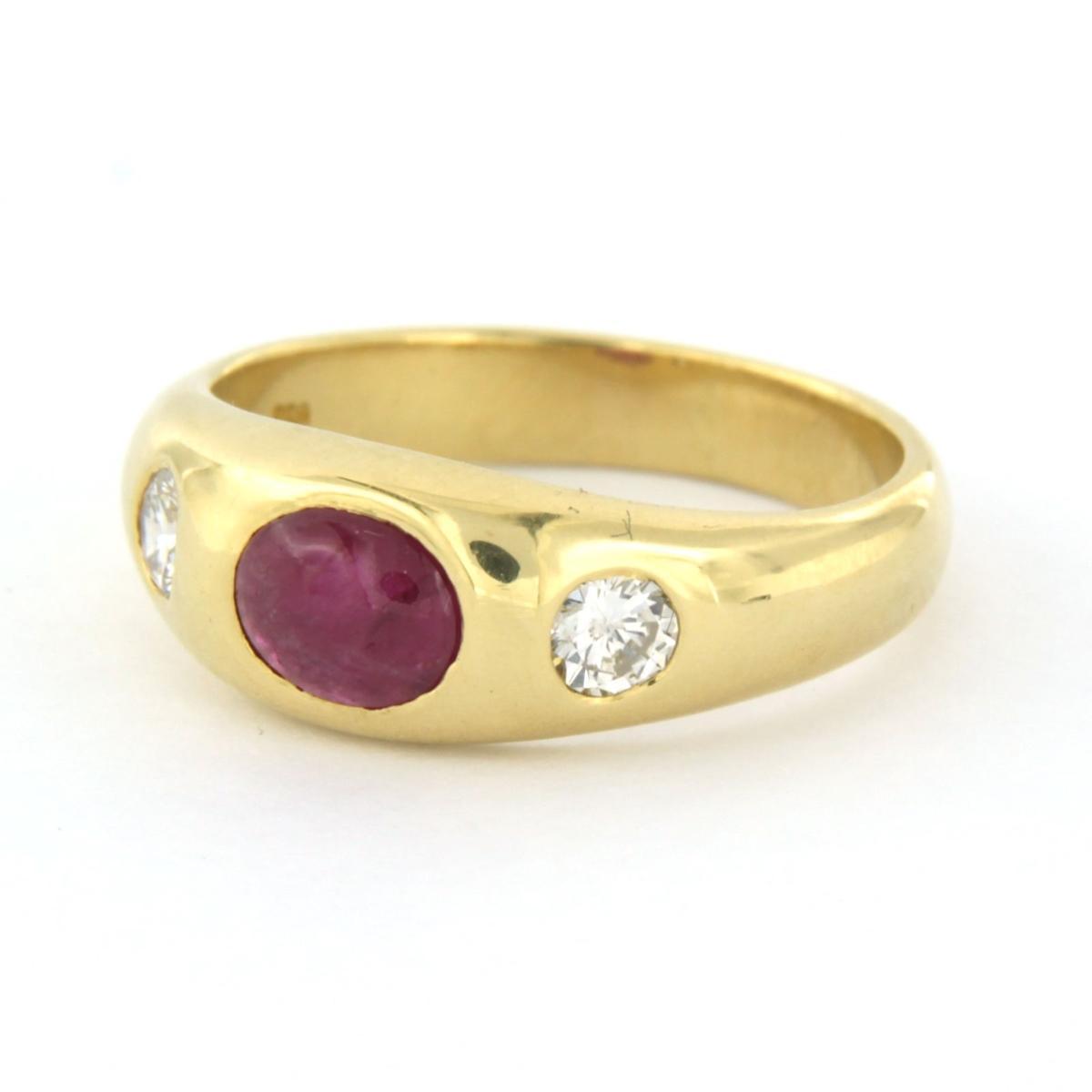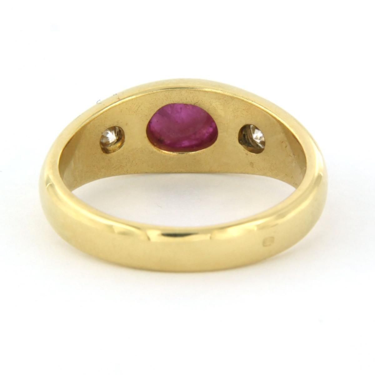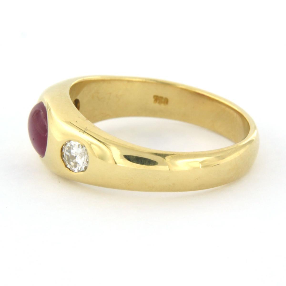 18 Kt. geelgouden ring bezet met robijn en briljant geslepen diamant tot. 0.20ct - ringmaat 16.5(52)