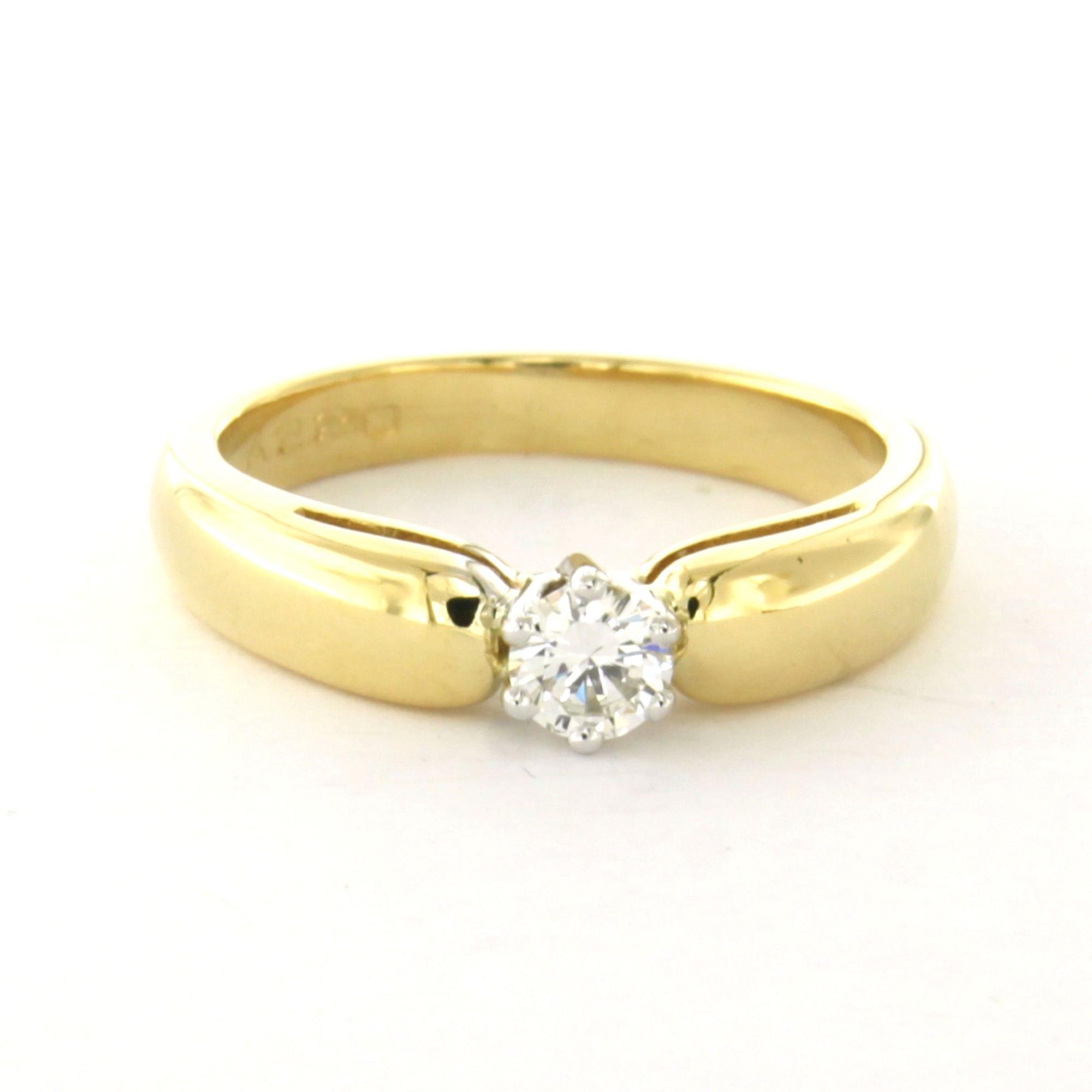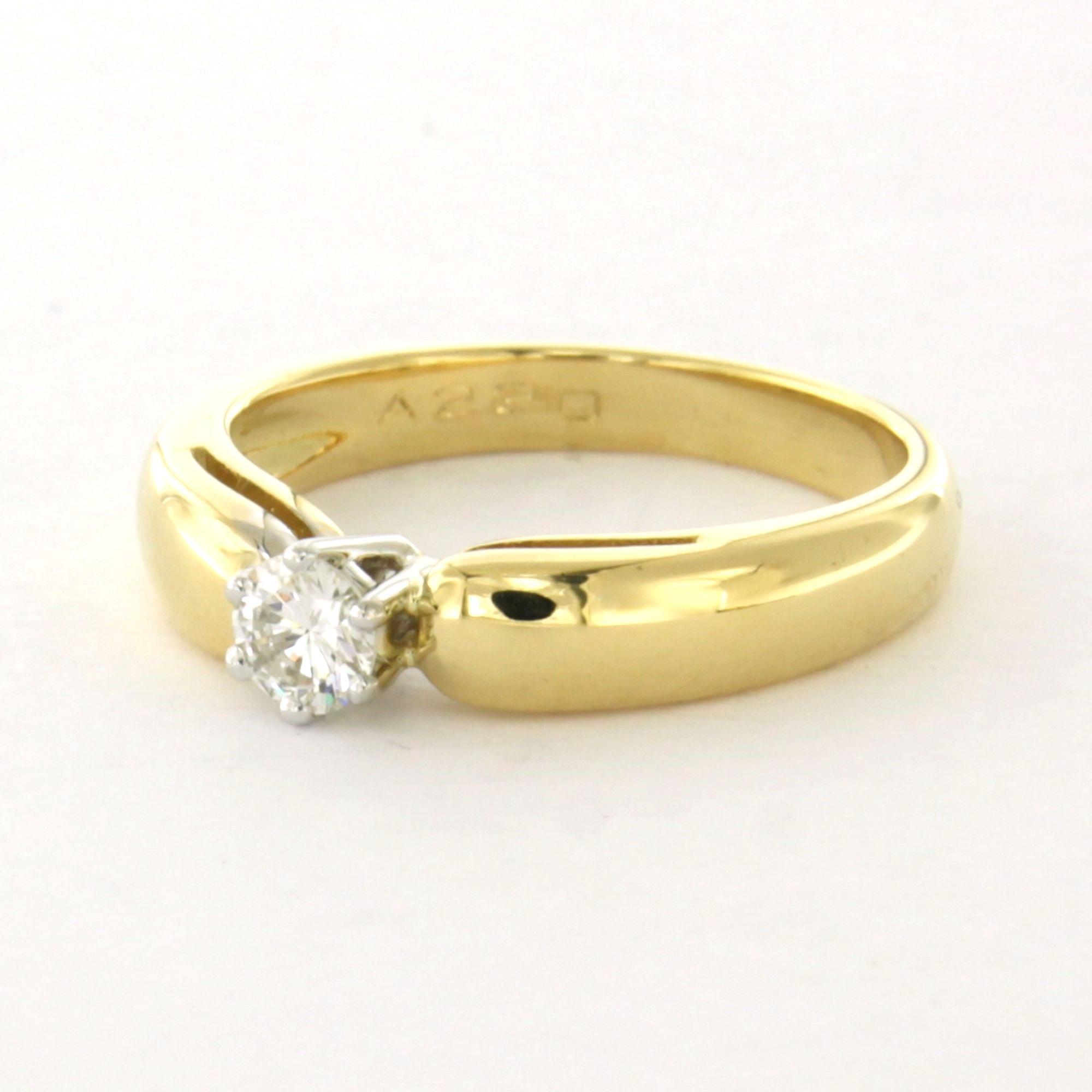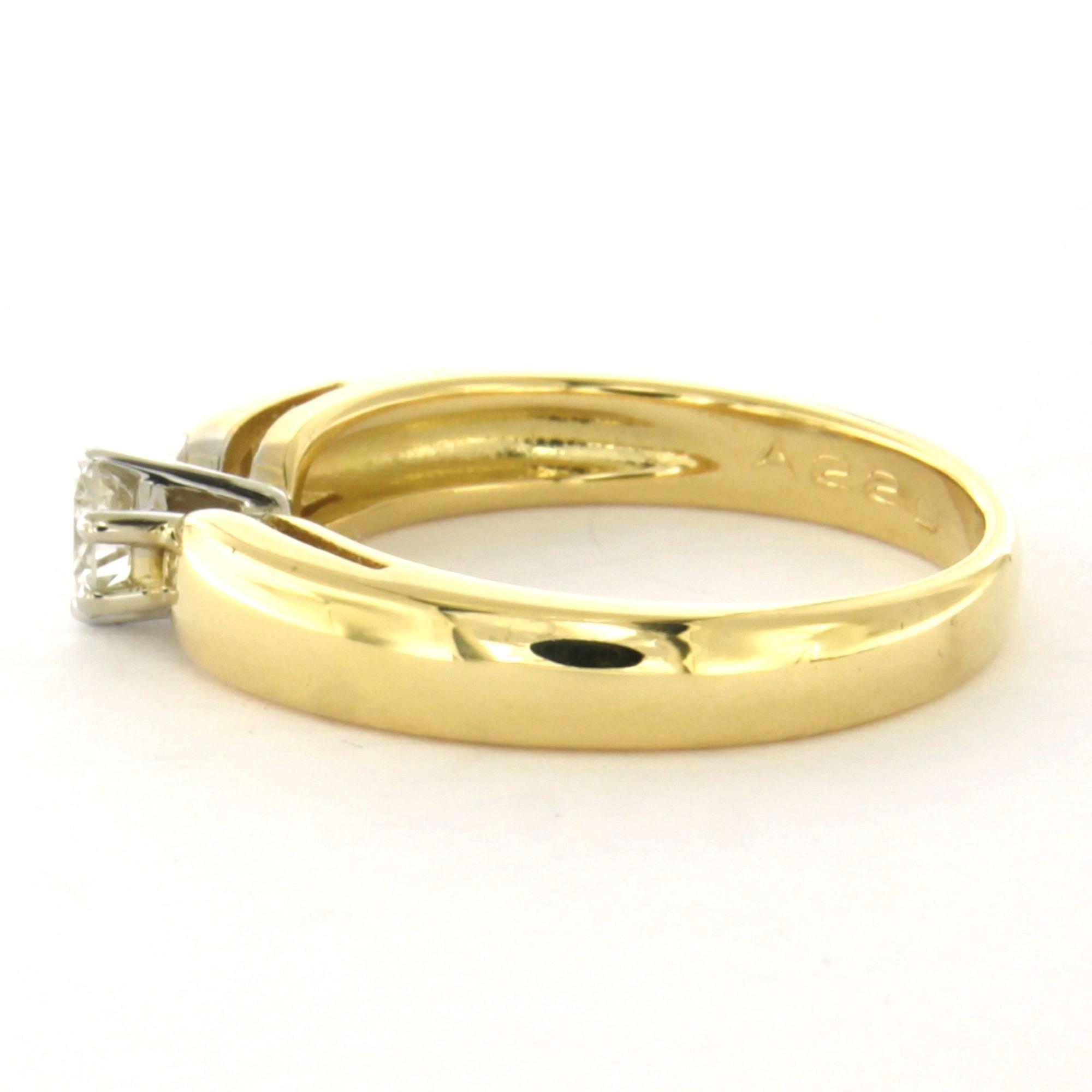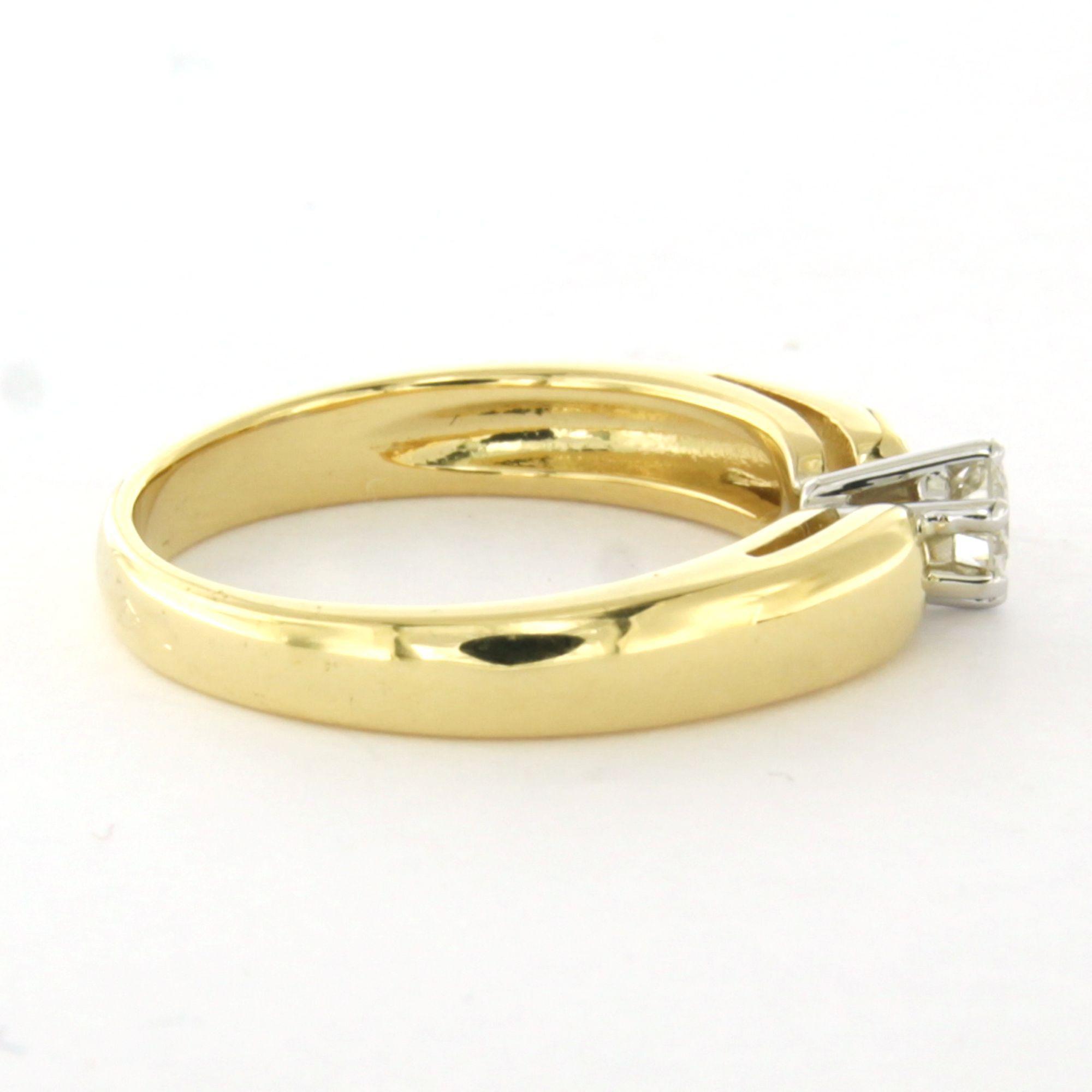 18 Kt. bicolour gouden solitair ring met briljant geslepen diamant tot. 0.22ct – ringmaat 16.5(52)