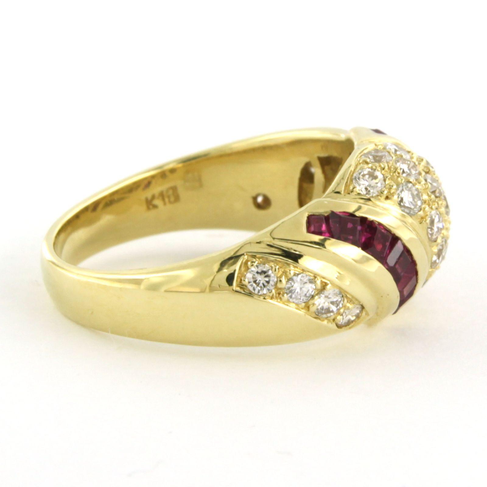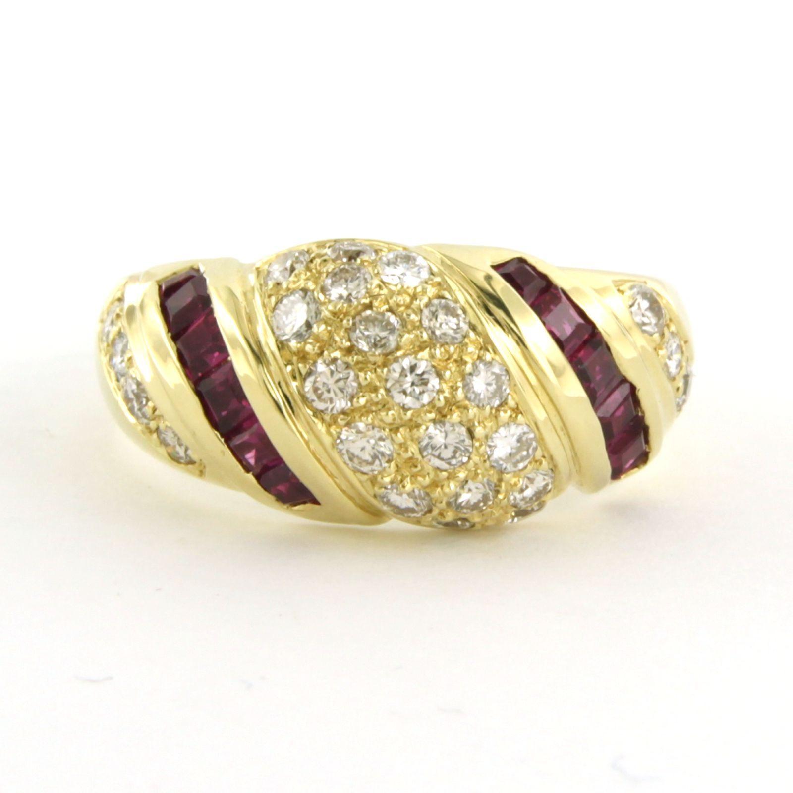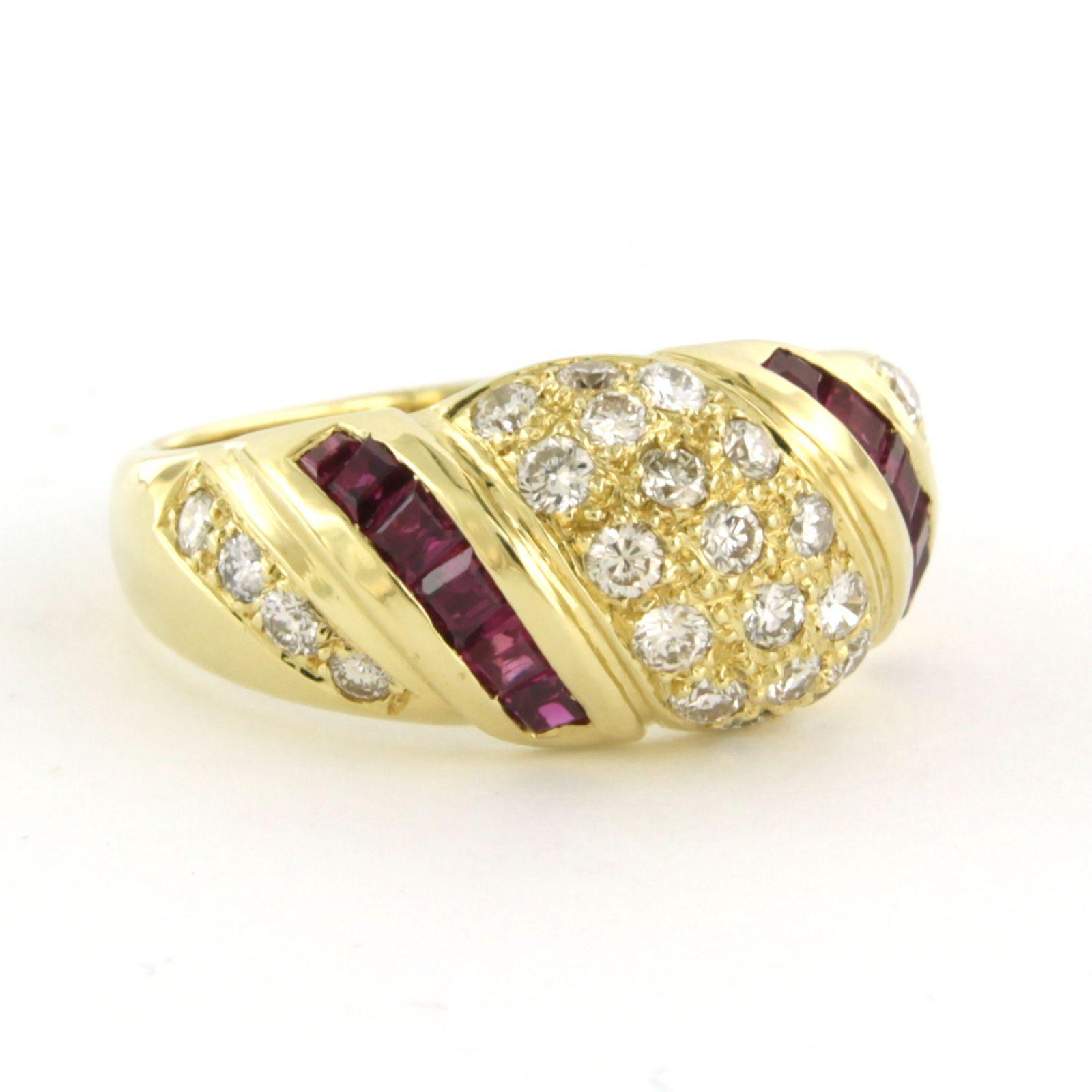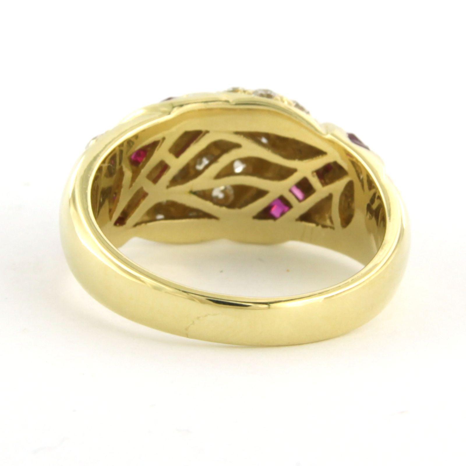 18 Kt. geelgouden ring bezet met robijn en briljant geslepen diamant tot. 0.80ct