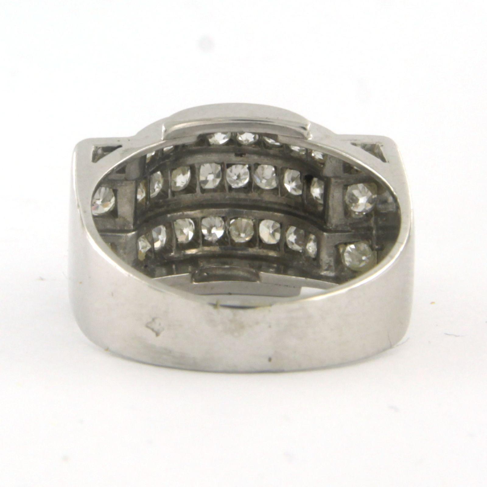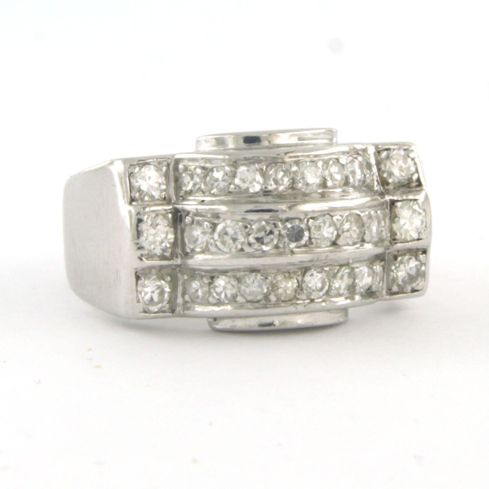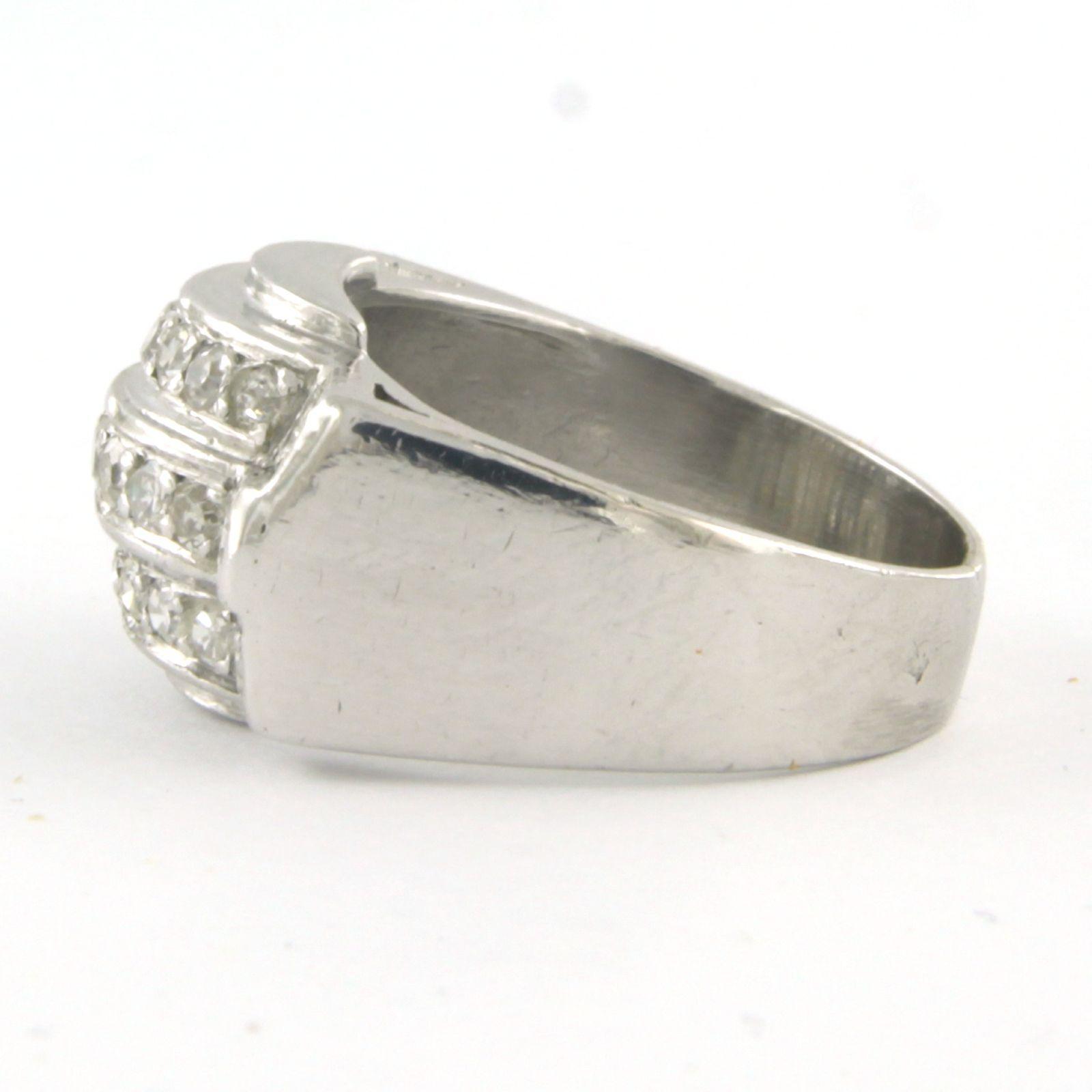 Tank model platina ring bezet met single cut geslepen diamanten tot.0.80ct - ringmaat 16(50)