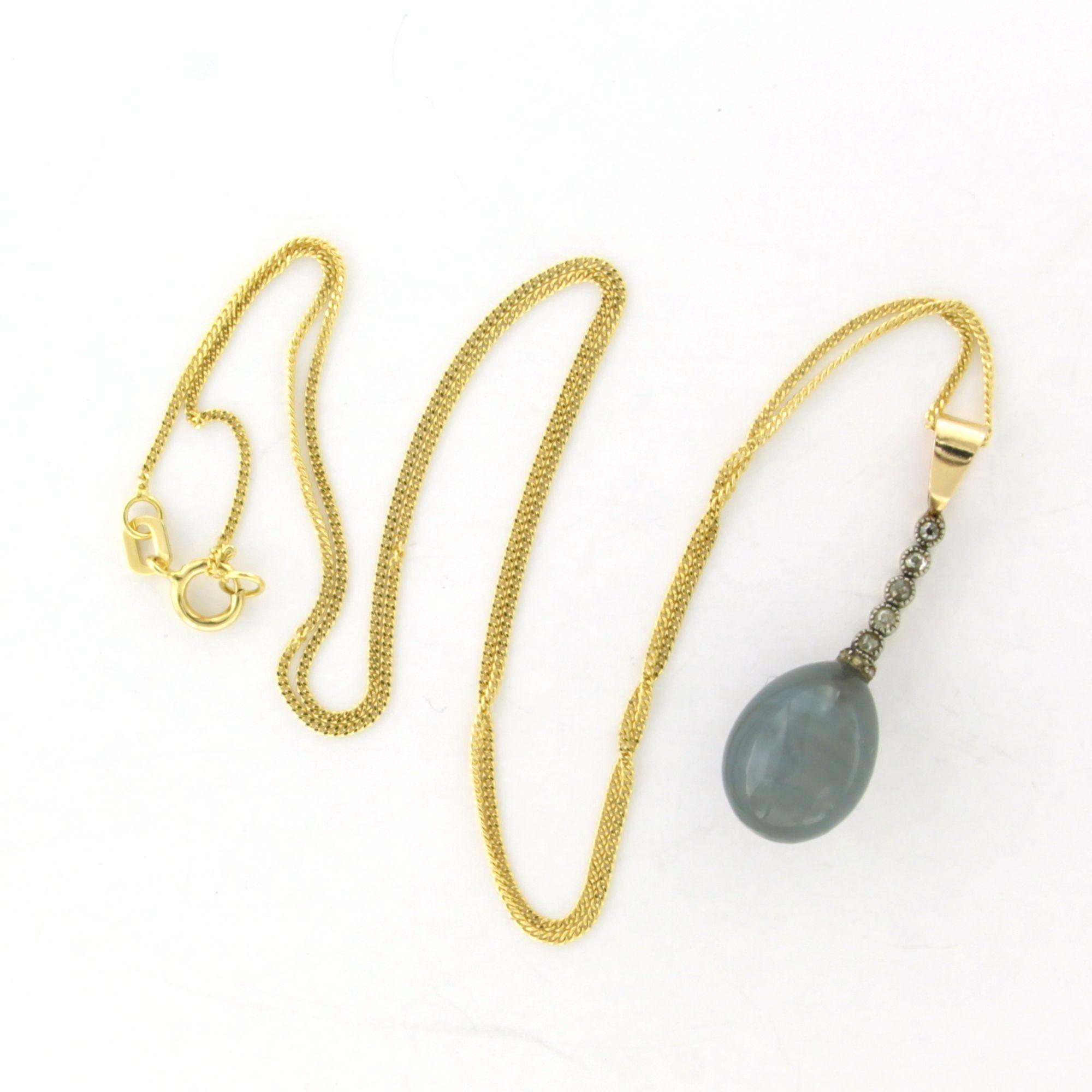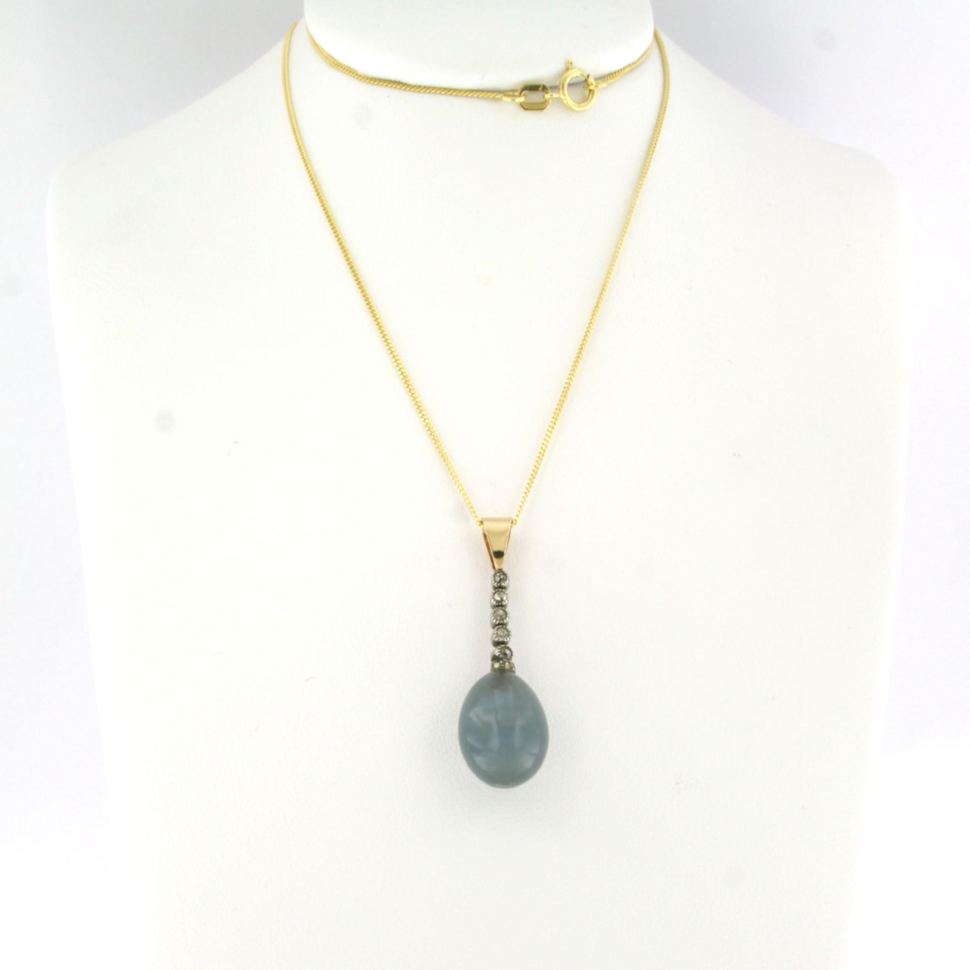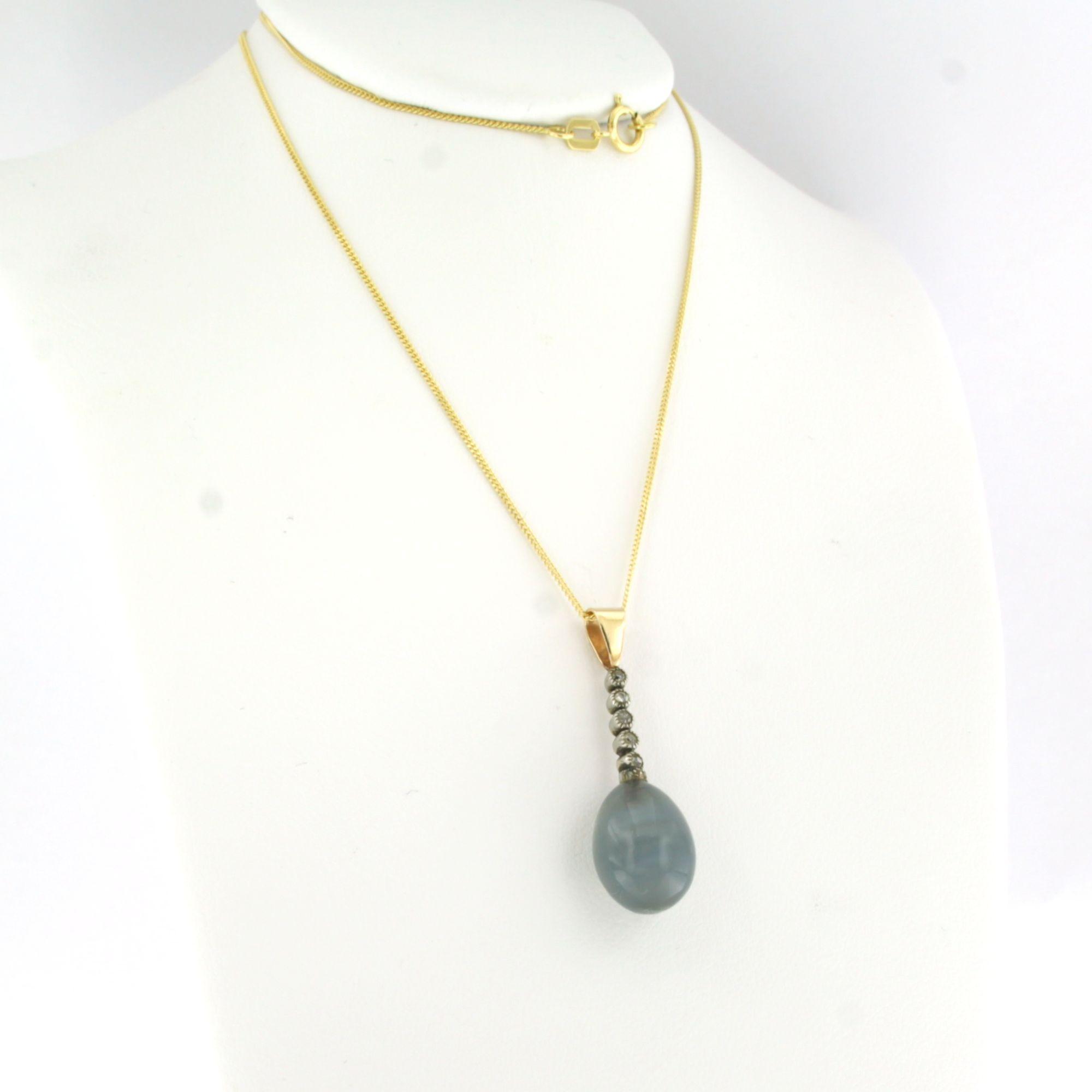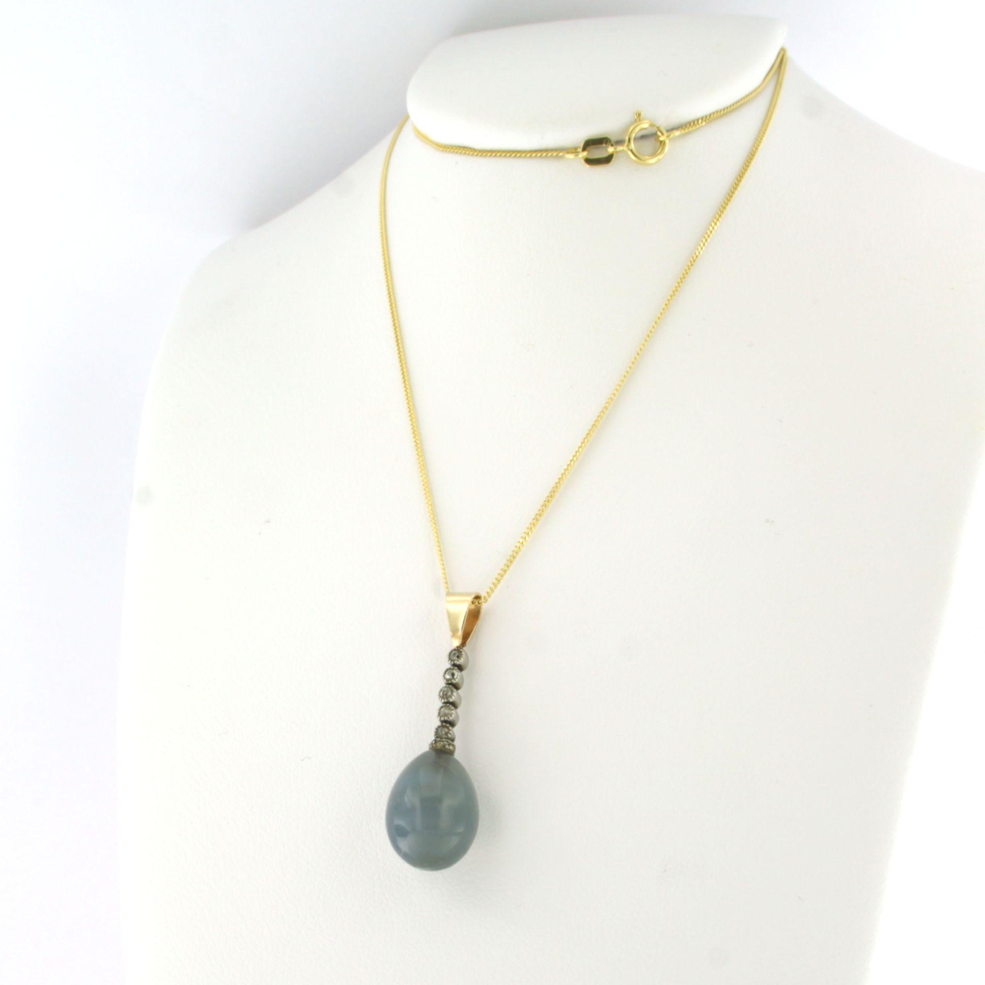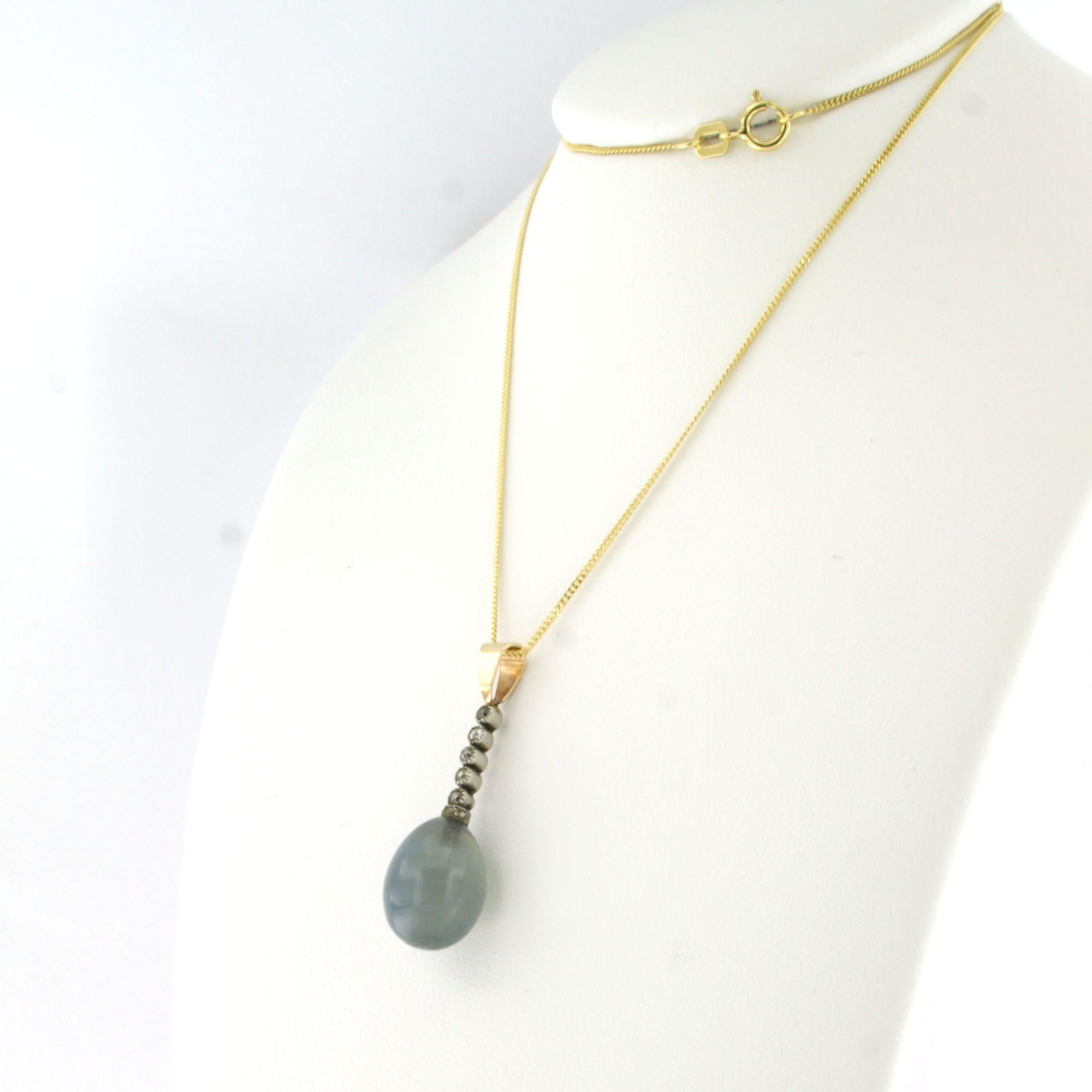 14 Kt. geelgouden collier met goud met platina hanger bezet met een blauw-grijze quartz en oud slijpsel geslepen diamanten totaal circa 0.20ct - 45 cm lang