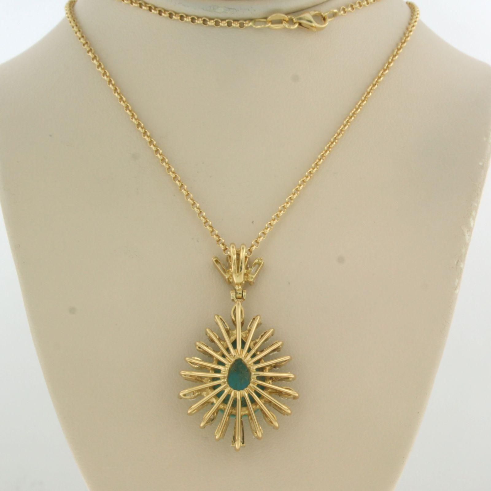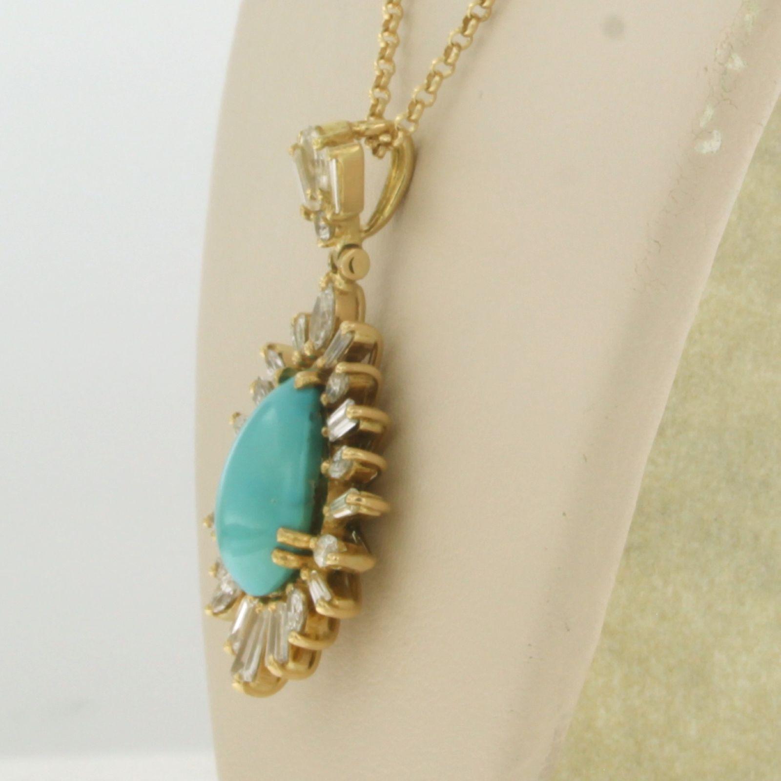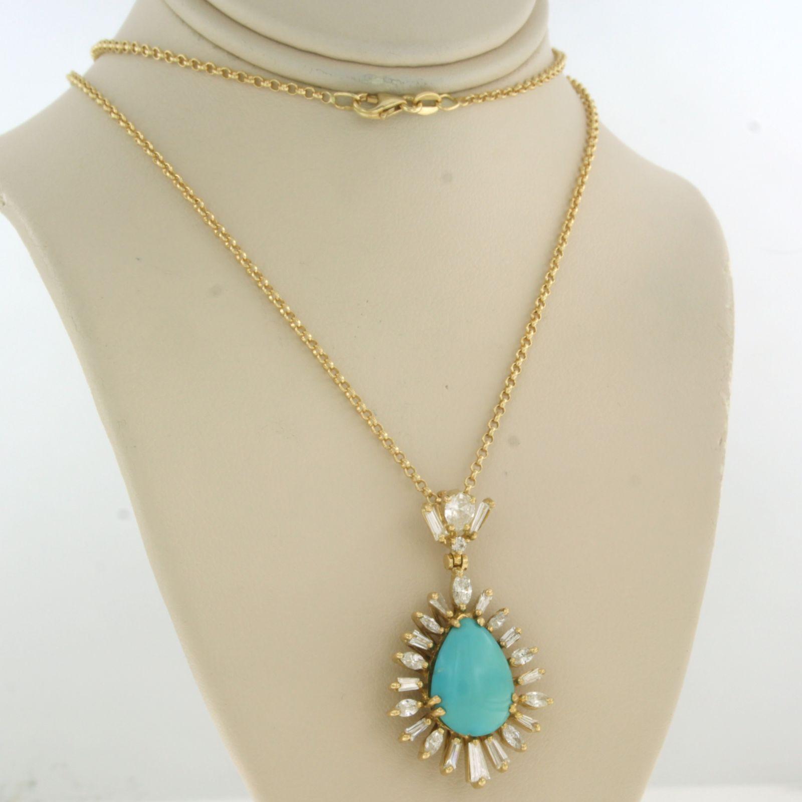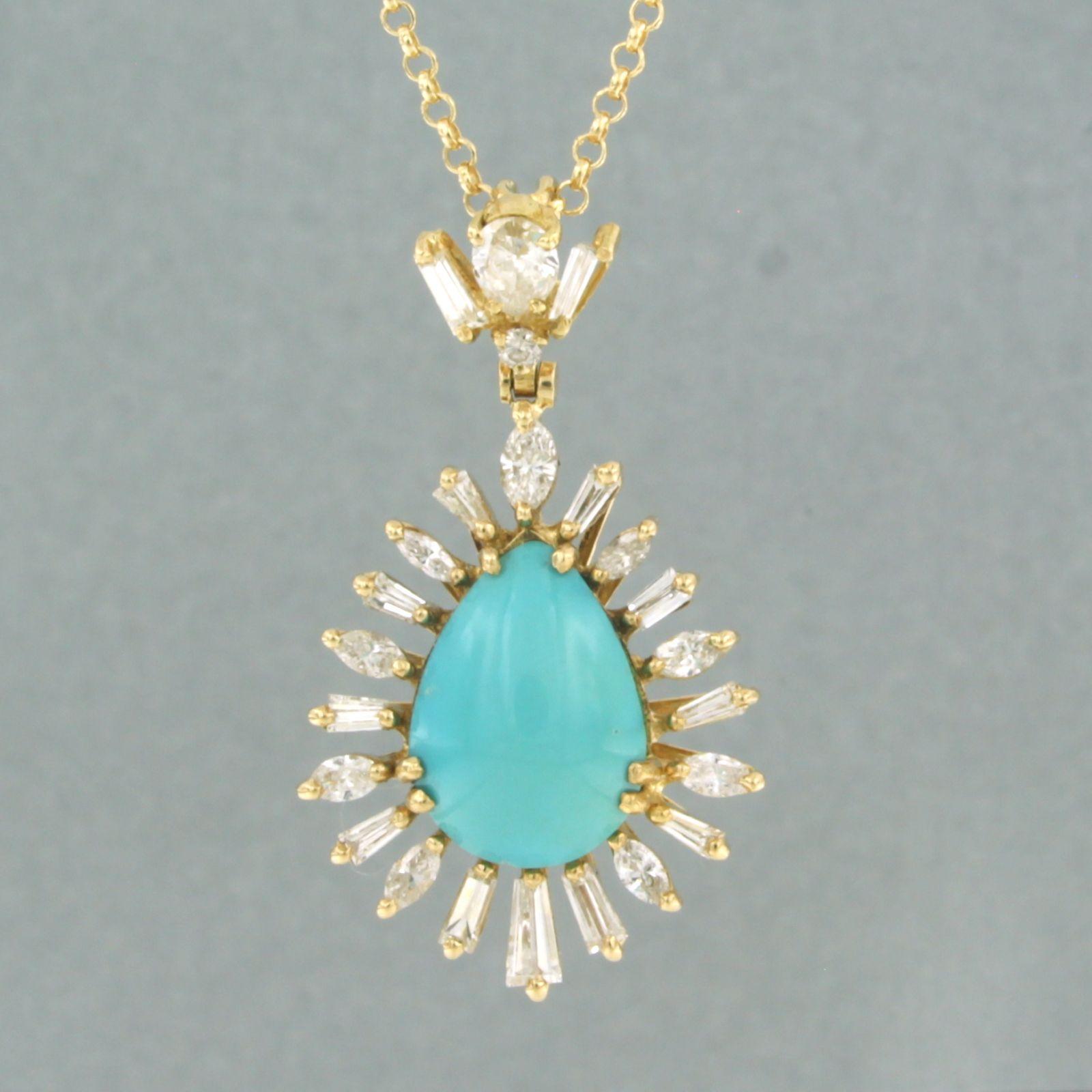 18 Kt. geelgouden collier met hanger bezet met turquoise en diverse slijpvormen geslepen diamant tot. 1,70ct - G/H - VS/SI - 50 cm lang