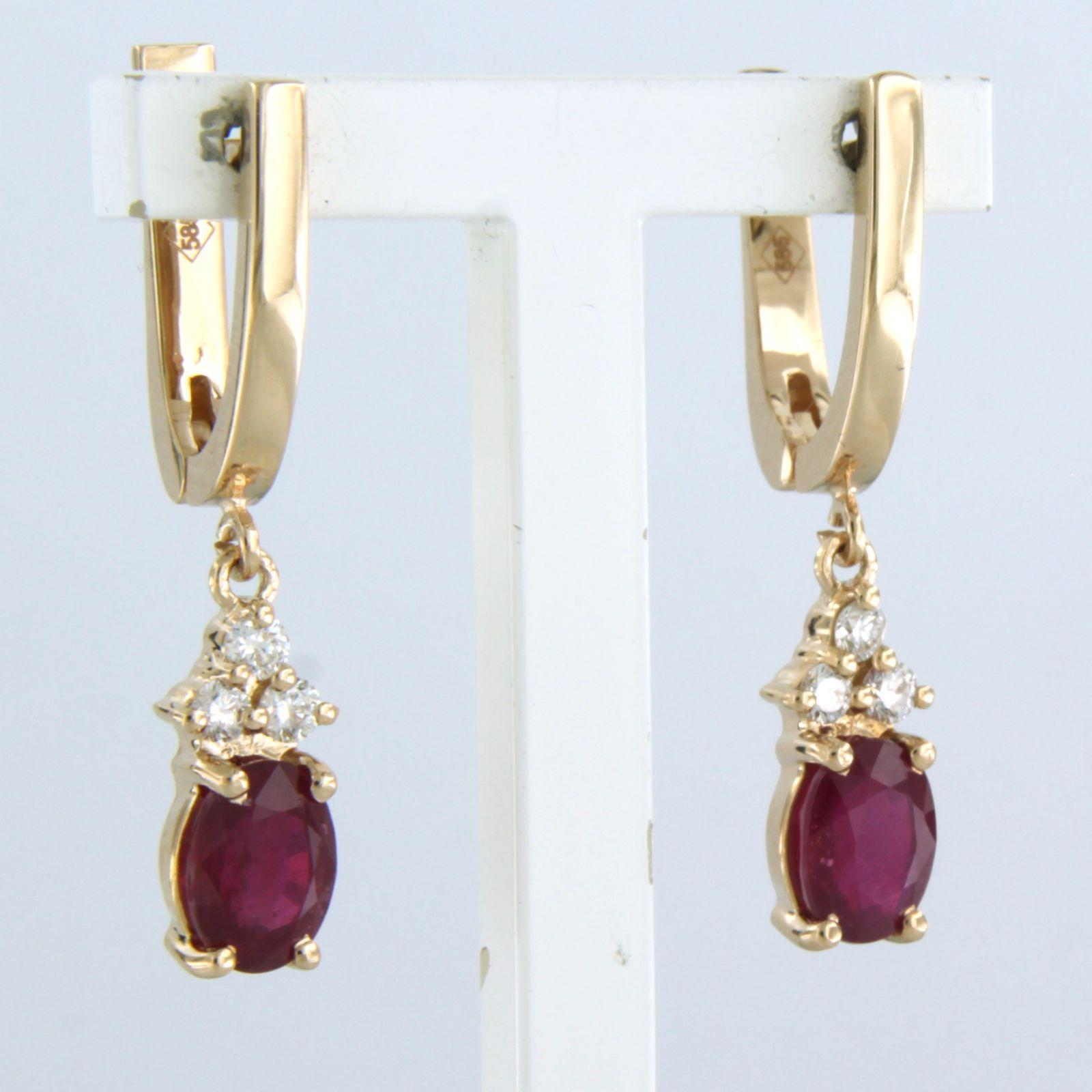14 Kt. rosegouden oorhangers bezet met robijn tot 2,46ct en briljant geslepen diamanten tot. 0,24ct - G/H - VS/SI