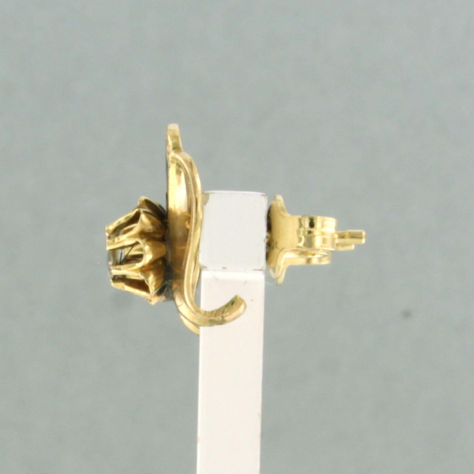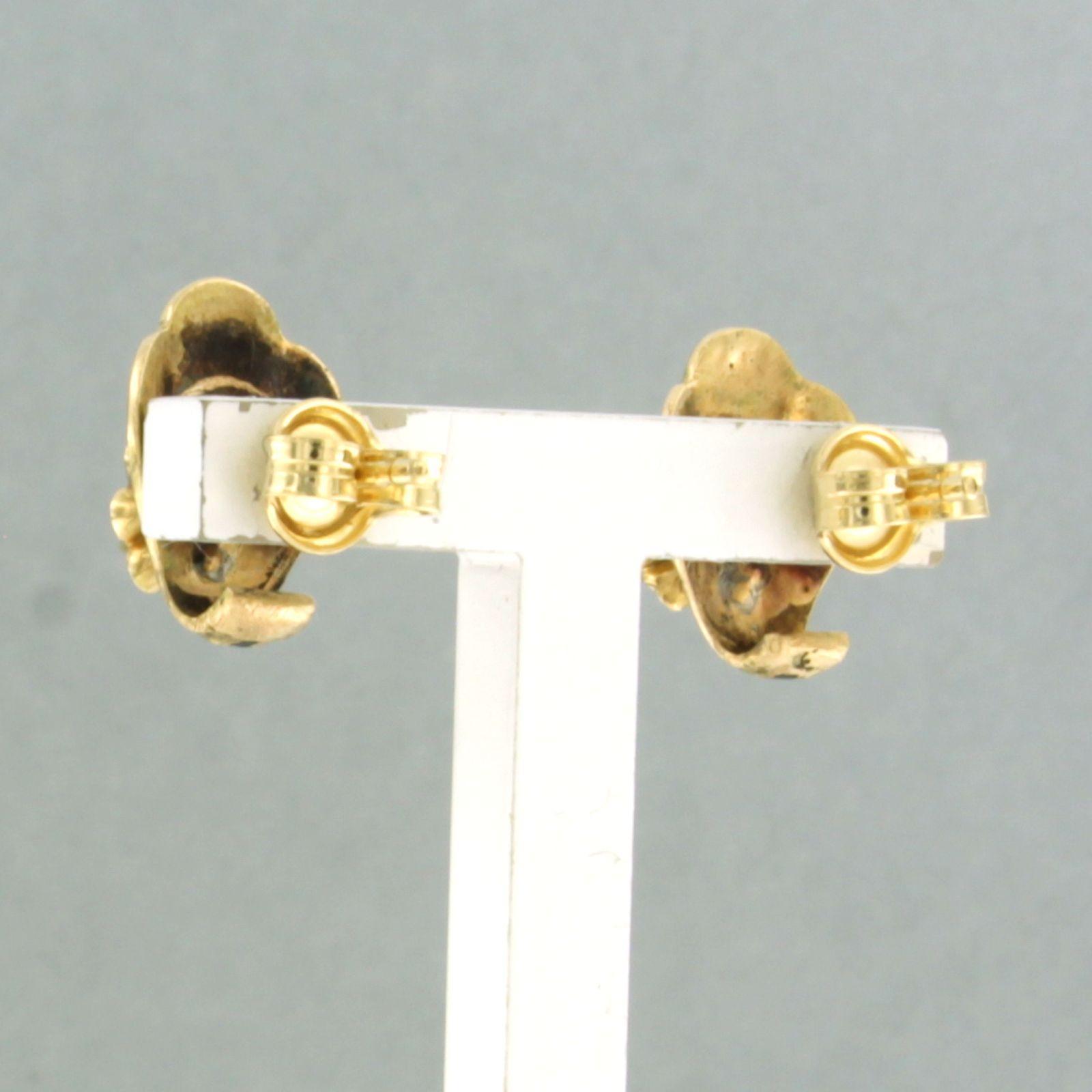 18 Kt. gouden oorknoppen versiert met emaille en bezet met roos geslepen diamant tot. circa 0,10ct