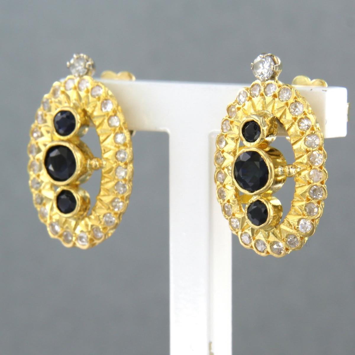 18 Kt. geelgouden oorknoppen bezet met saffier en single cut geslepen diamant tot. 0,50ct