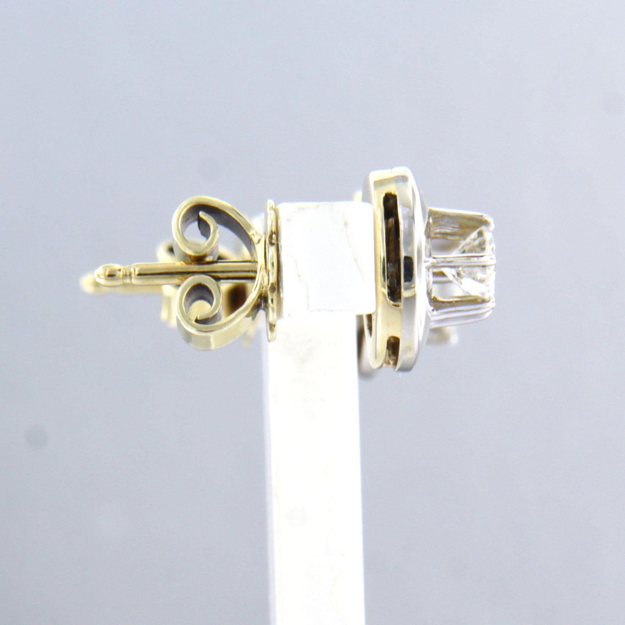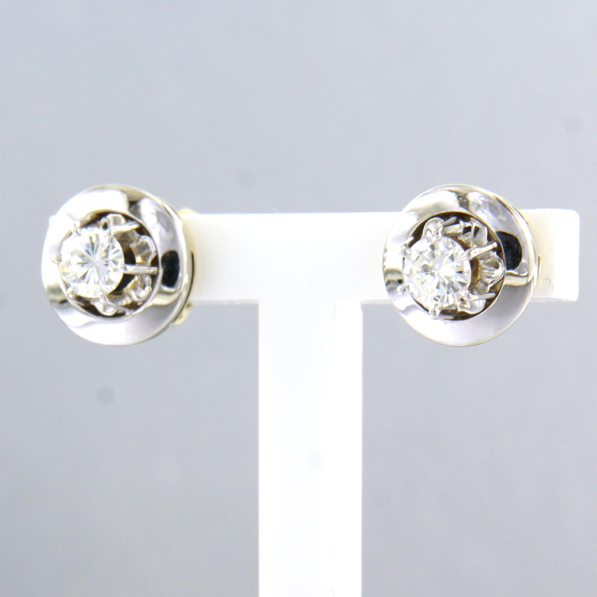 14 Kt. bicolour gouden oorknoppen bezet met briljant geslepen diamanten totaal 0,36ct F/G VS/SI