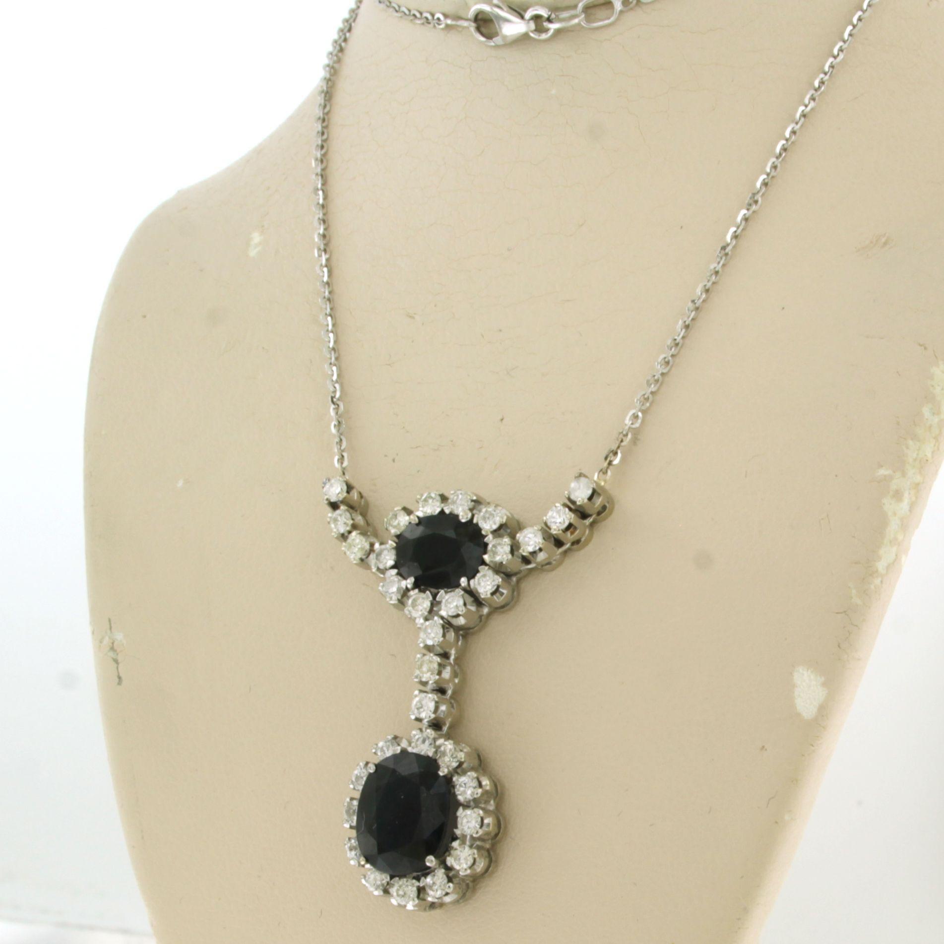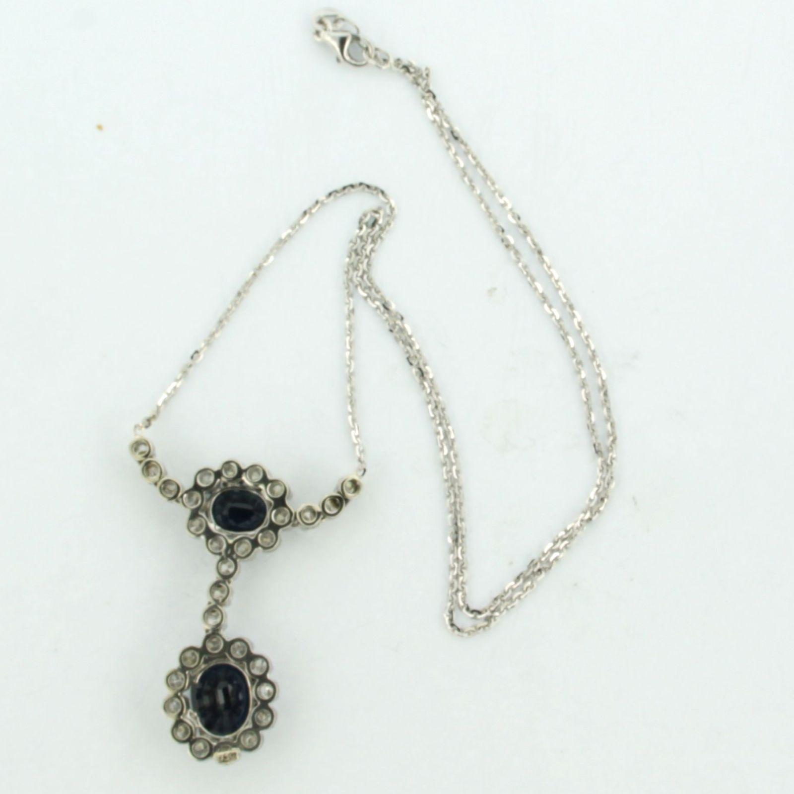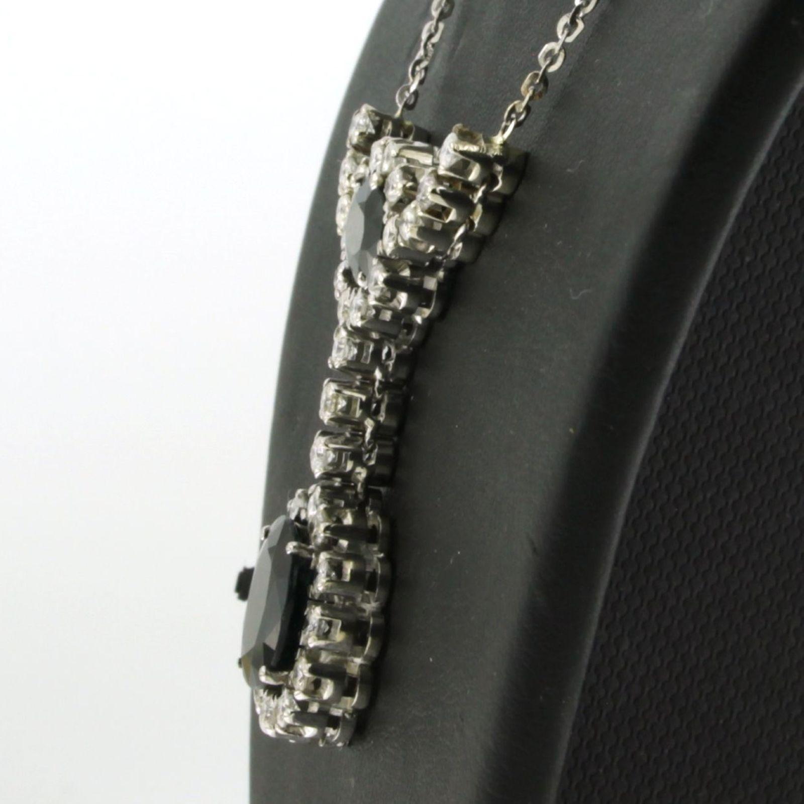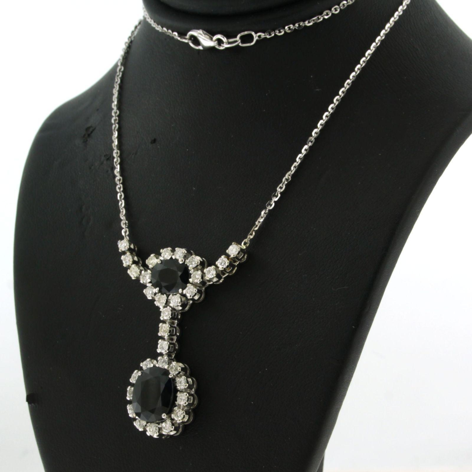 18 Kt. witgouden collier met saffier 3,20 ct en briljant geslepen diamanten totaal 1,00 ct F/G SI/P