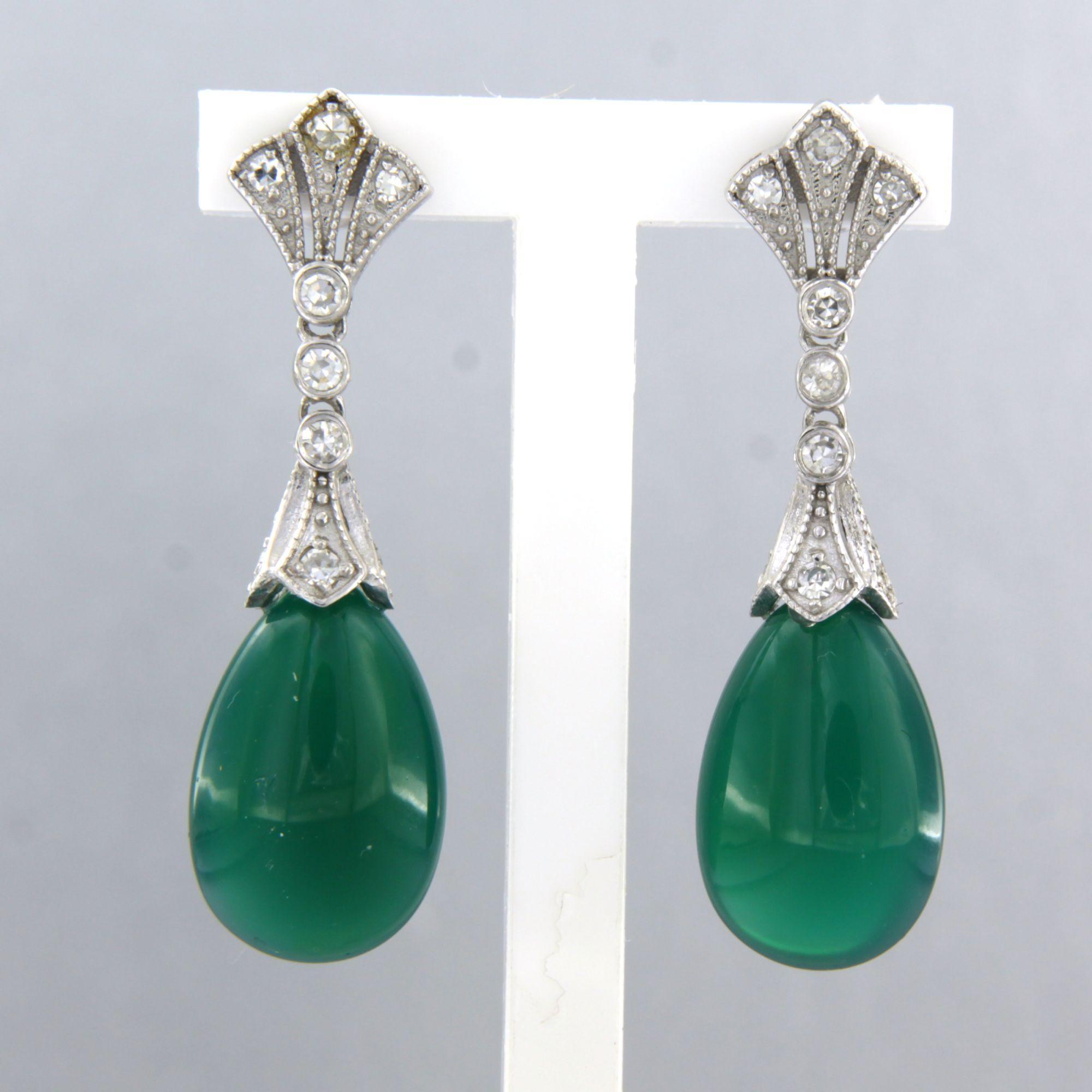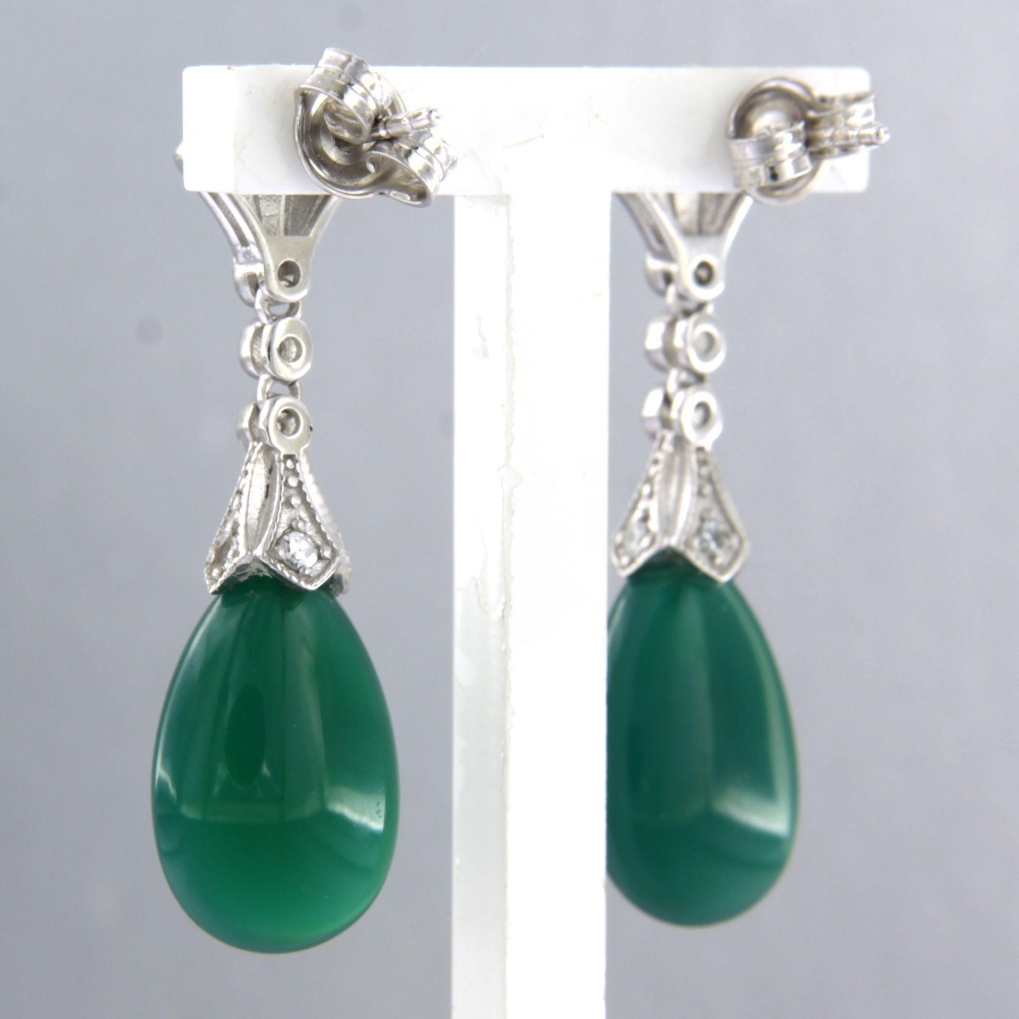 14 Kt. witgouden oorhangers bezet met chrysopraas en single cut geslepen diamenten totaal 0.30 ct