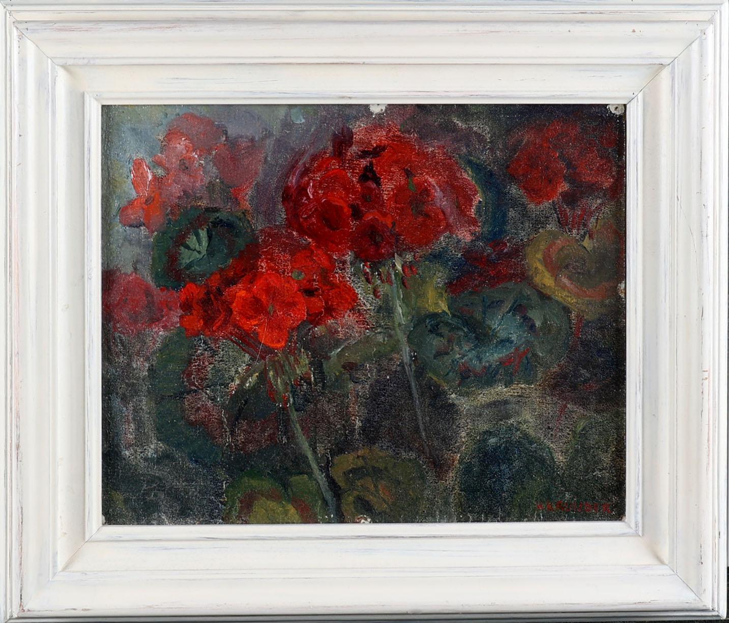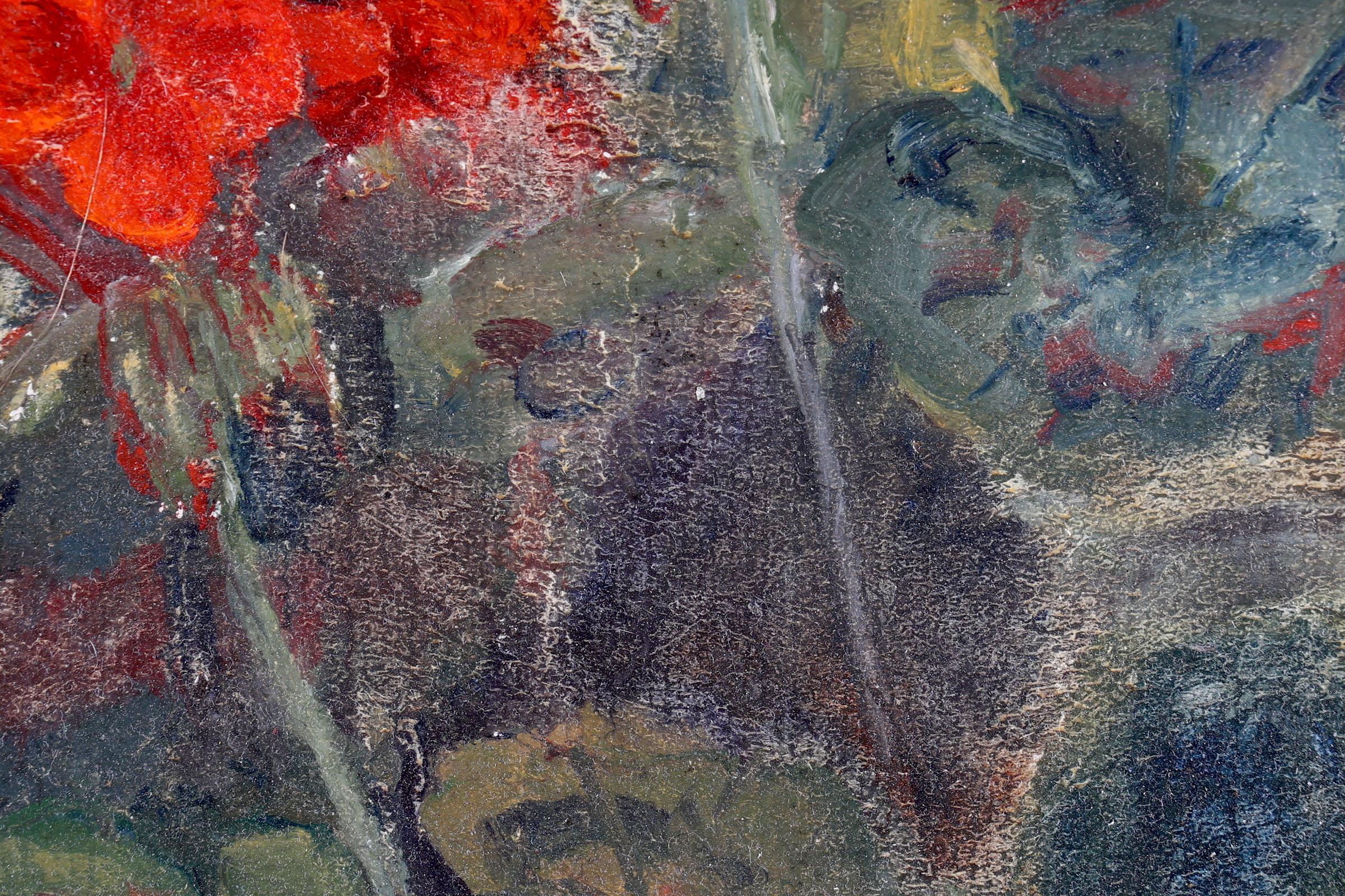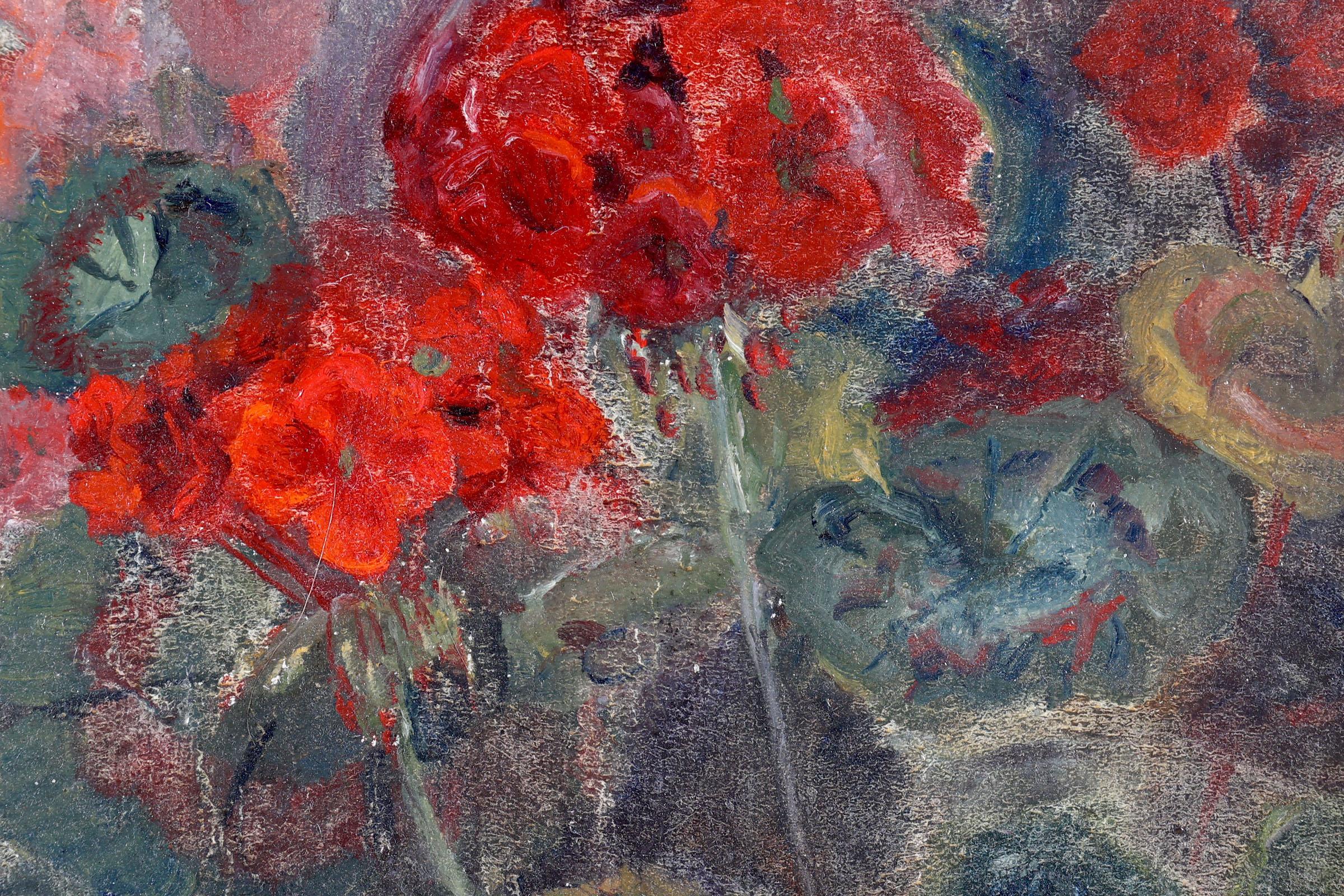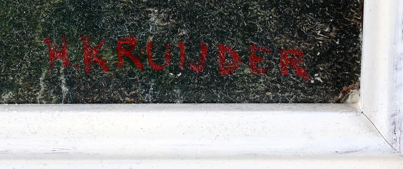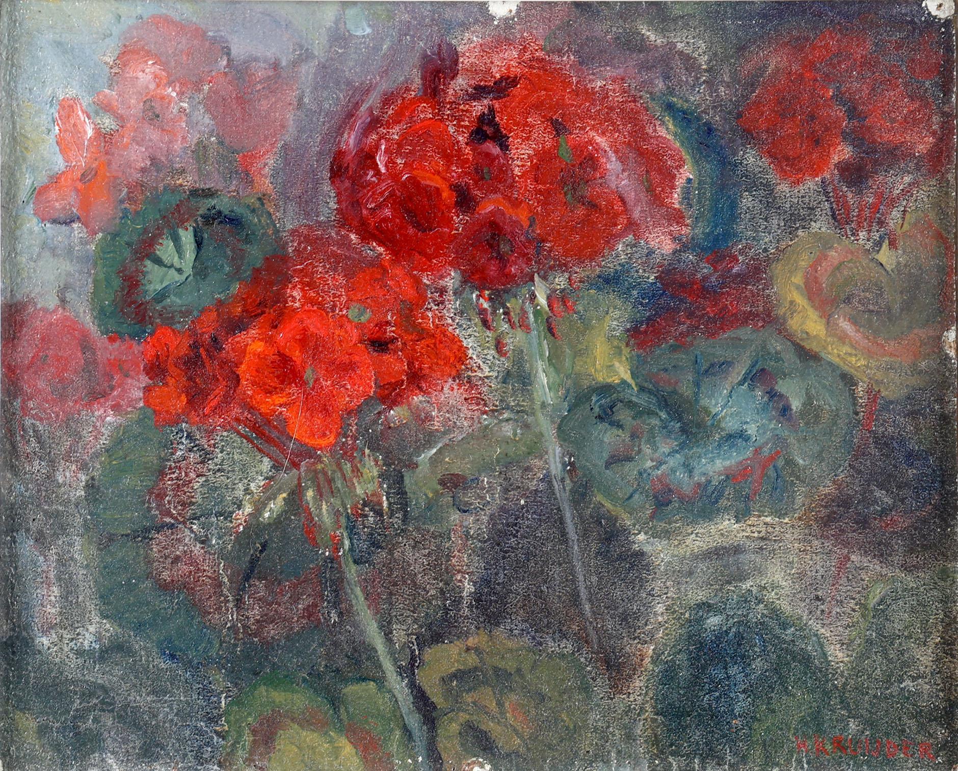 Herman Kruyder (1881-1935), Bloemstudie, olieverf op doek (maroufle), 22,5 x 28,5 cm., gesigneerd r.o. en op de achterkant