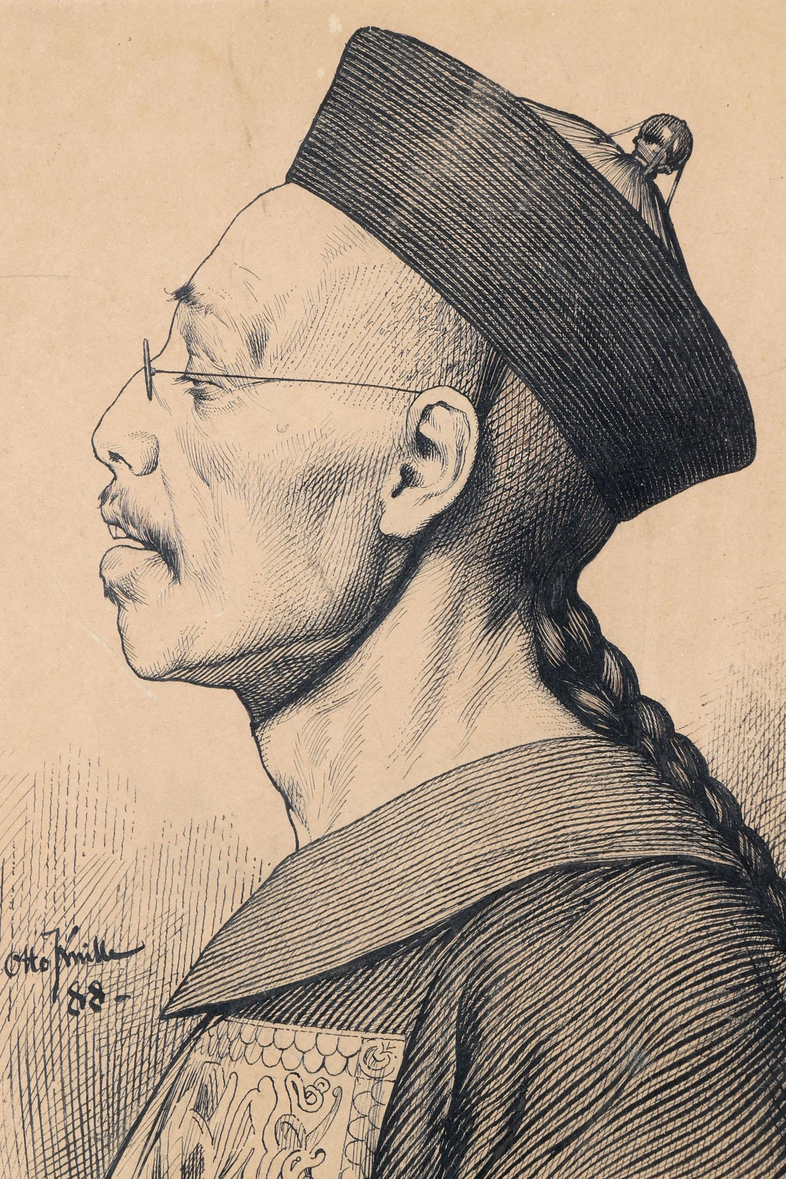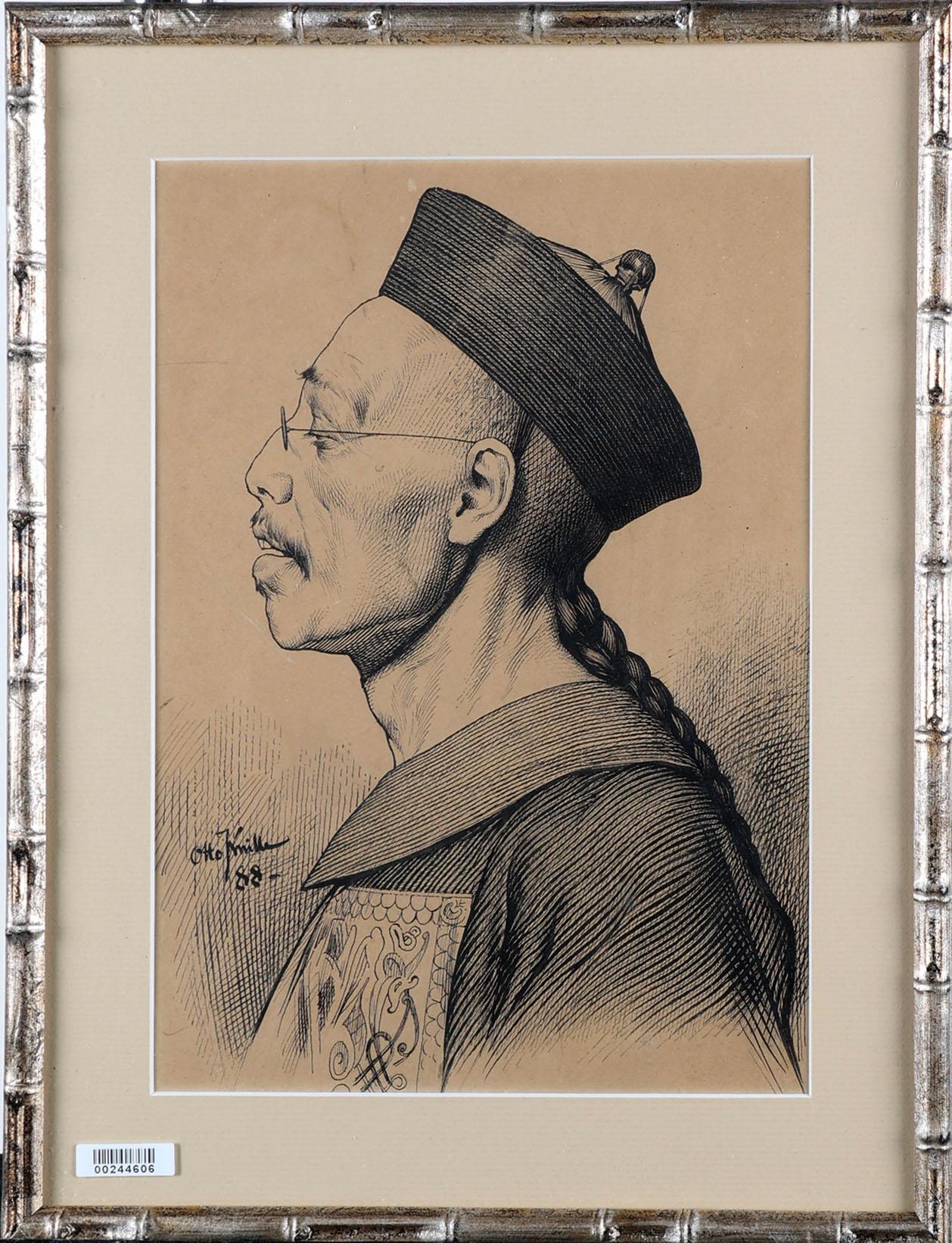 Otto Knille (1832-1898), Portret van een Chinese man, druk, 26 x 21,5 cm., gesigneerd l.o. en gedateerd '88