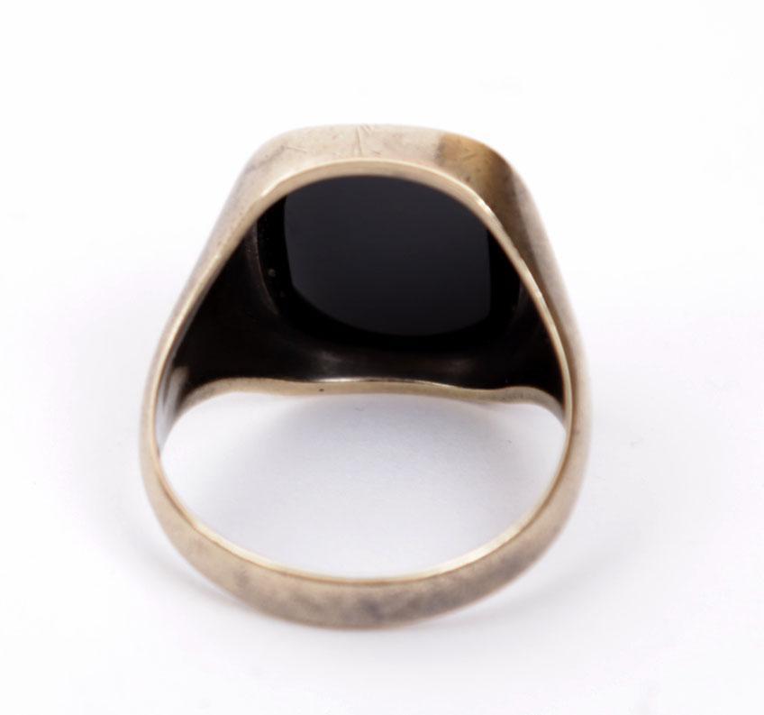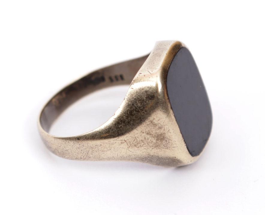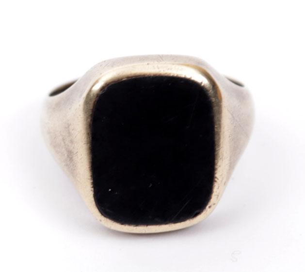 8 Kt. gouden zegelring bezet met zwarte onyx, diam.20 mm., 6.6 gram