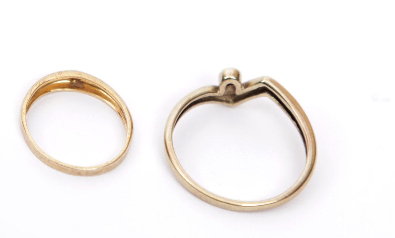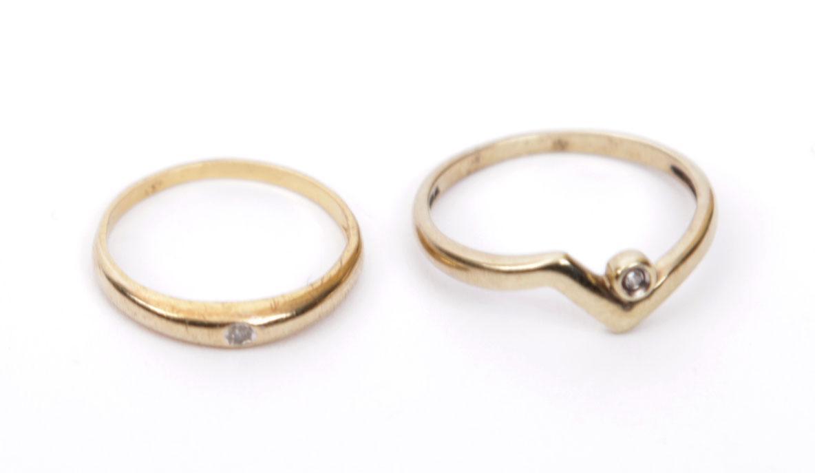 Twee 8 kt. gouden damesringen bezet met briljant