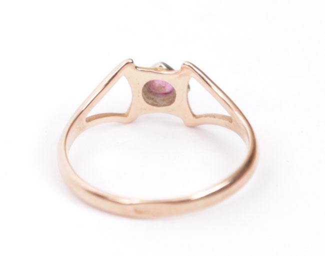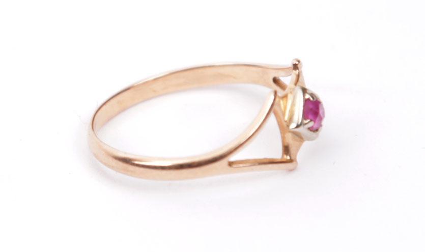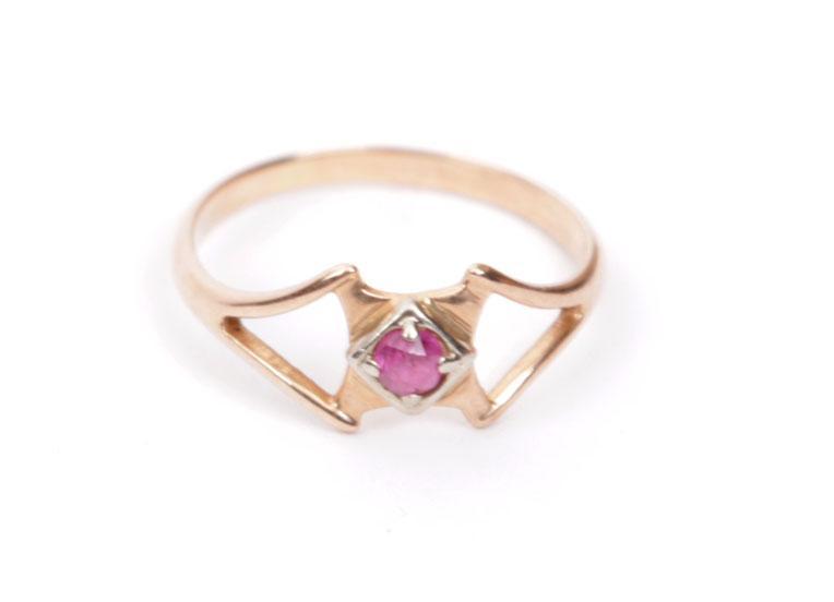 14 Kt. gouden damesring bezet met robijn, diam.16 mm.