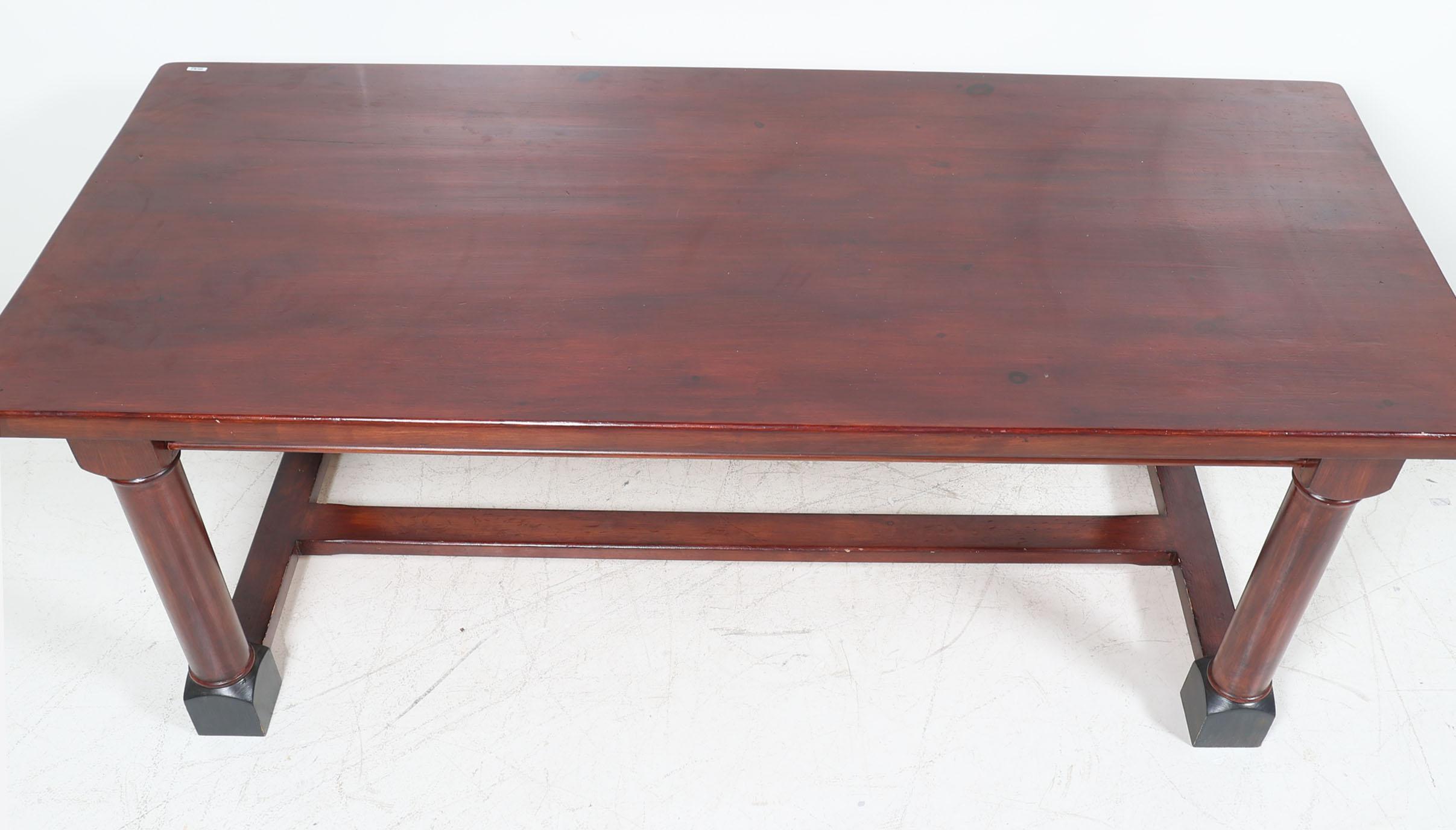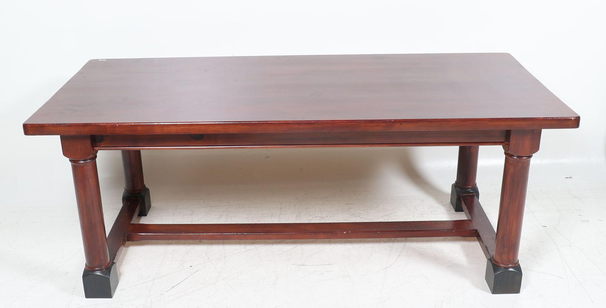 Gebeitst grenehouten eetkamertafel, h.77 x b.200 x d.89 cm.
