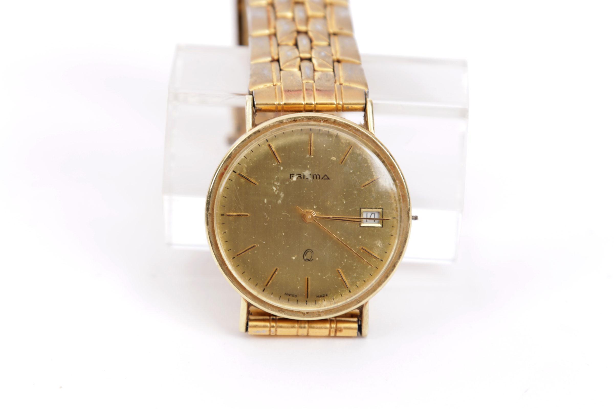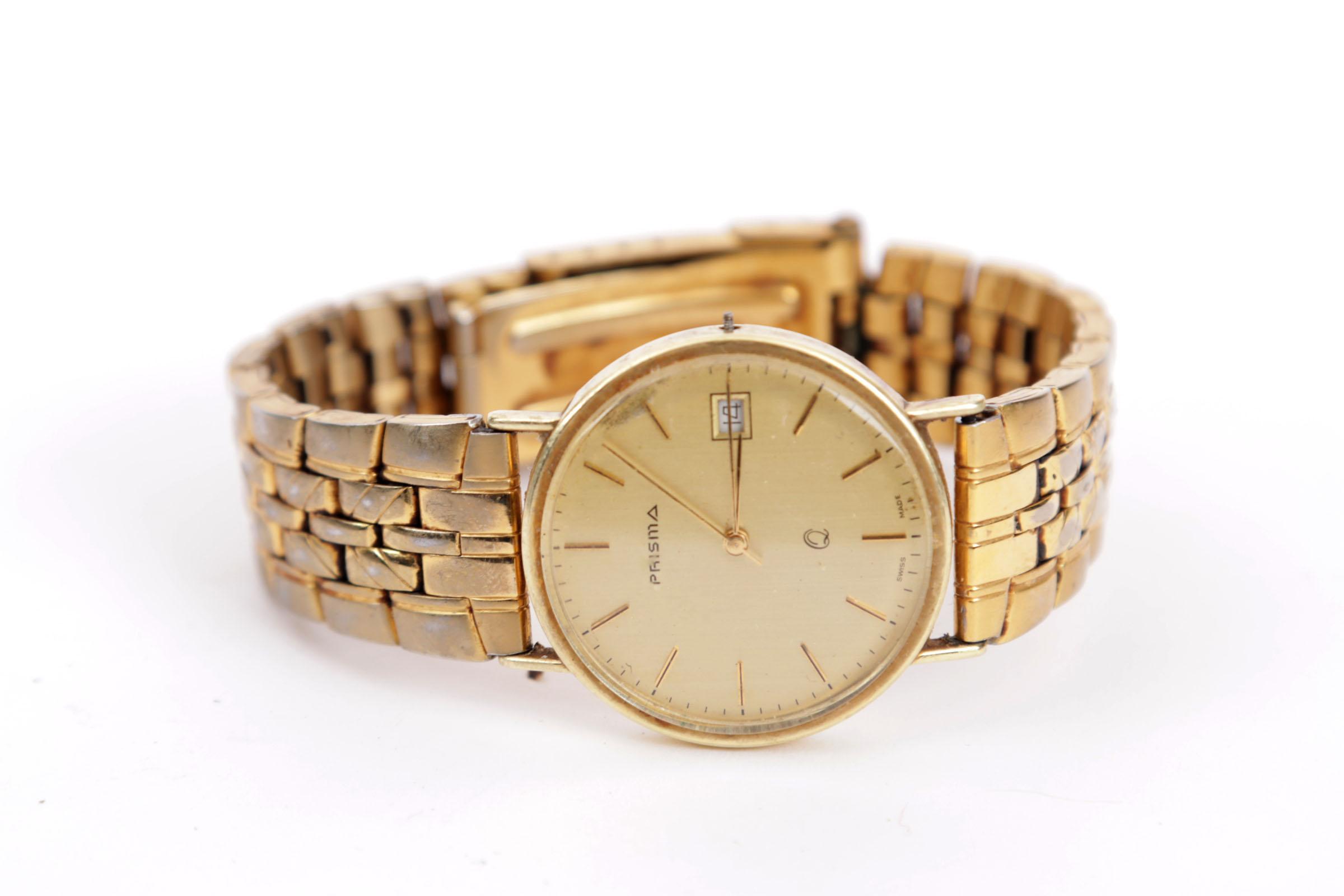 14 Kt. gouden Prisma herenpolshorloge met doublé band (klokje defect)