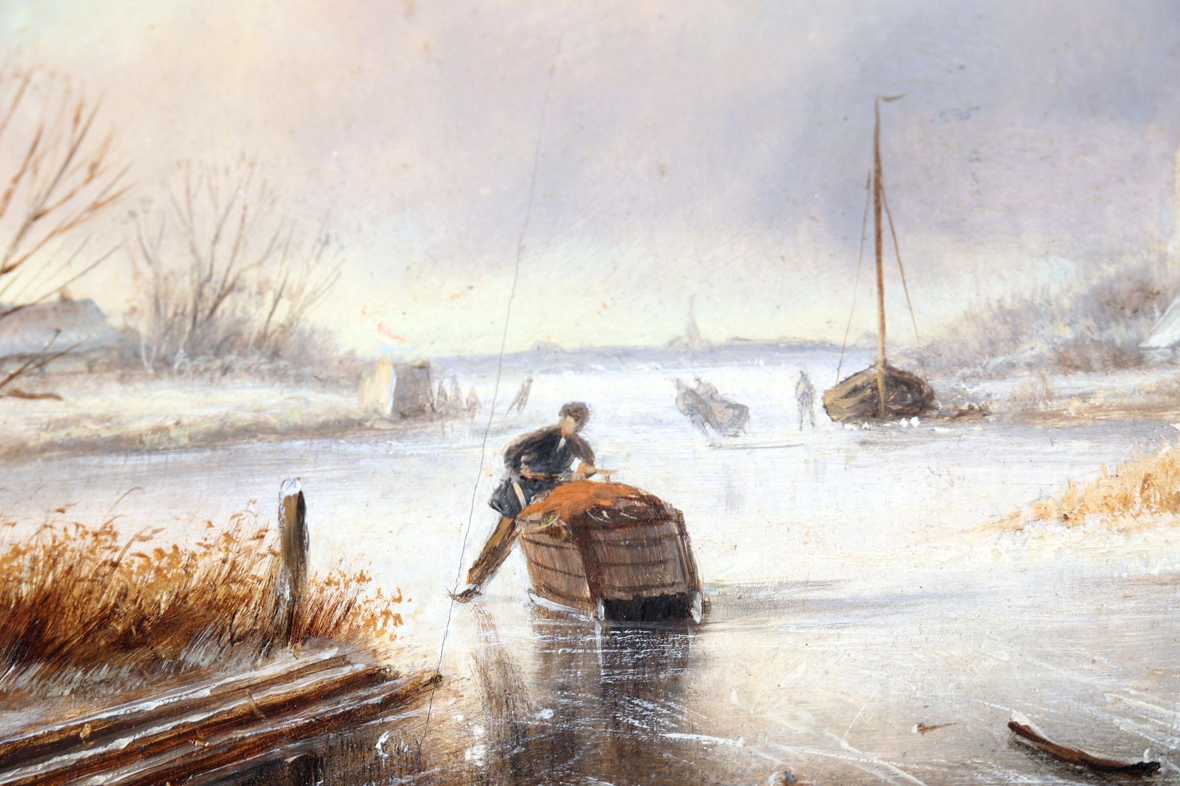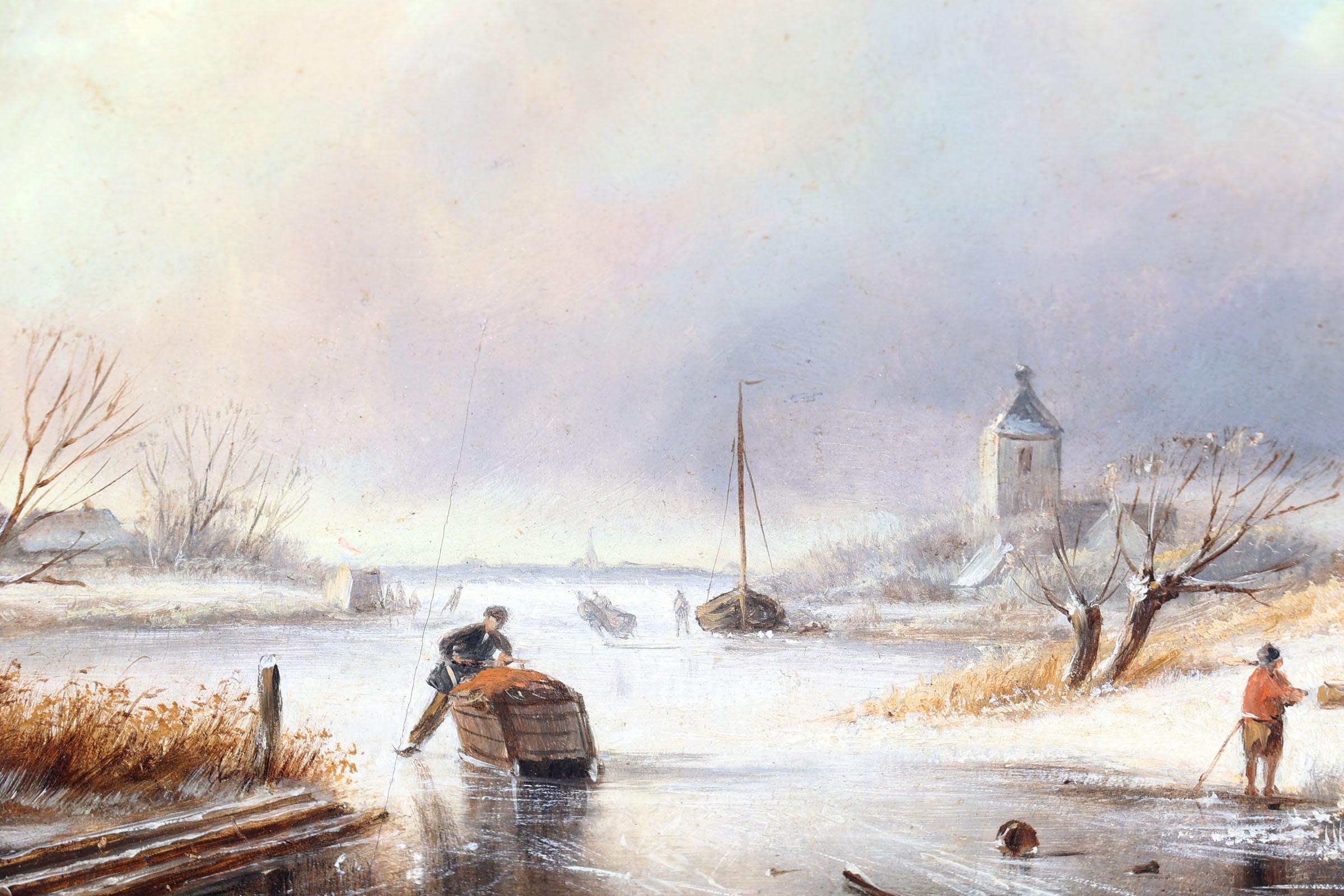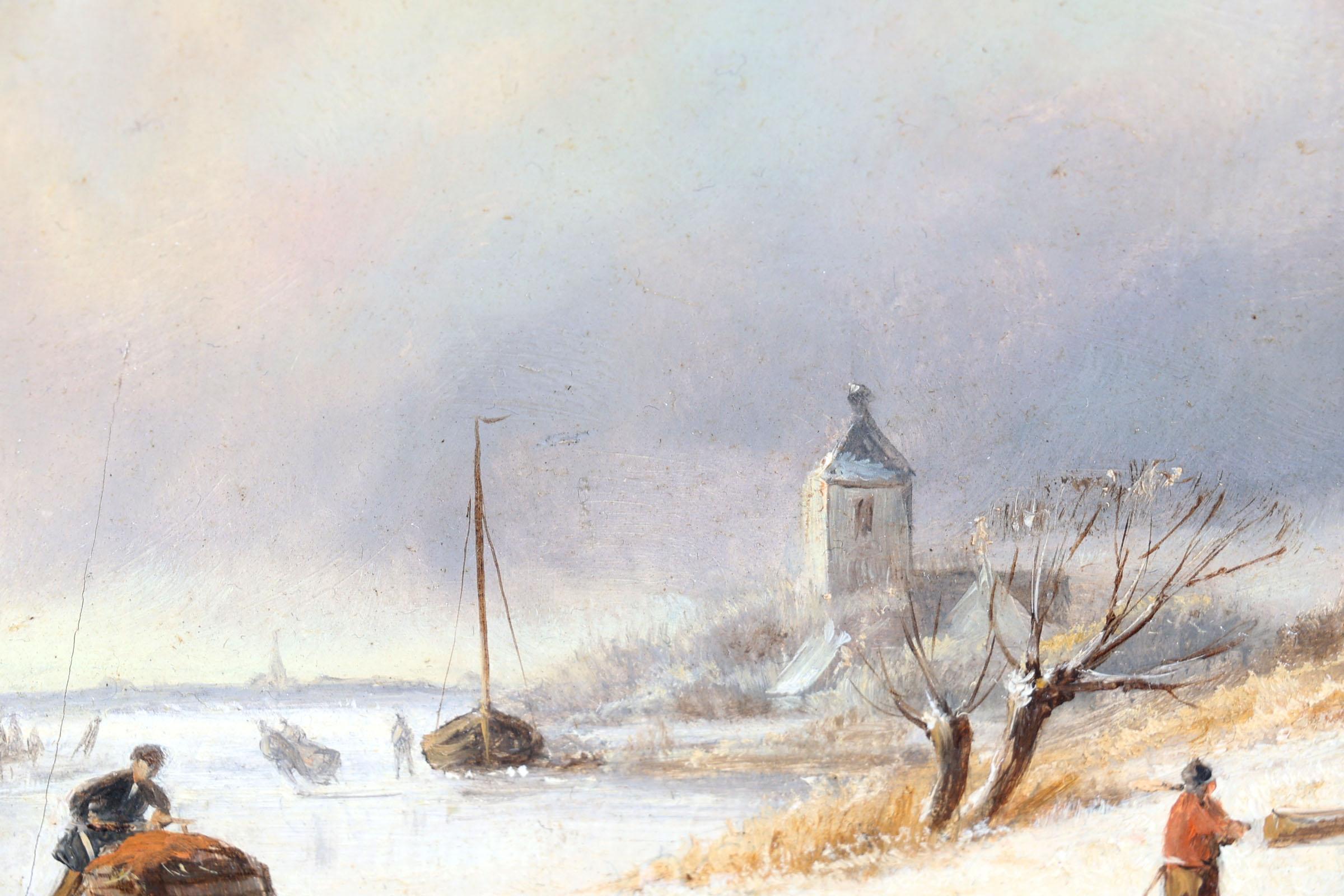 Vermeulen Marinus Cornelis Thomas (1868-1941), Winter ijsgezicht met schaatsende personen, olieverf op paneel, 23,5 x 18 cm., provenance particuliere collectie /Roelofs Kunsthandel