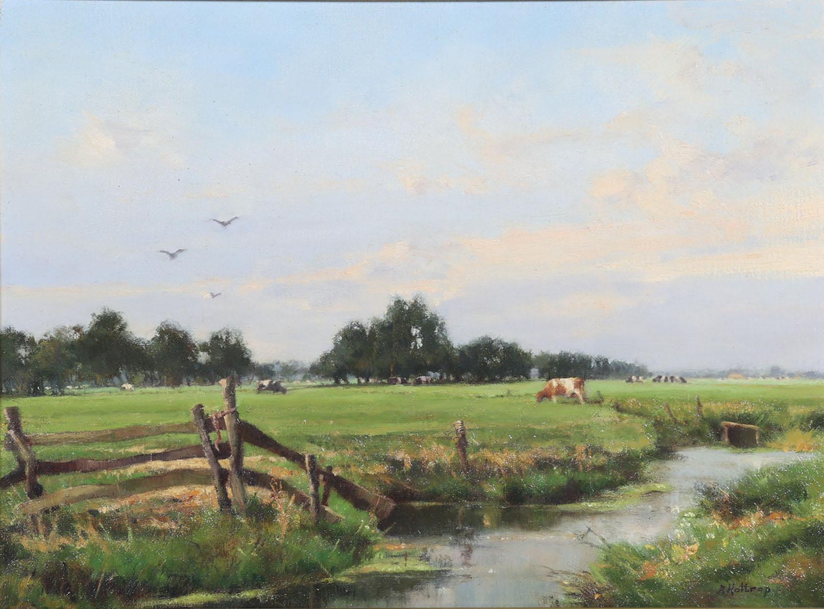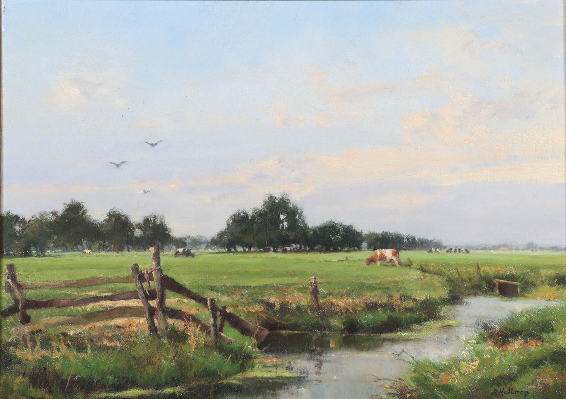 Jan Holtrop (1917-1995), Koeien in landschap, olieverf op doek, 40 x 29 cm.