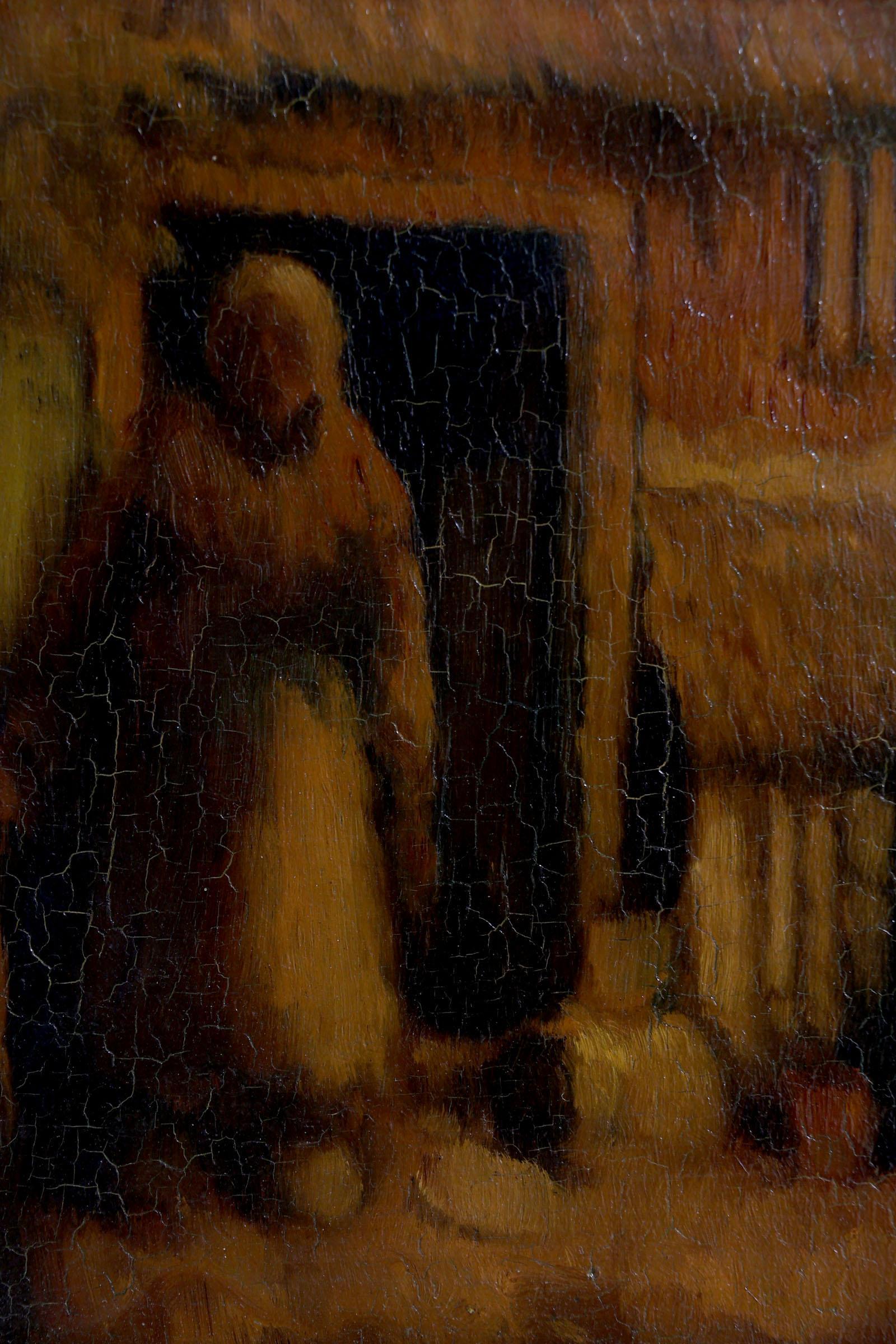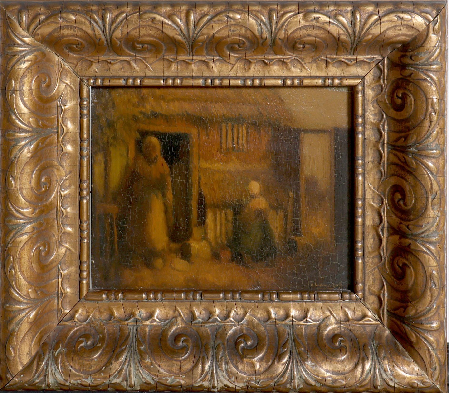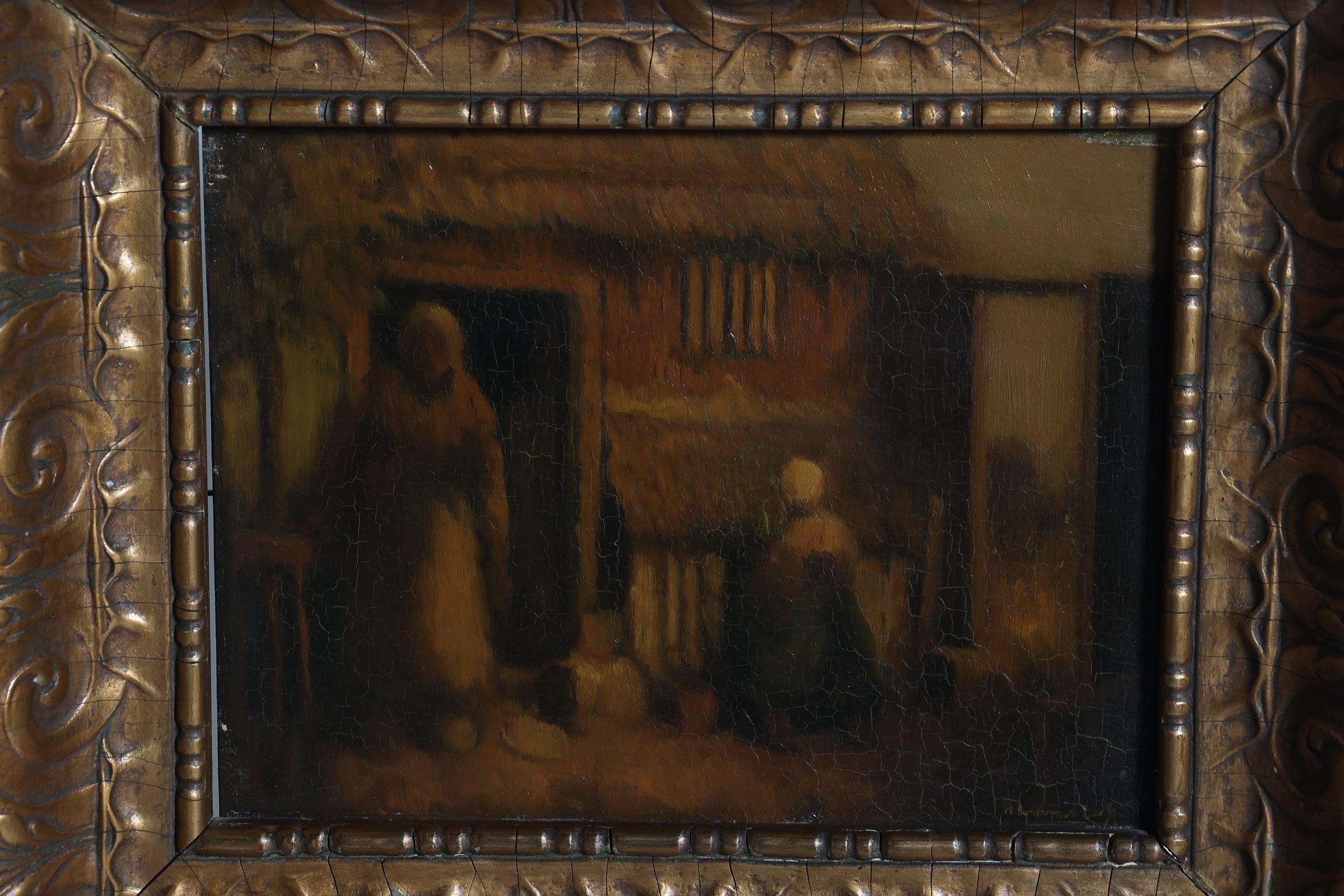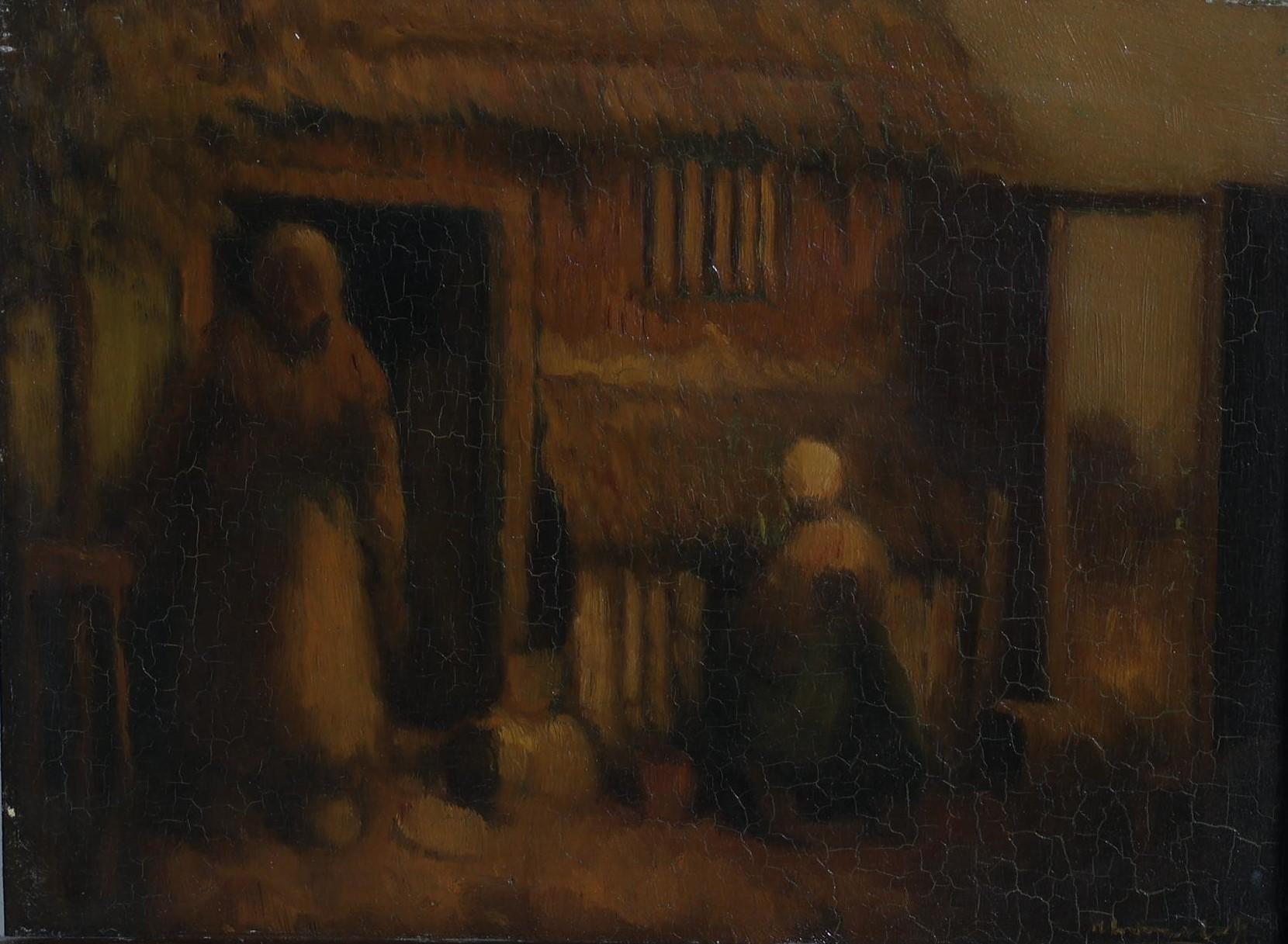 Hermanius Anthonius (Henri) van Daalhoff (1867-1953), Boerderij met moeder en kind, olieverf op paneel, 24,5 x 19 cm.